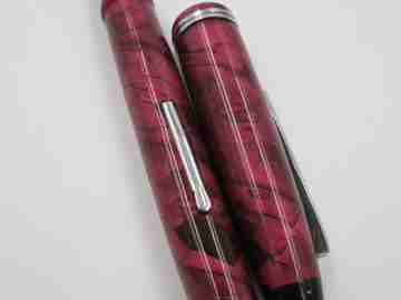 Stylomine. 1950's. Pink and black celluloid. France. Lever filler