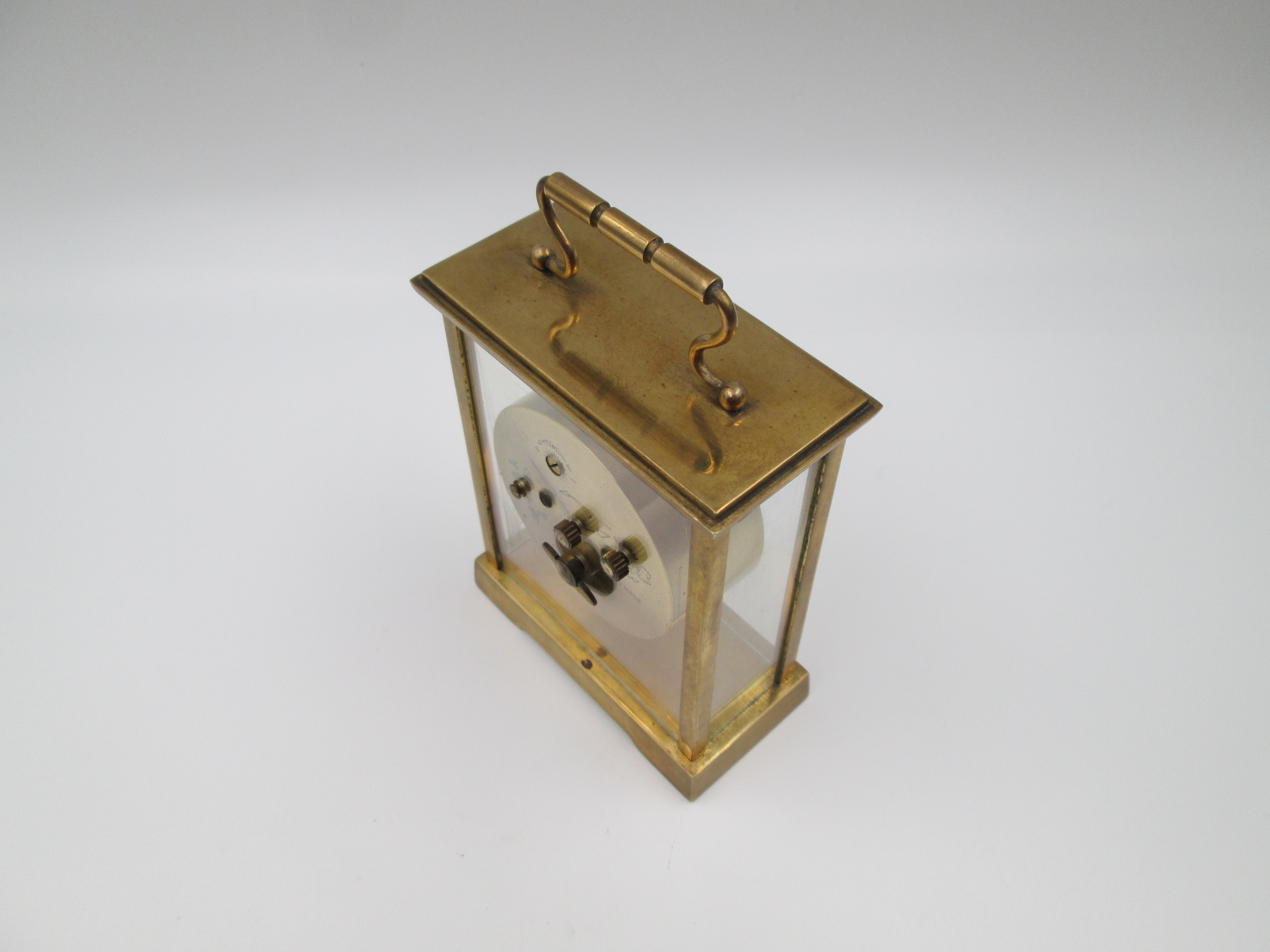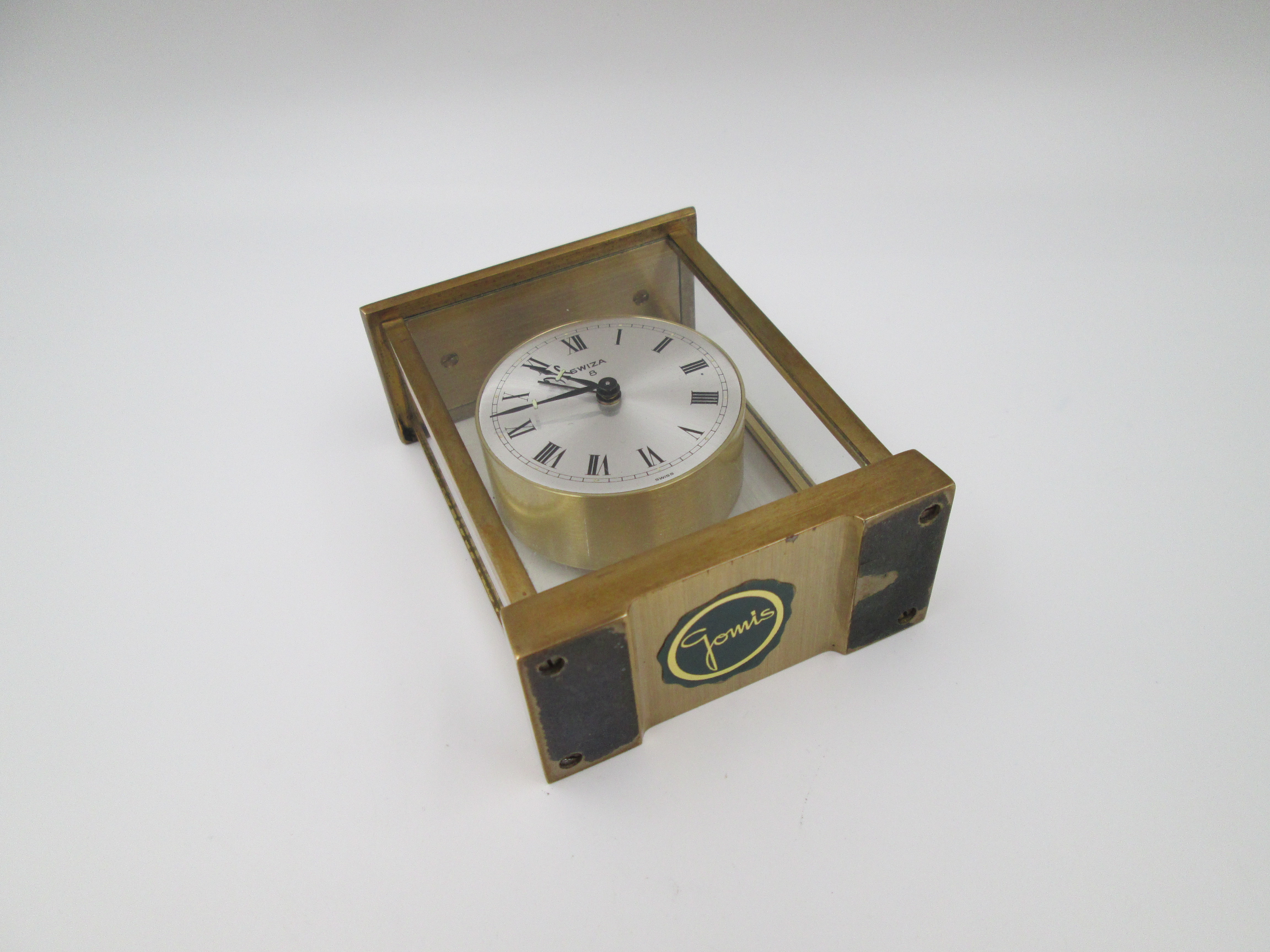 Swiza 8 days wind up alarm desk table clock. Bronze. Ring on top. Grey dial. Swiss. 1970's
