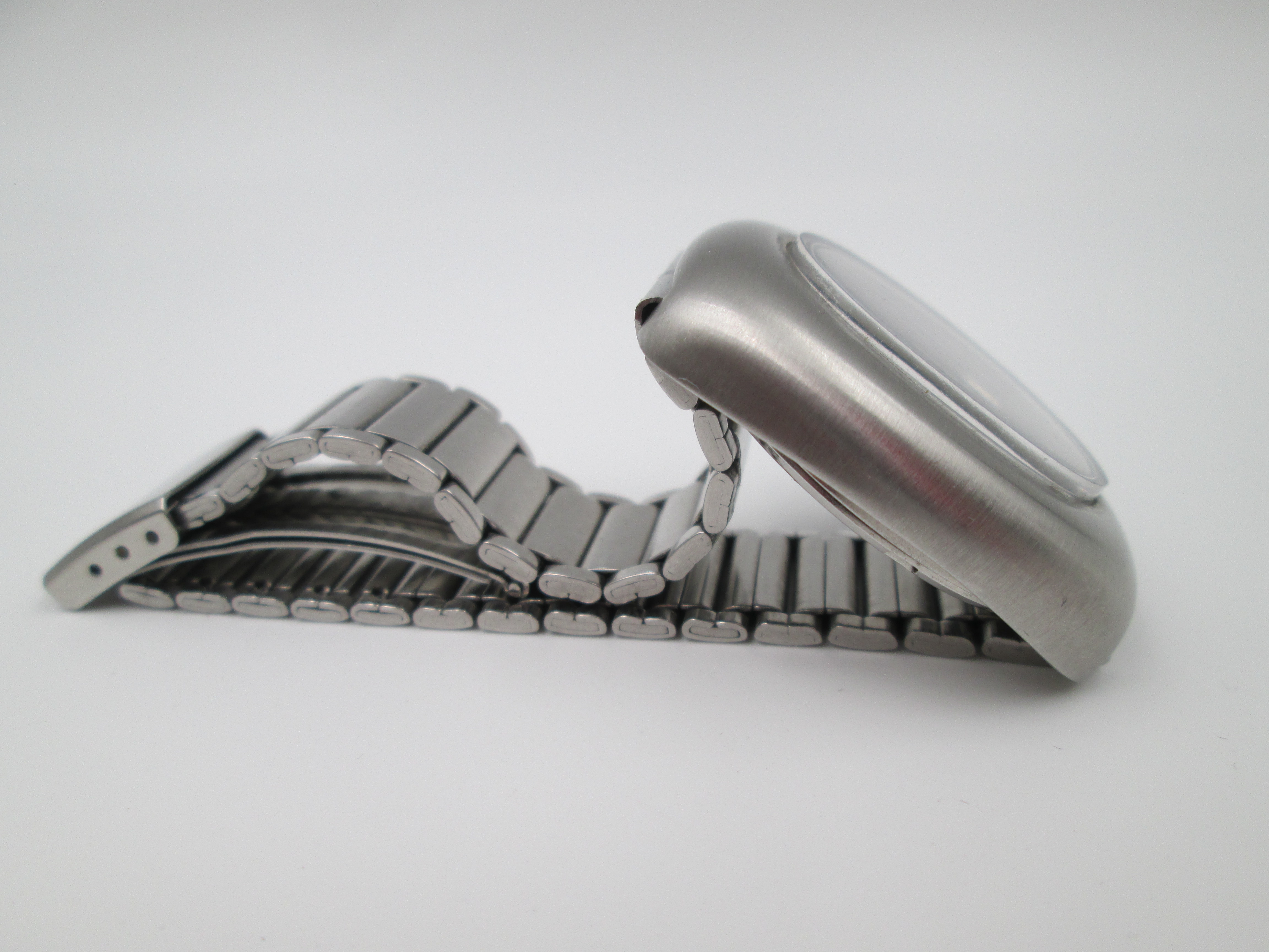 Elliptical case. Silver & black markers and hands.