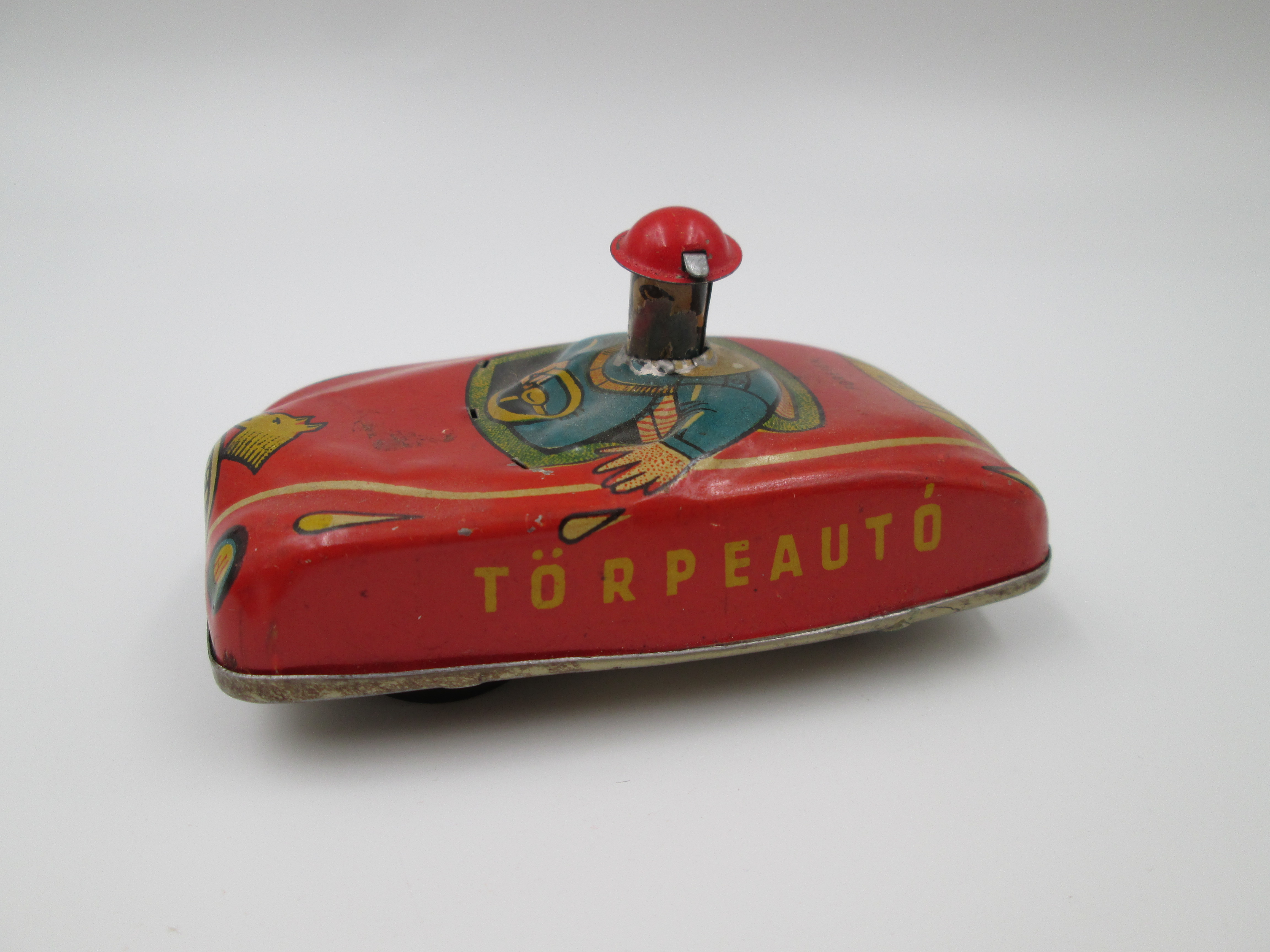 Törpeautó clockwork car. Colours lithographed tinplate. Lemezarugyar Toys. Hungary. 1980's