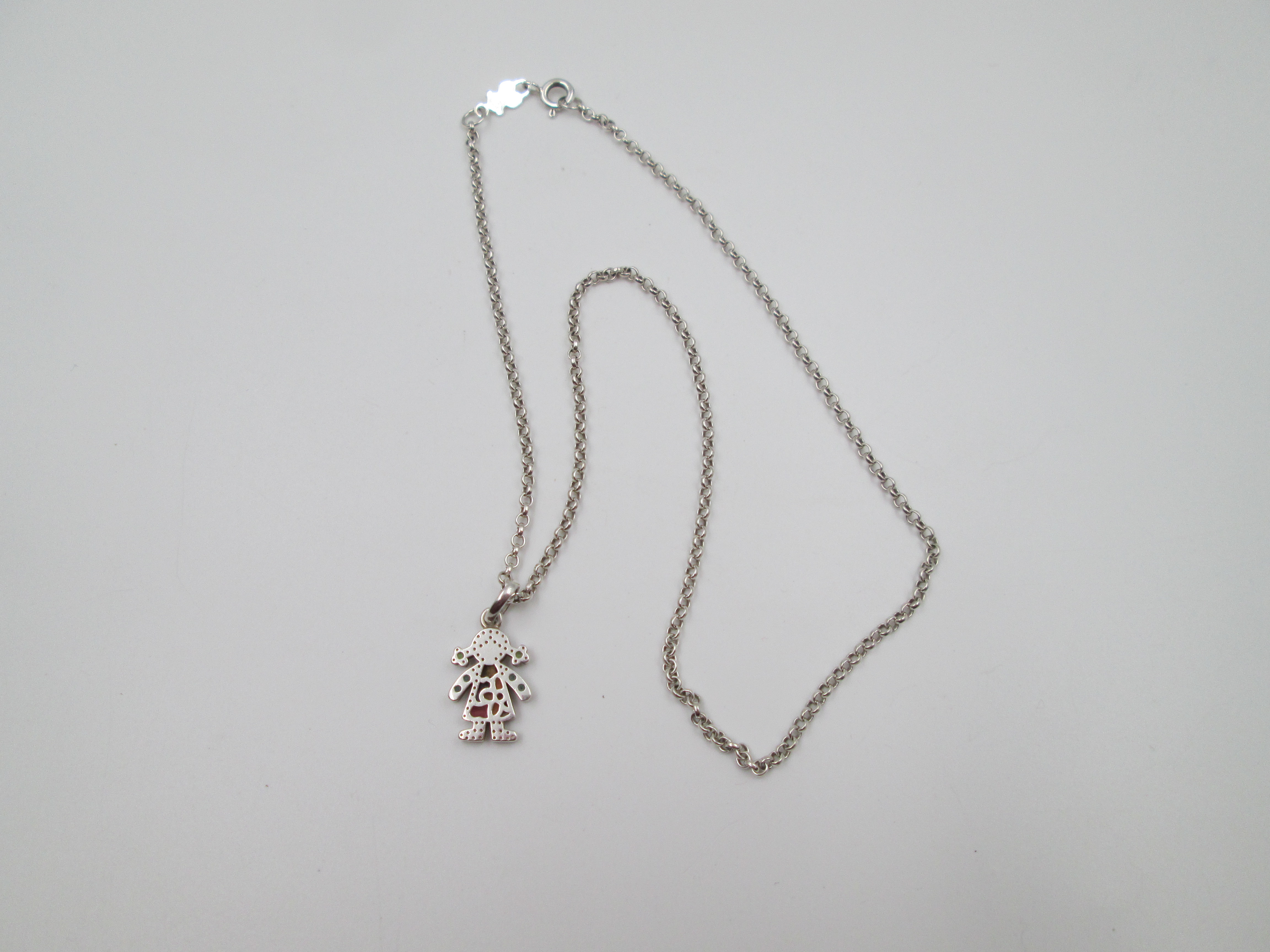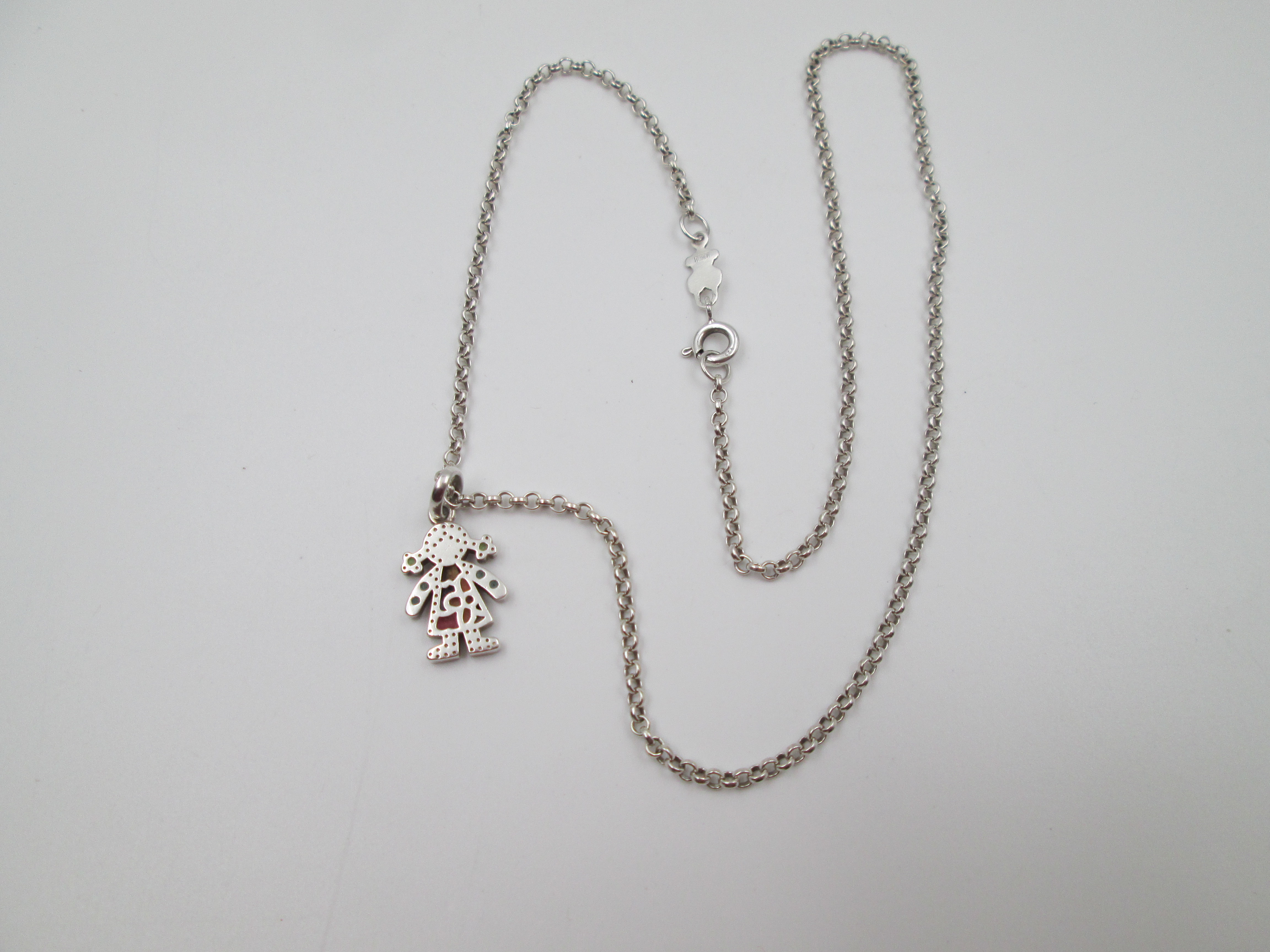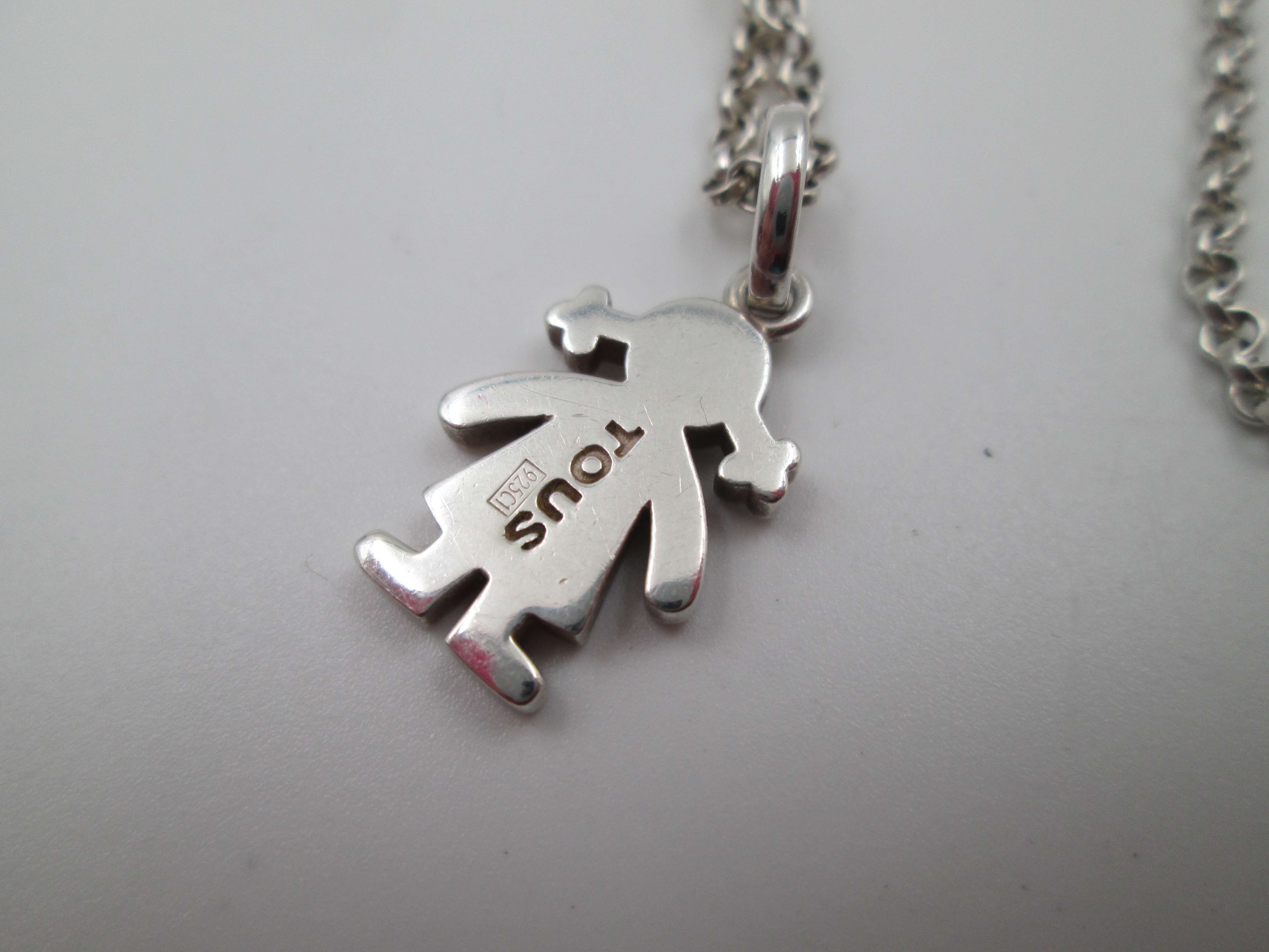 Tous jewelry women's necklace. Sterling silver girl pendant and links chain. Spain. 2015's