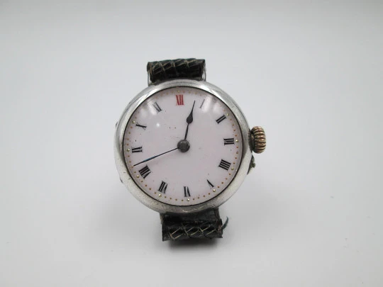 Trench & Officer's watch. Silver. Manual wind. 1920's. Porcelain dial
