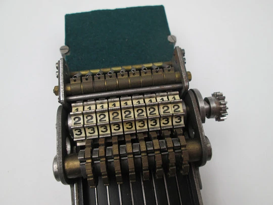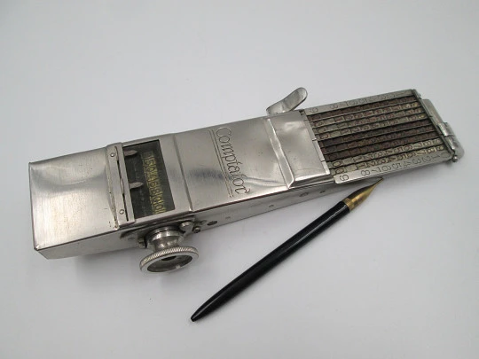 Two mechanical calculators. Comptator and Demonstrator. Nickel plated brass. Box. 1920's