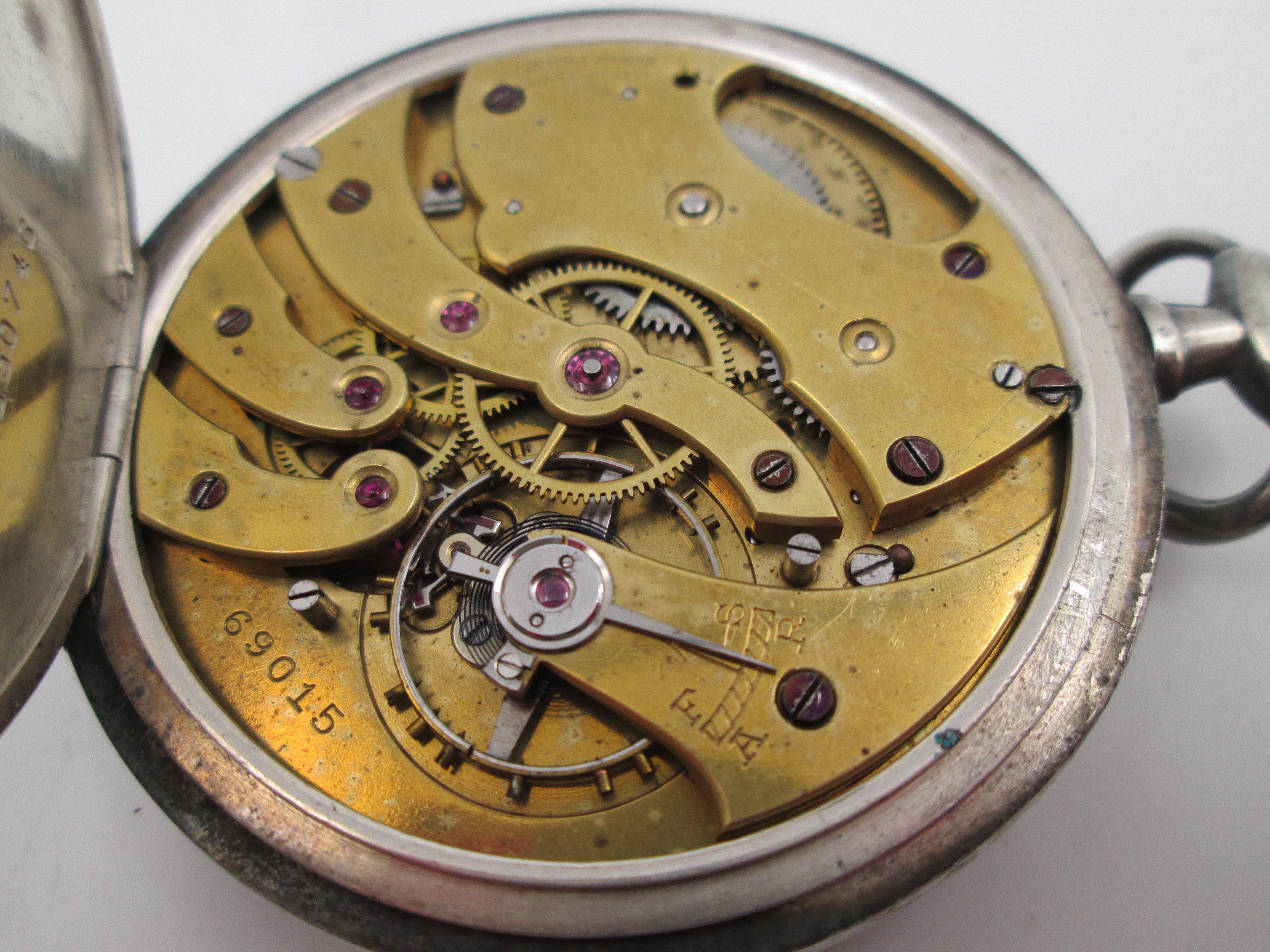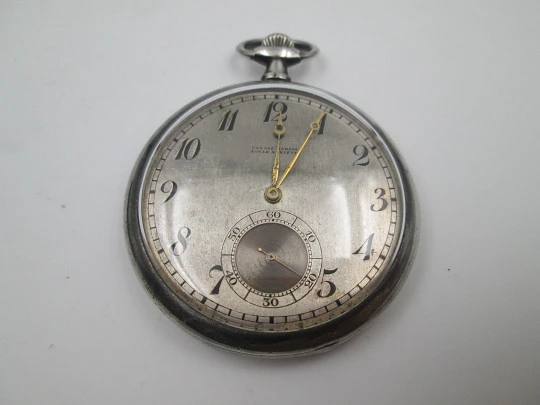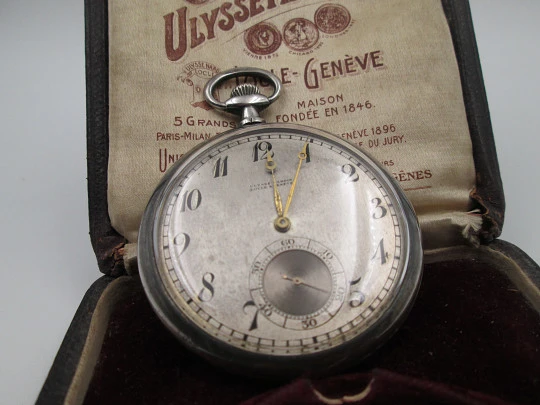 Ulysse Nardin open-face pocket watch. 900 sterling silver. Stem-wind. Original box. 1920's