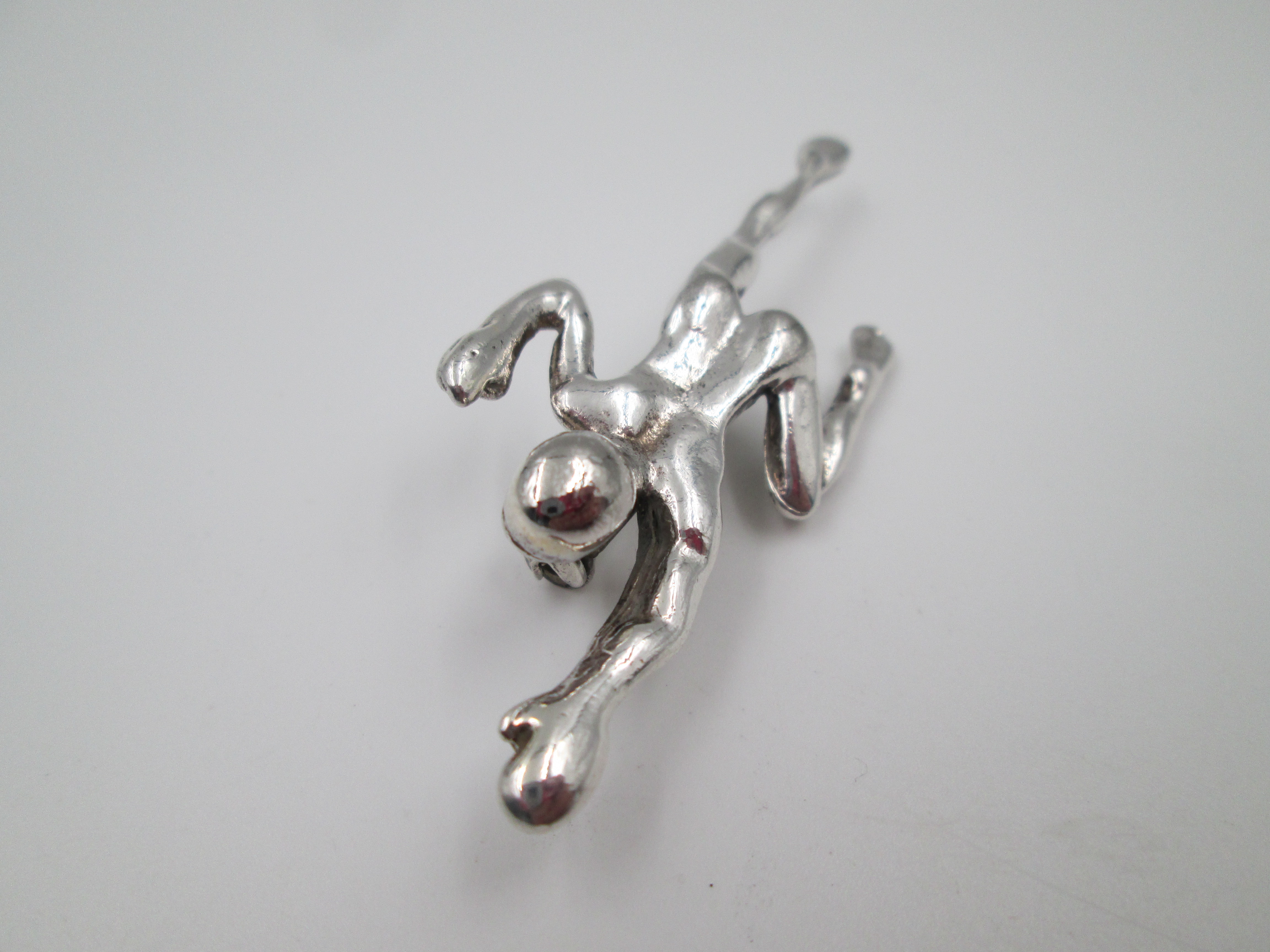 Unisex brooch. Silver plated metal. Figure of a man swimming. Pin on back. Europe. 1970's