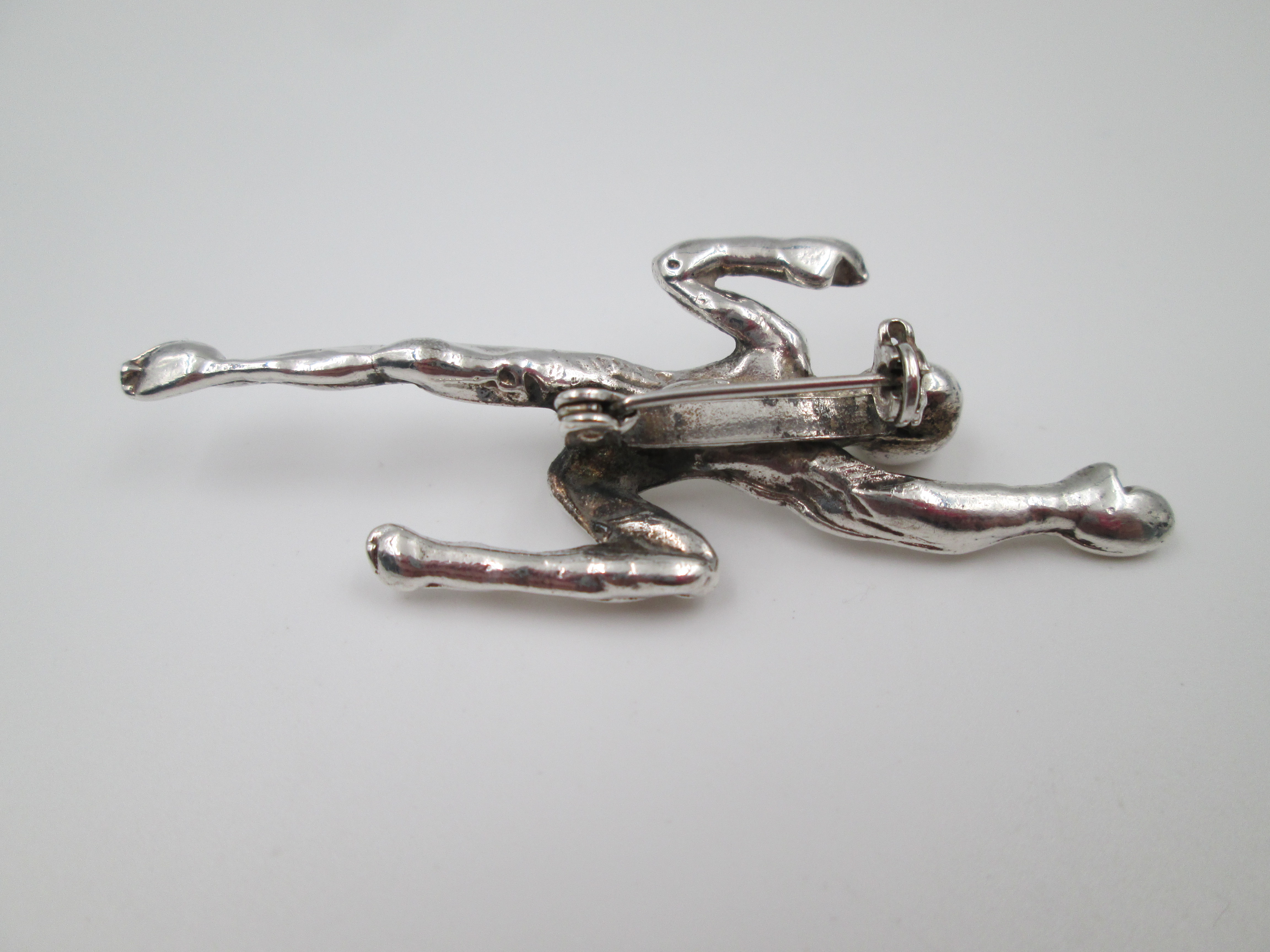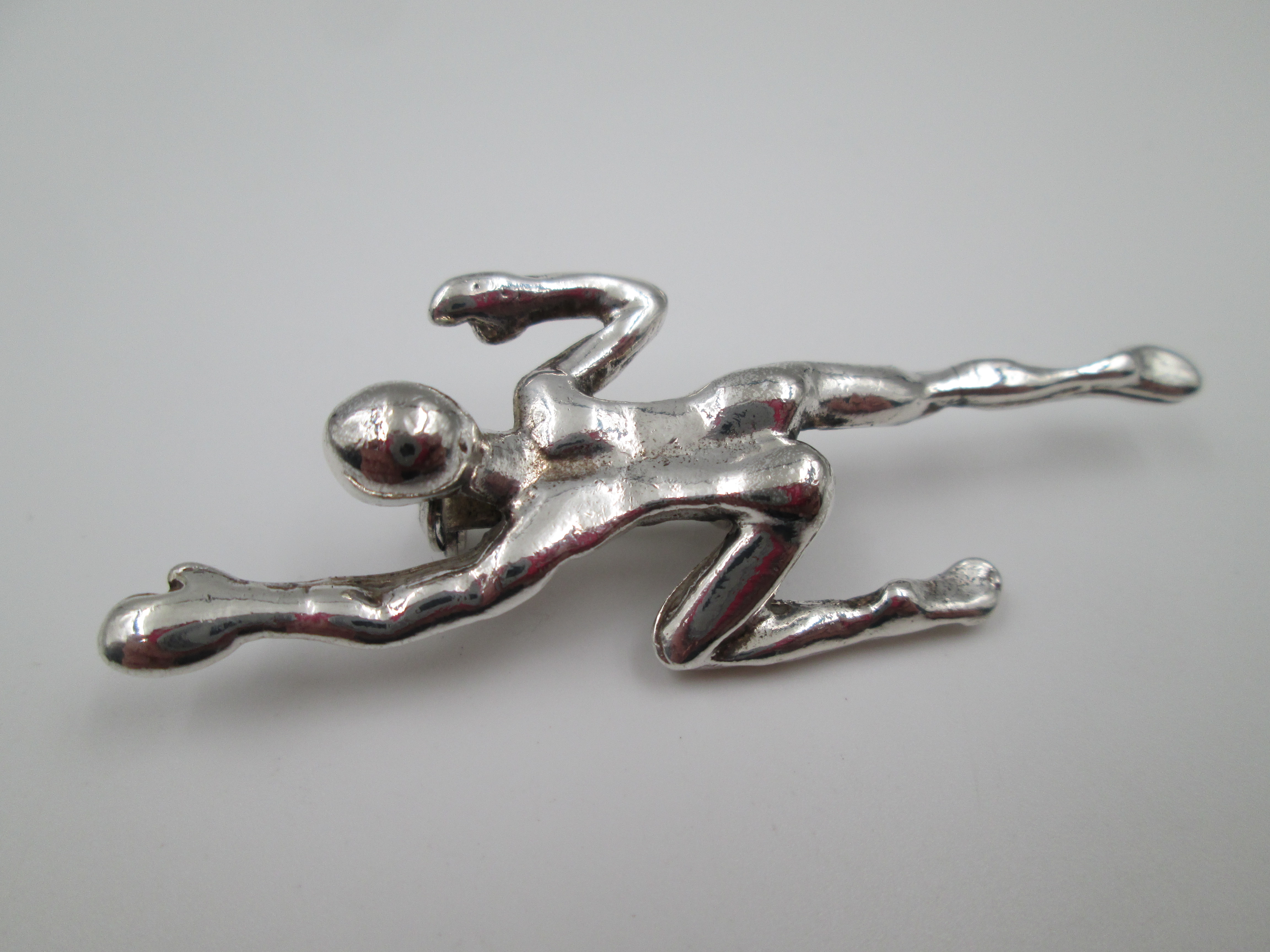 Unisex brooch. Silver plated metal. Figure of a man swimming. Pin on back. Europe. 1970'sUnisex brooch. Silver plated metal. Figure of a man swimming. Pin on back. Europe. 1970'sUnisex brooch. Silver plated metal. Figure of a man swimming. Pin on back. Europe. 1970'sUnisex brooch. Silver plated metal. Figure of a man swimming. Pin on back. Europe. 1970'sUnisex brooch. Silver plated metal. Figure of a man swimming. Pin on back. Europe. 1970'sUnisex brooch. Silver plated metal. Figure of a man swimming. Pin on back. Europe. 1970's