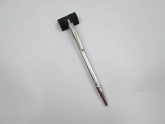 Unoargento ballpoint pen. Sterling silver. Vertical lines pattern. Push-down. 1980's