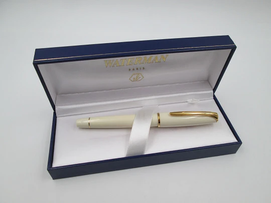 Waterman Charleston. Ivory resin & gold plated details. Art Deco style. 18k nib