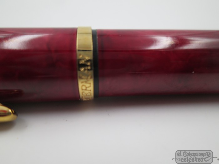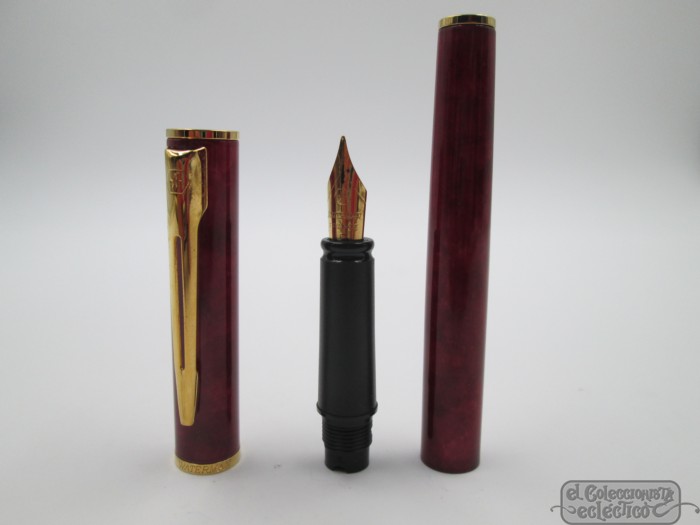 Waterman Paris Apostrophe. Red marble lacquer & golden metal. Fine nib