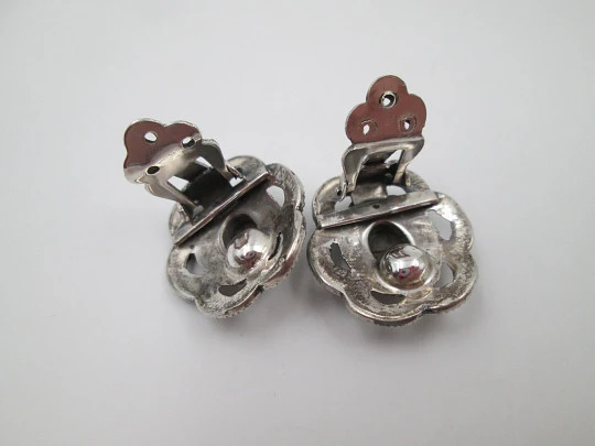 Women's clip earrings. Sterling silver, black stones and marcasite. 1960's