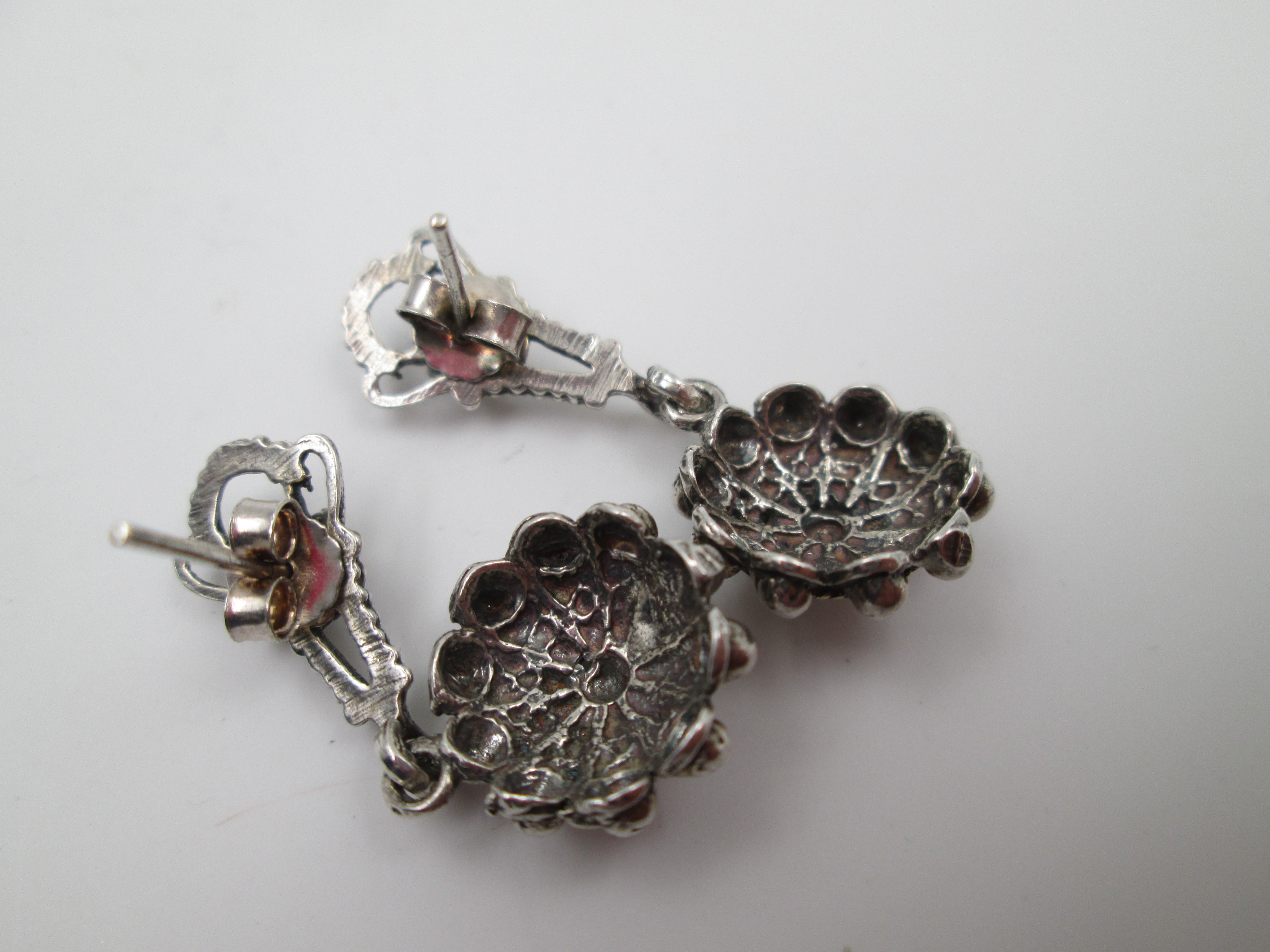 Women's earrings. 925 sterling silver. Charro buttons. Friction back closure. Spain. 2000's