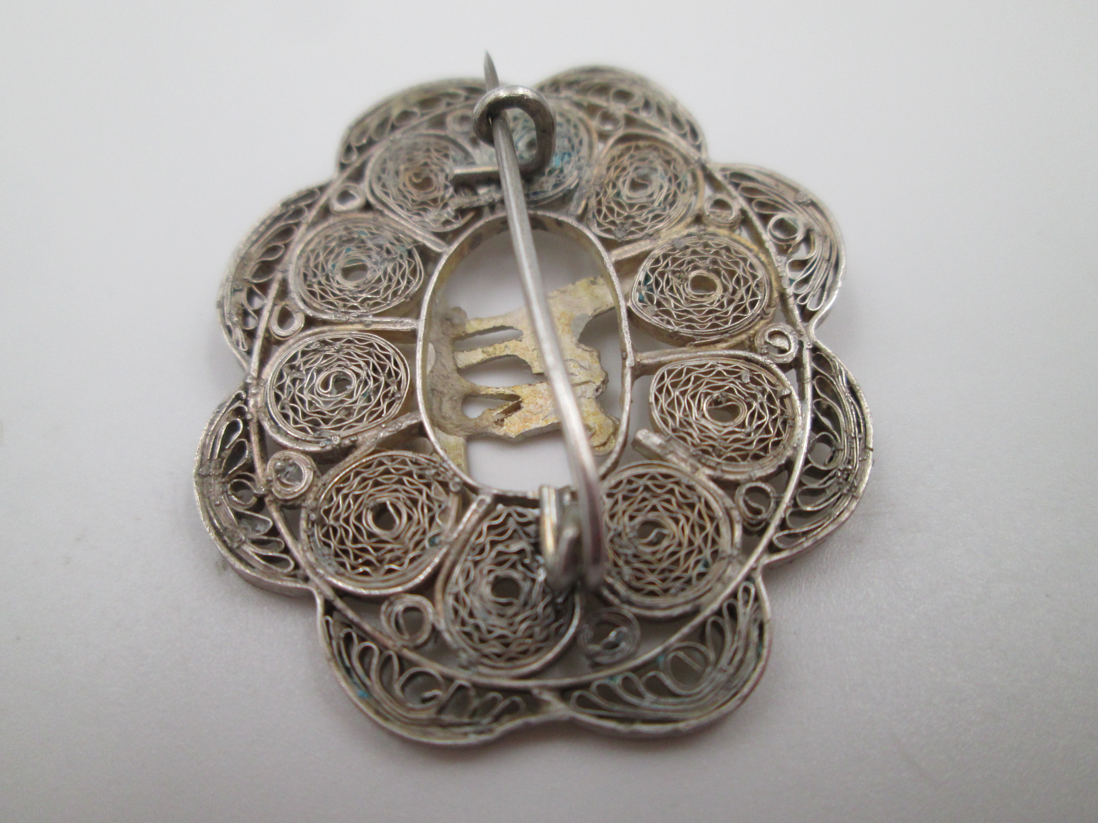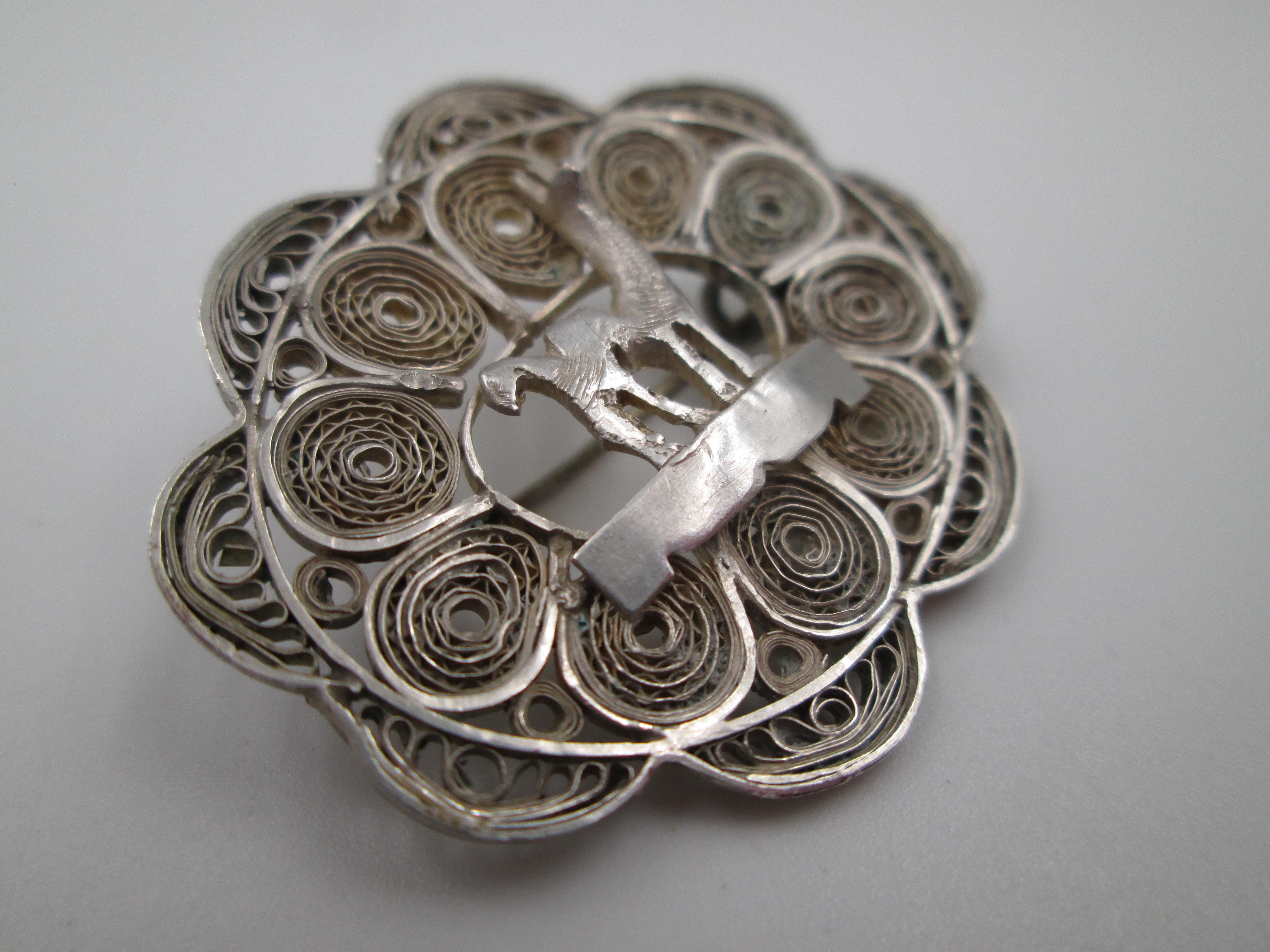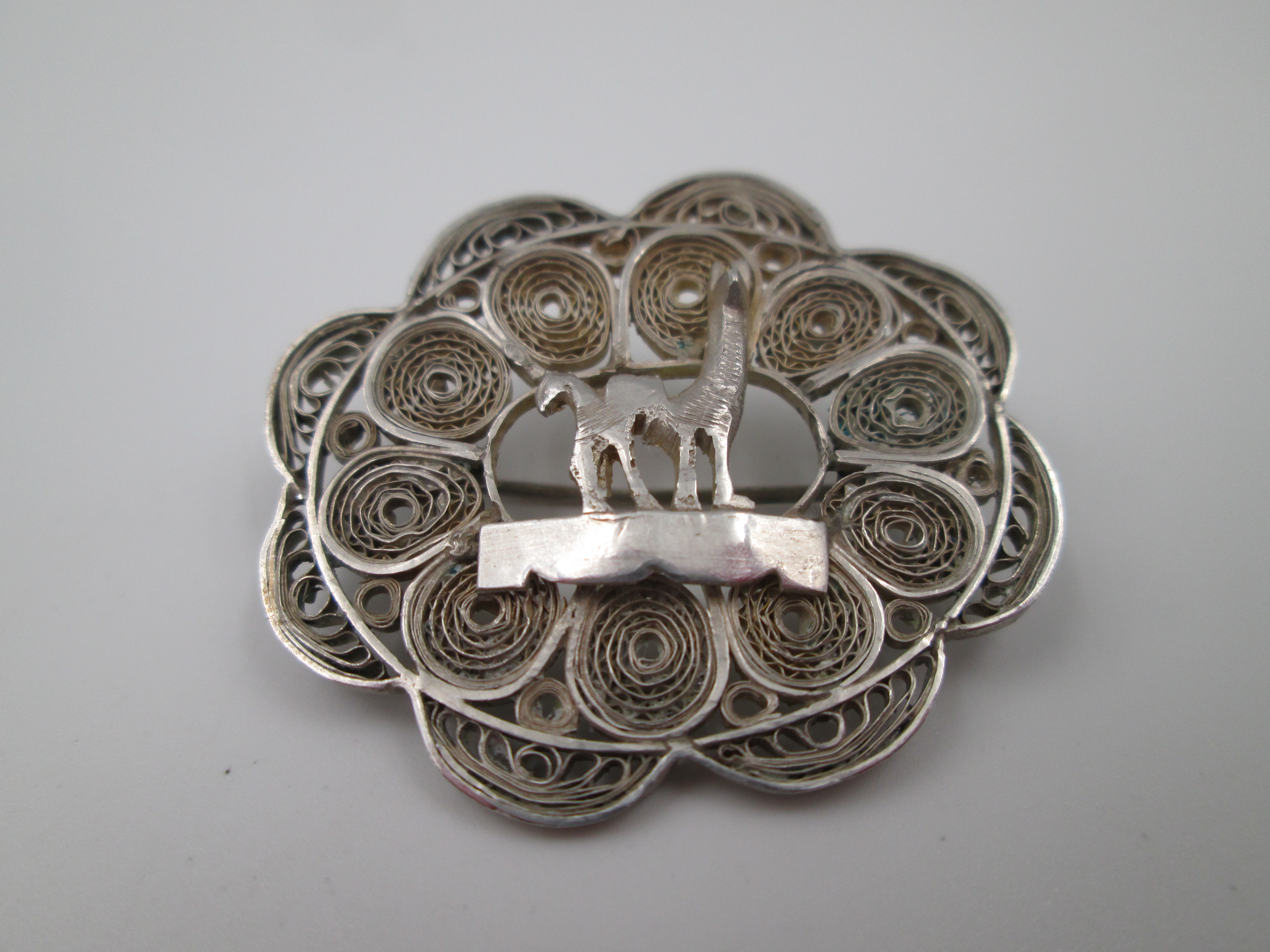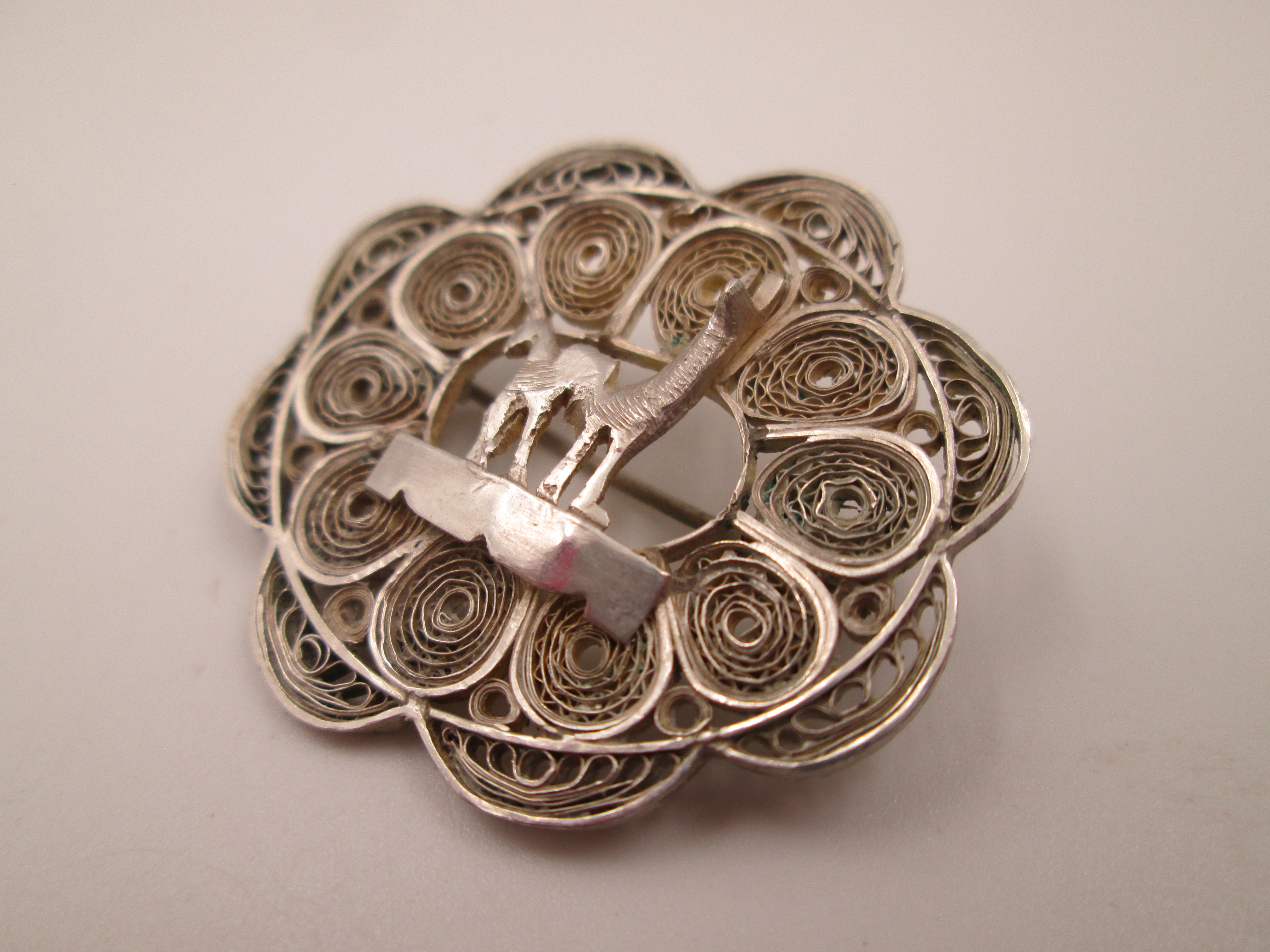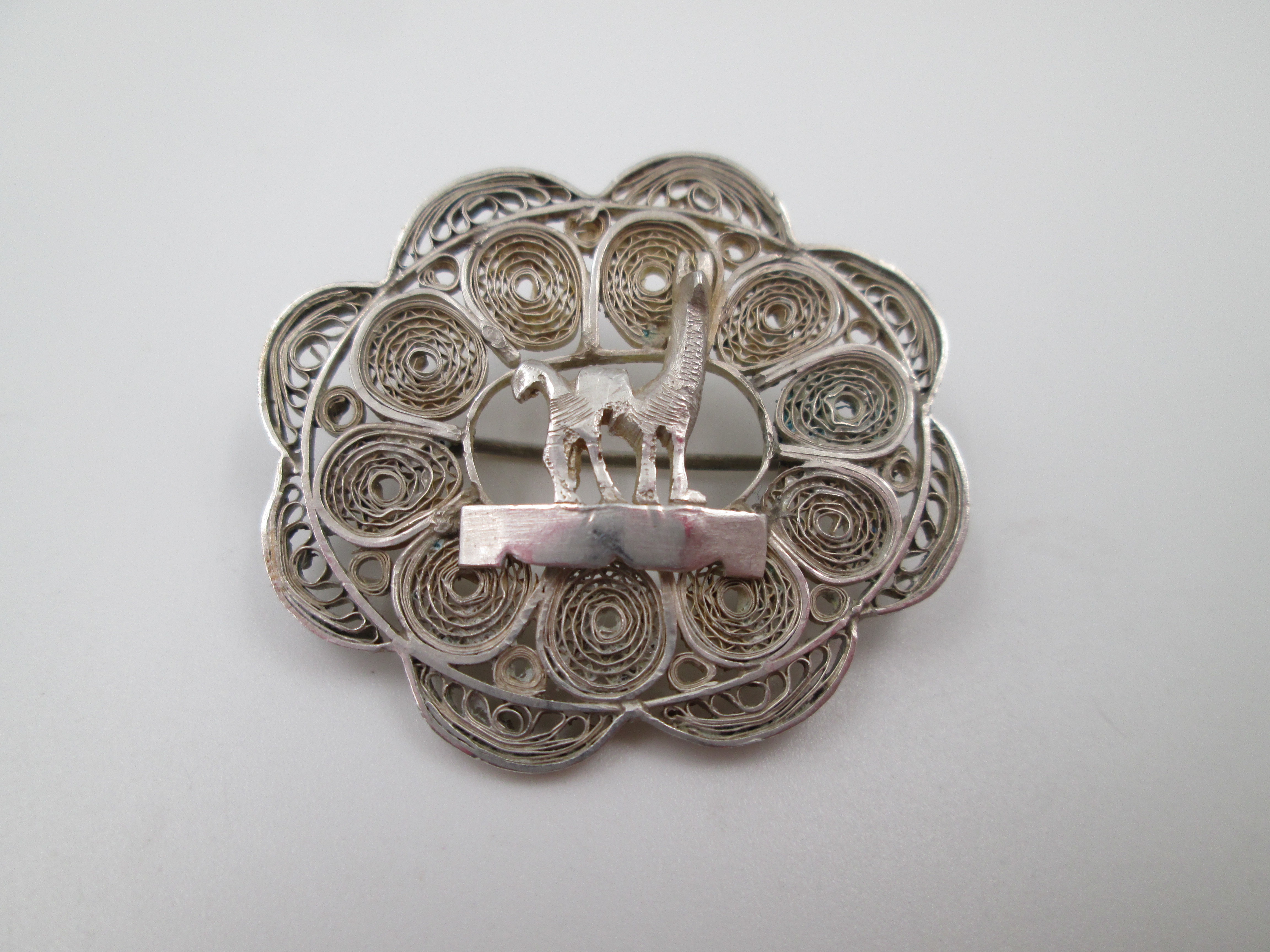 Women's filigree brooch. Sterling silver. Llama figure. Pin back. 1980's. South AmericaWomen's filigree brooch. Sterling silver. Llama figure. Pin back. 1980's. South AmericaWomen's filigree brooch. Sterling silver. Llama figure. Pin back. 1980's. South AmericaWomen's filigree brooch. Sterling silver. Llama figure. Pin back. 1980's. South AmericaWomen's filigree brooch. Sterling silver. Llama figure. Pin back. 1980's. South AmericaWomen's filigree brooch. Sterling silver. Llama figure. Pin back. 1980's. South America