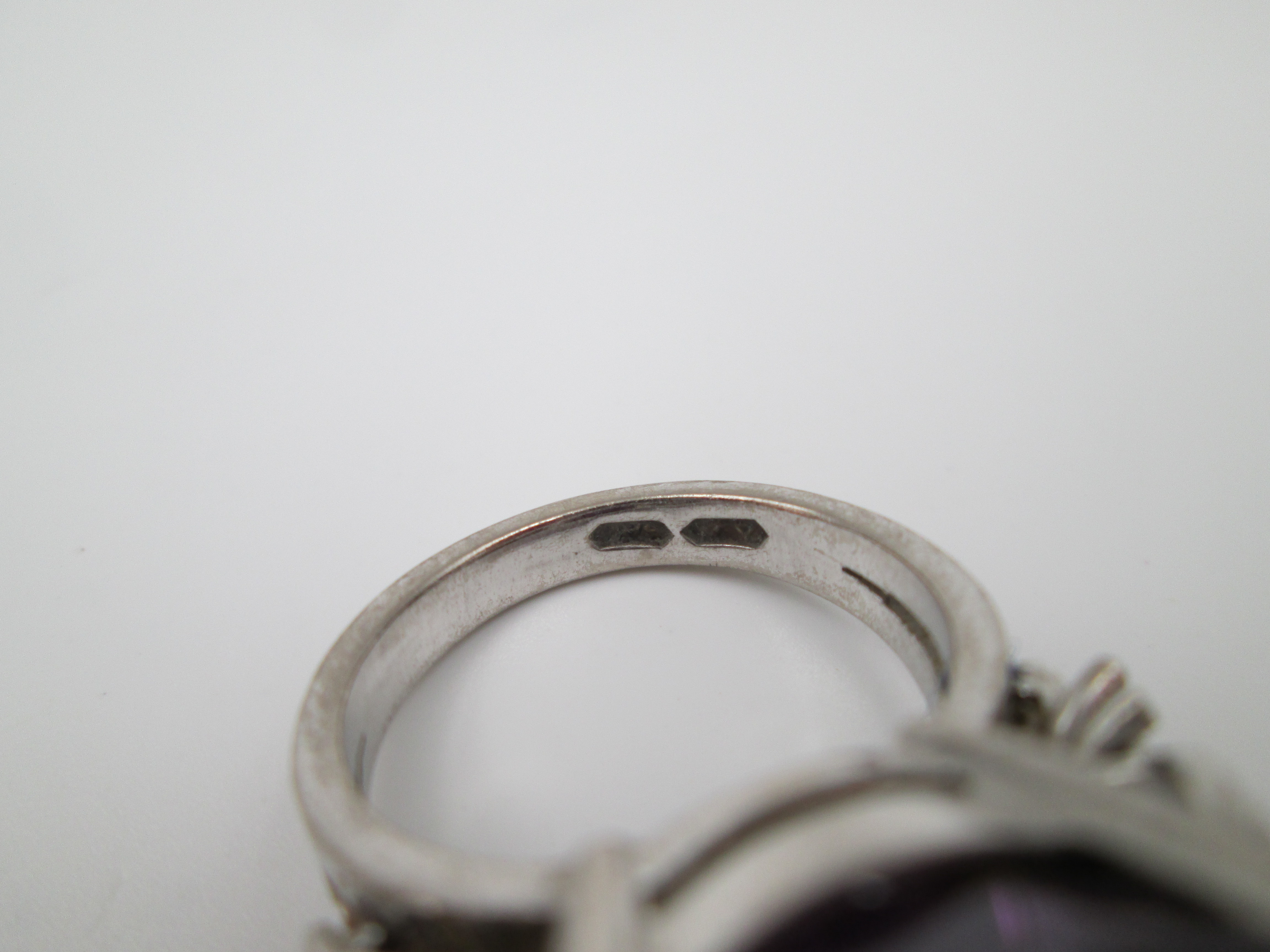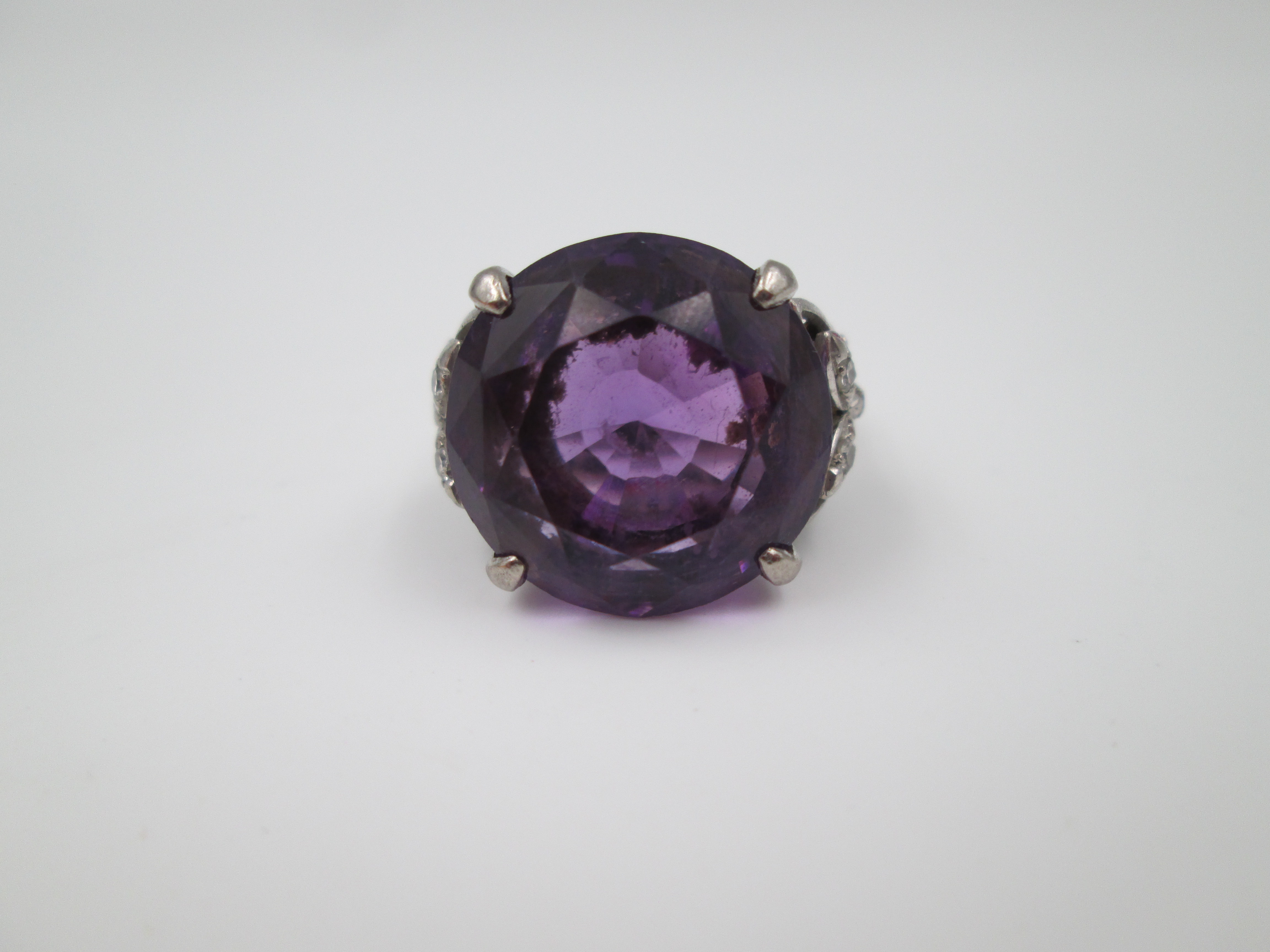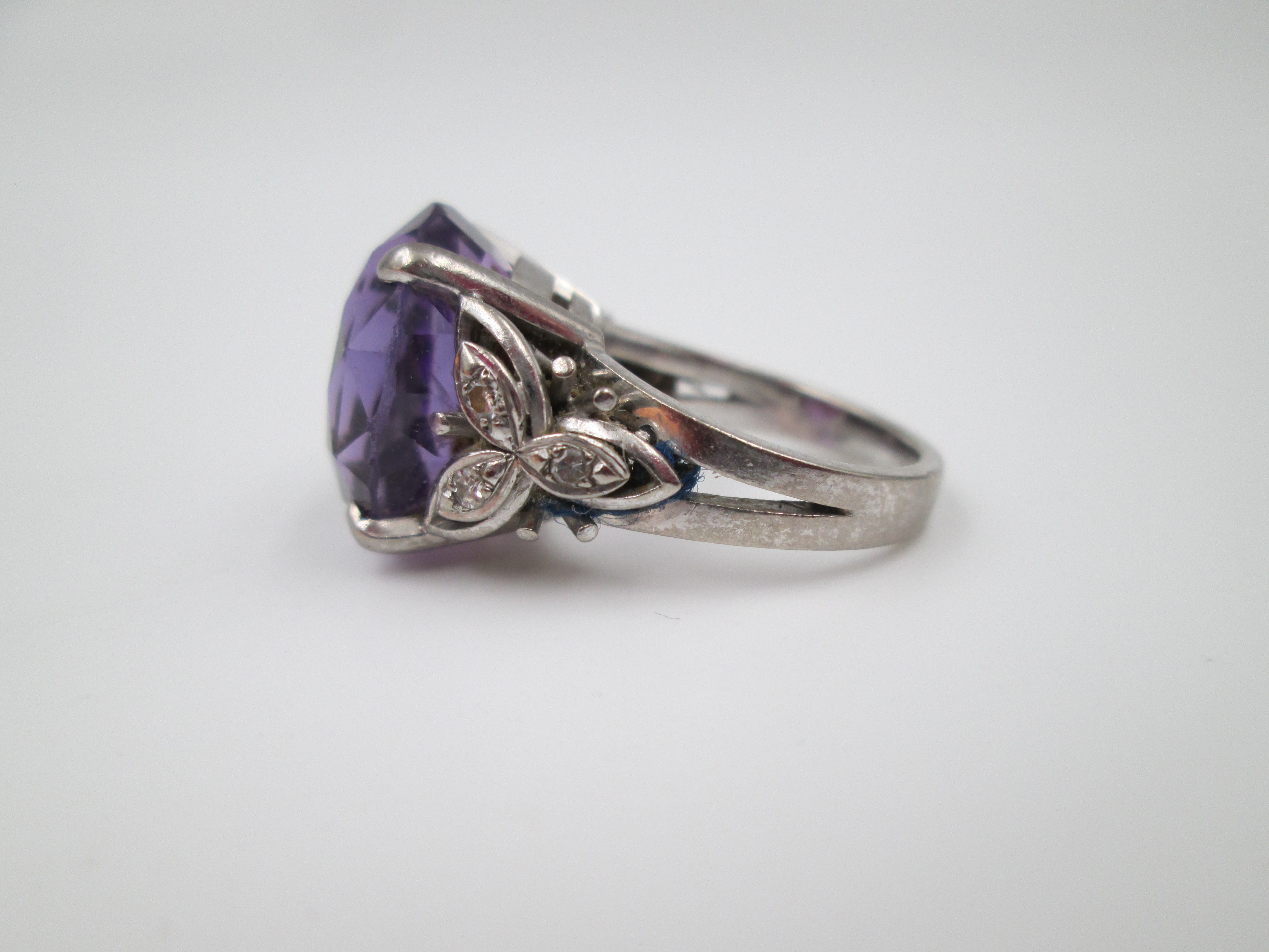 Women's ring. Sterling silver. Amethyst and white gems flowers. Europe. 2000's