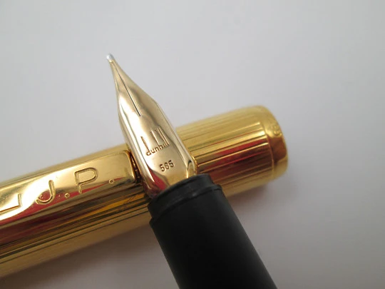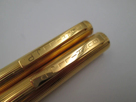 Dunhill writing set. Gold plated. 1970's. Stripe pattern. 14K nib. Germany