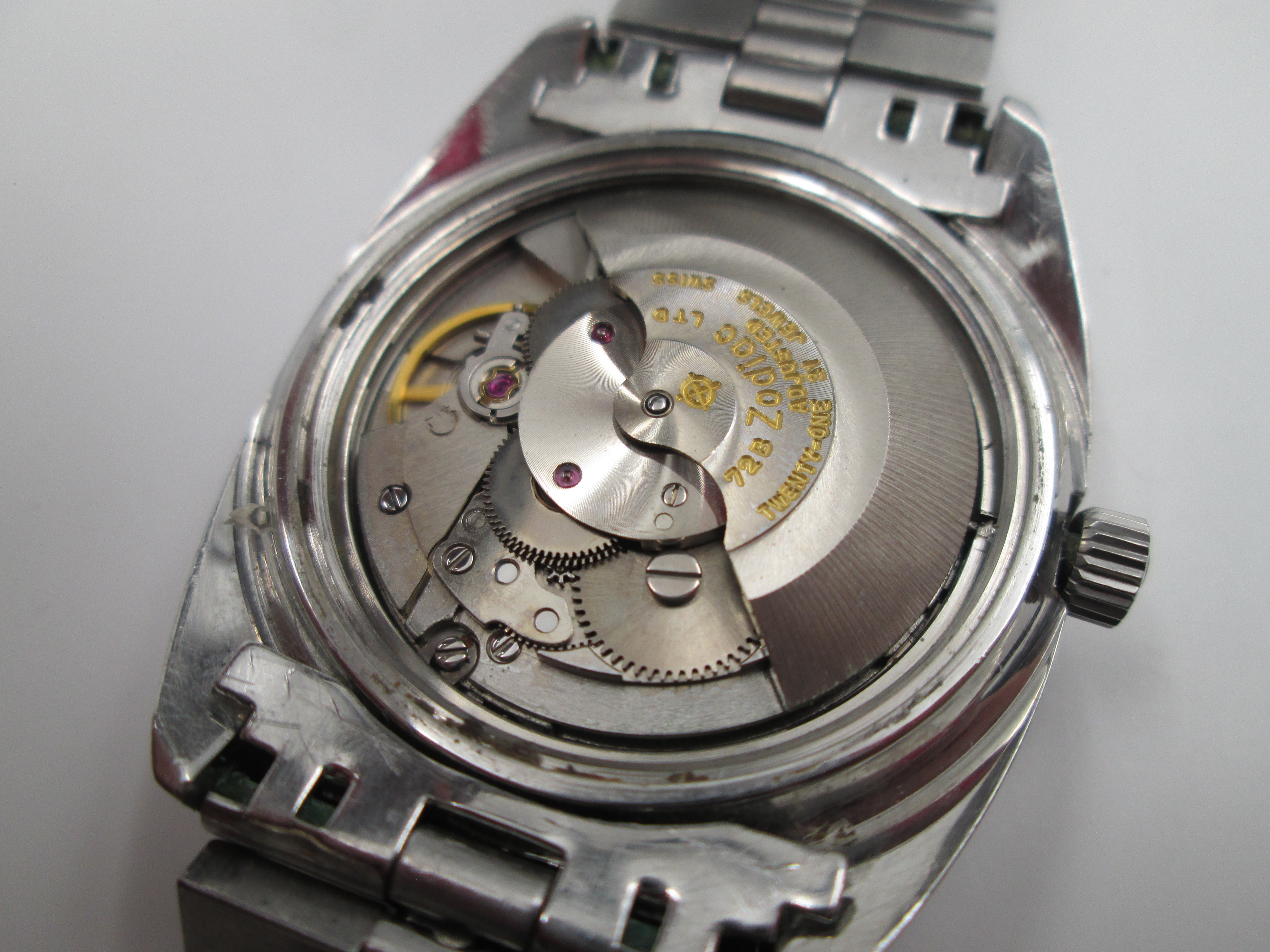 Zodiac. Automatic. Steel. Bitone iridescent dial. Calendar. Bracelet. 1970's