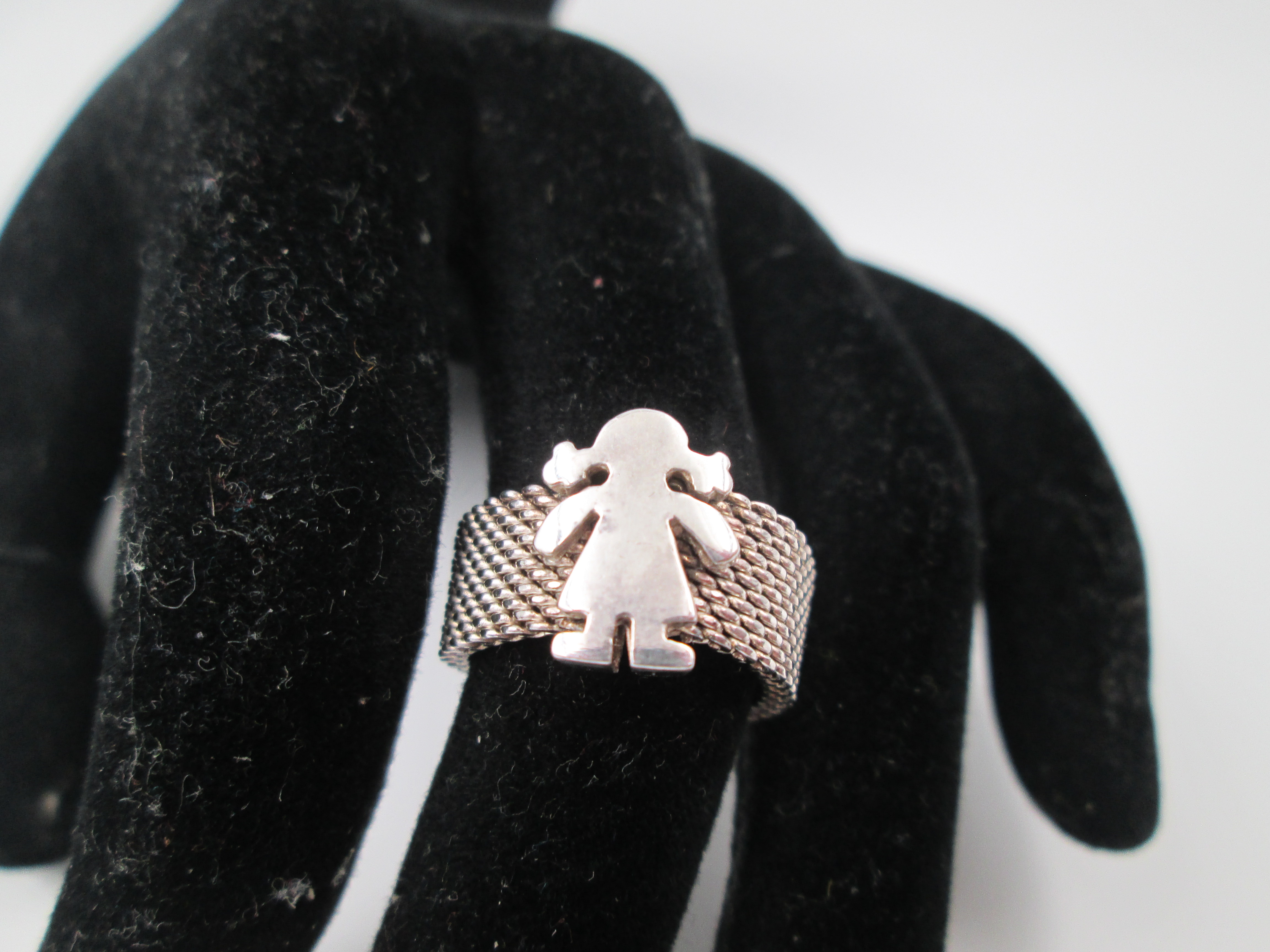 Anillo para mujer joyería Tous. Malla de plata de ley y motivo niña. España. 2015