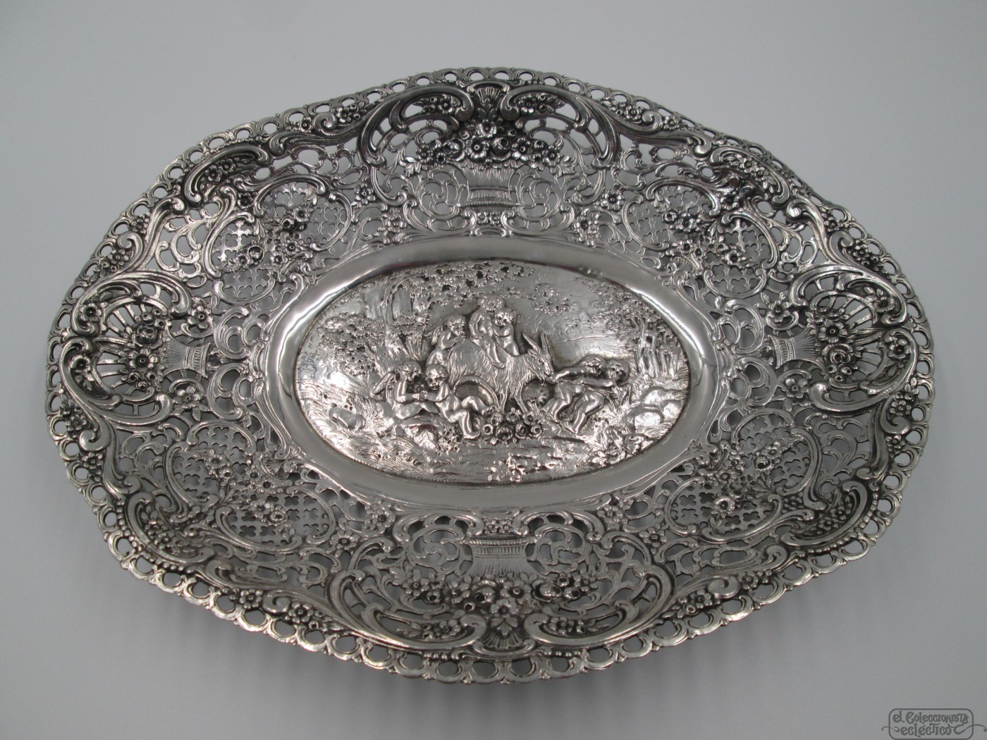 Bandeja querubines. Plata de ley 800. Calada. Cestas de flores. 1910