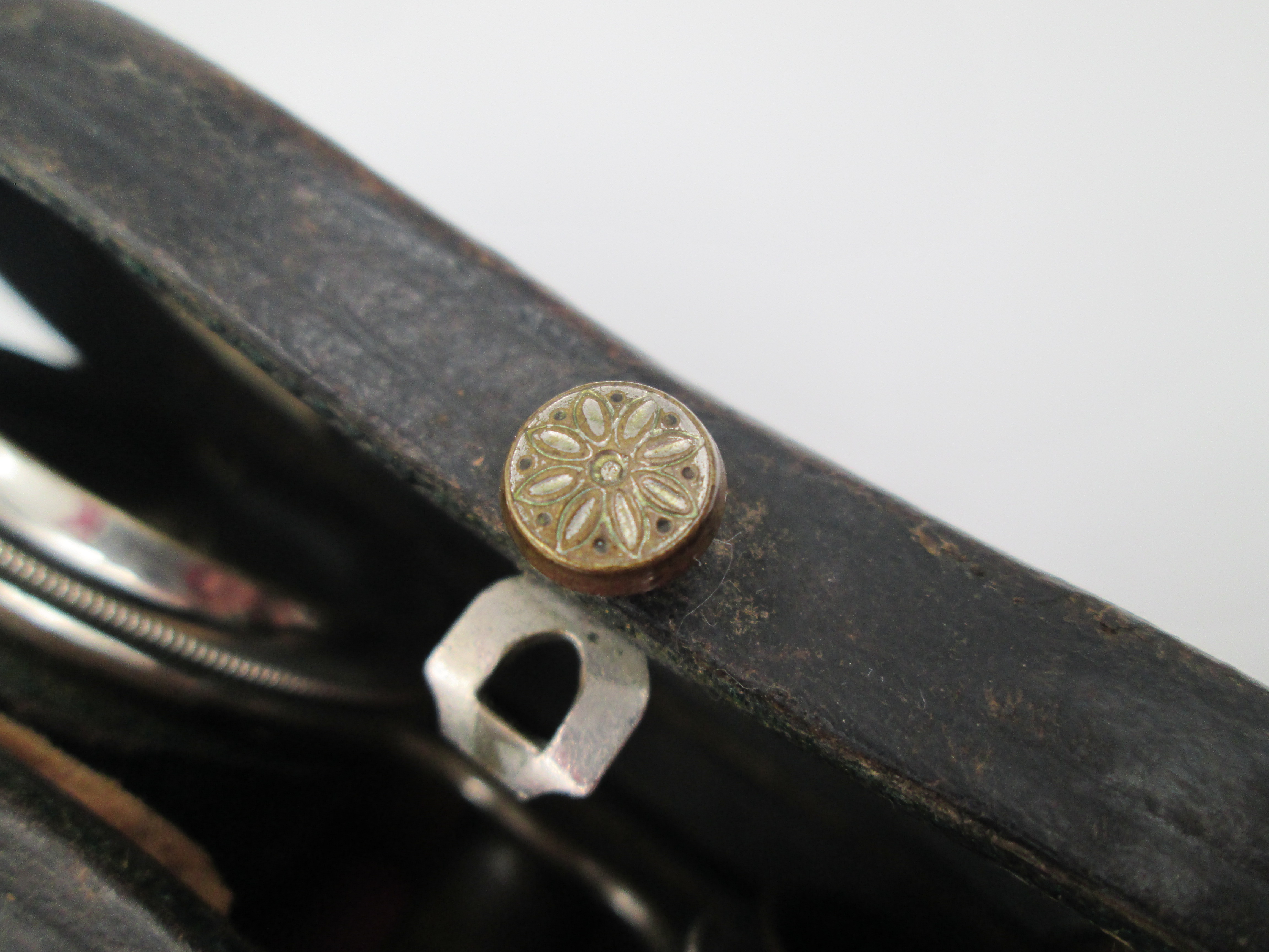 La unidad viene realizada en latón plateado y piel negra y se acompaña del estuche original.