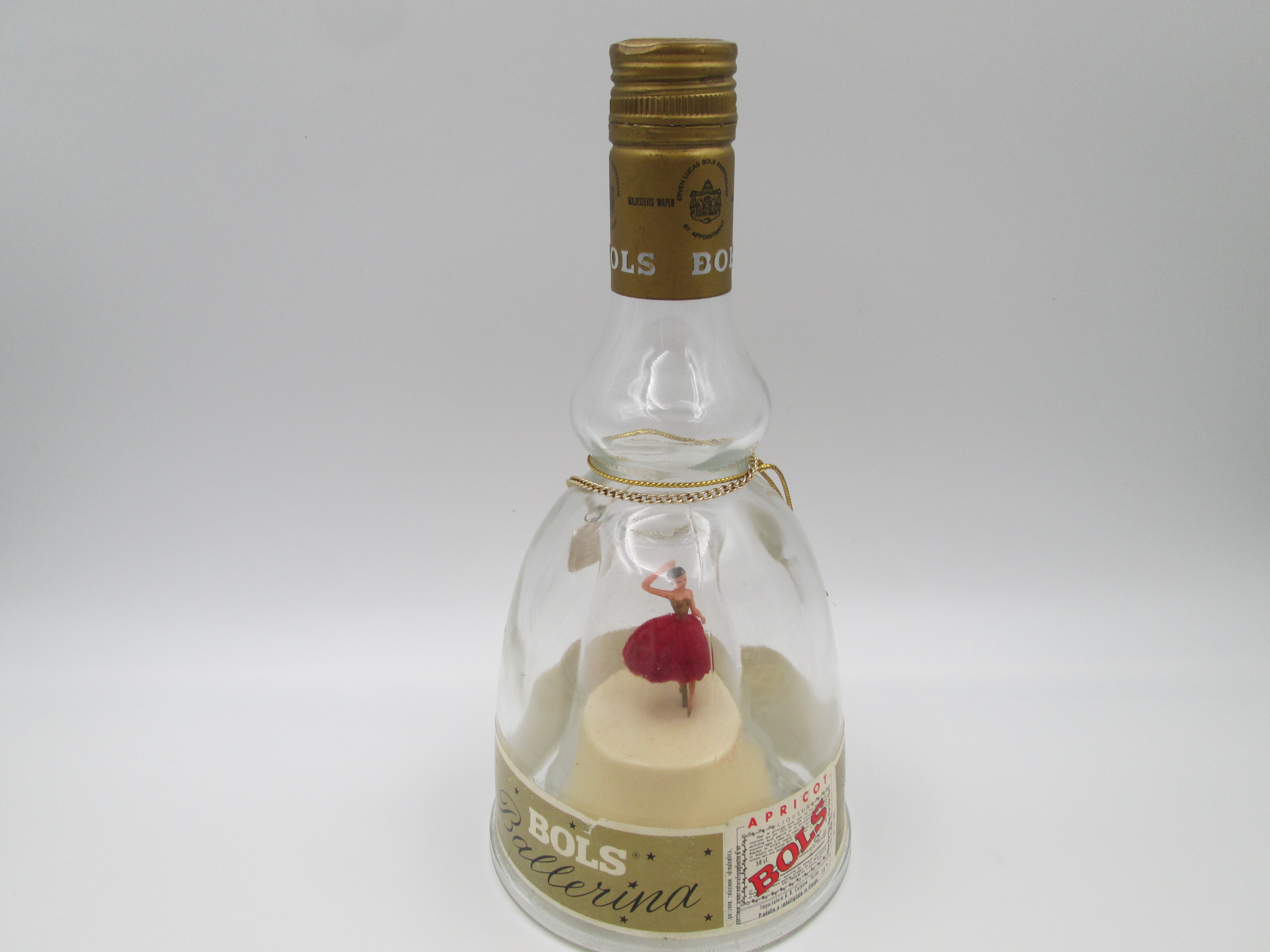 Botella musical bailarina. Destilería Lucas Bols. Cuerda manual. Holanda. 1950