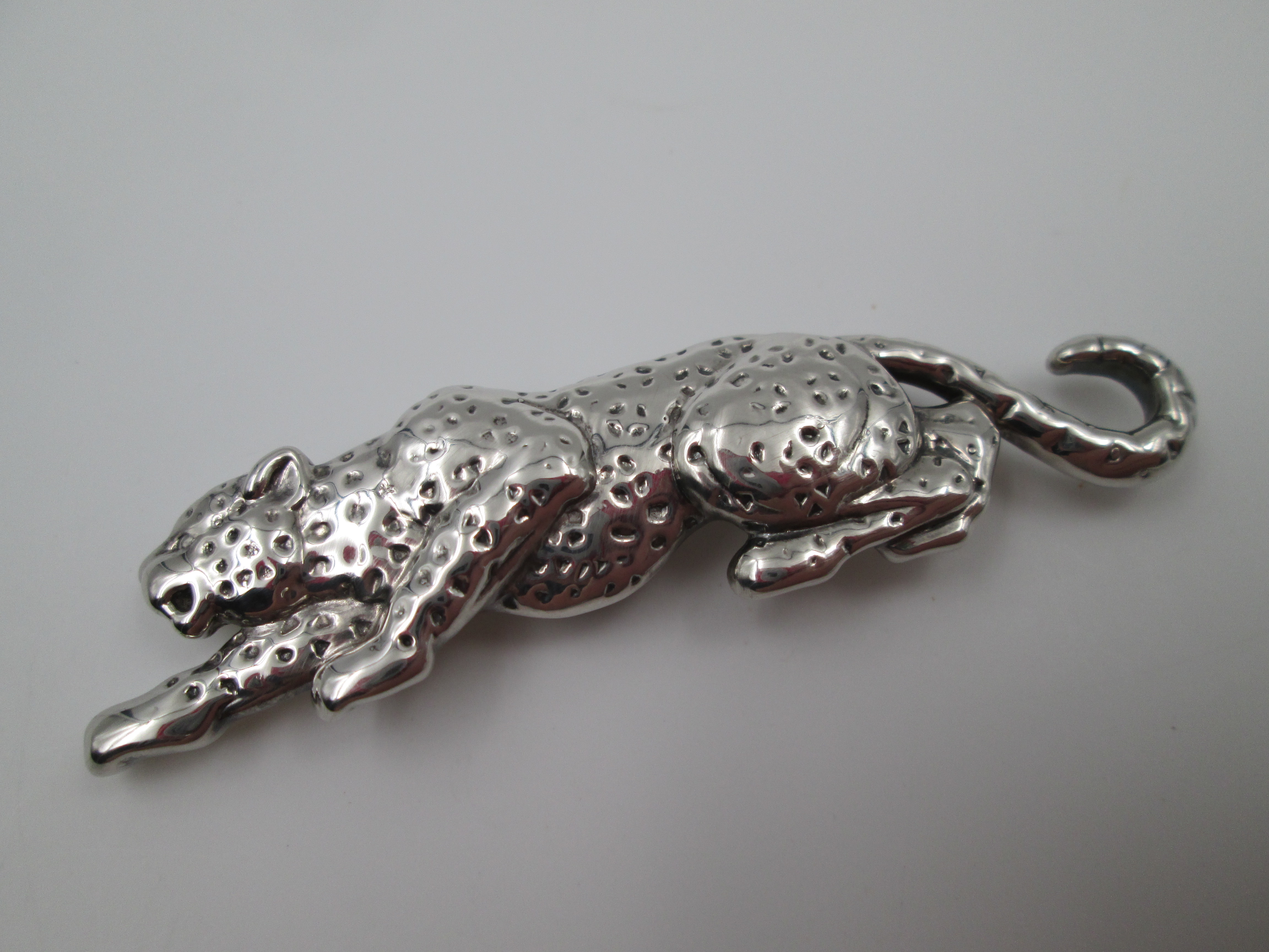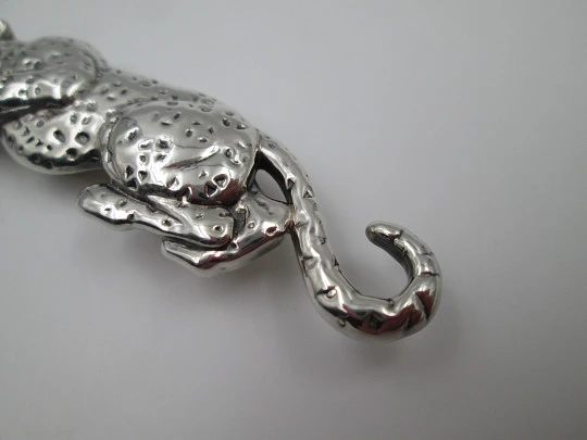 Broche mujer leopardo. Plata de ley 925. Decoración martelé. Europa. 1970