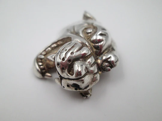 Broche mujer. Plata de ley 925 milésimas. Cabeza perro Bulldog. 1970. México