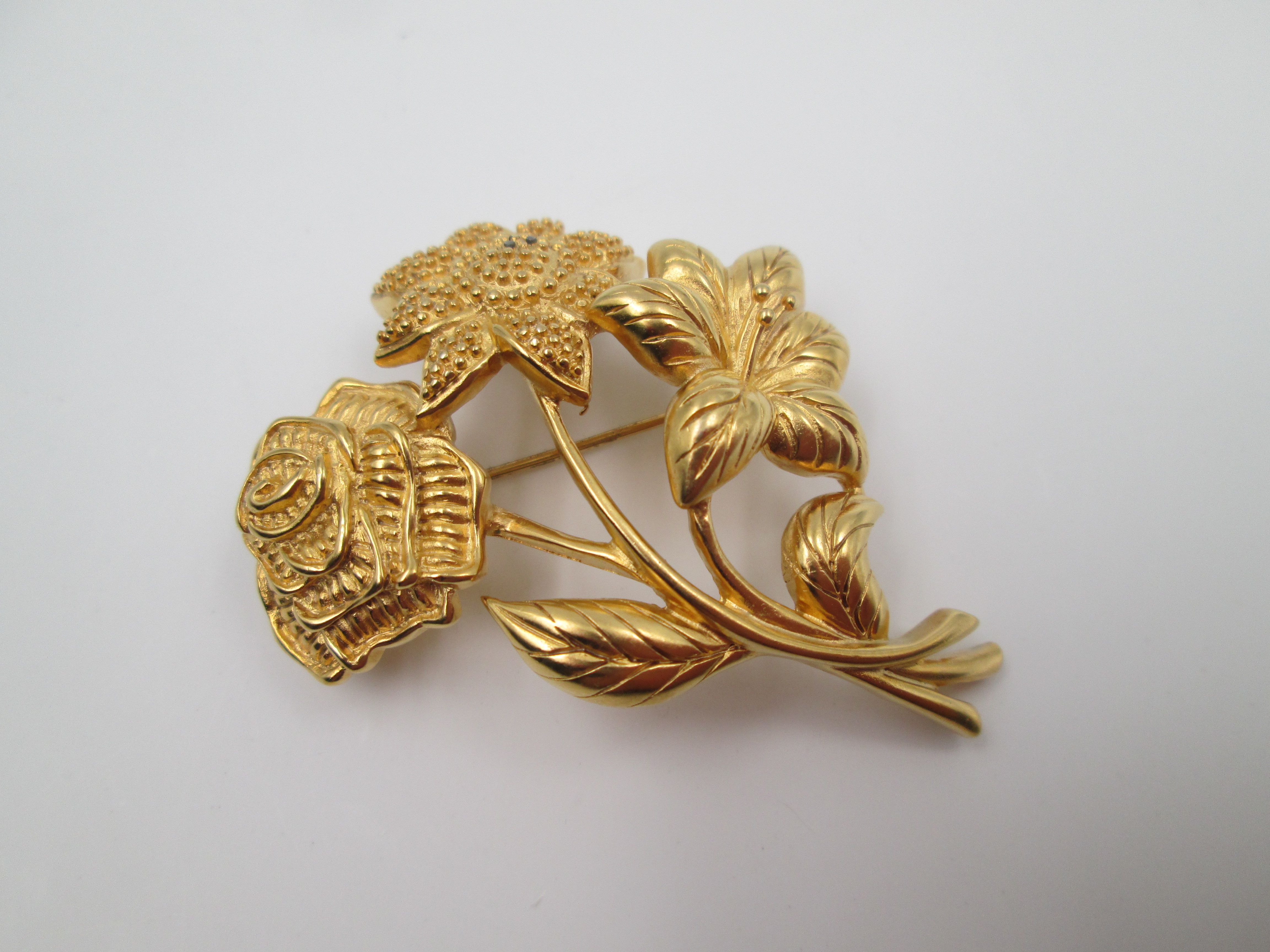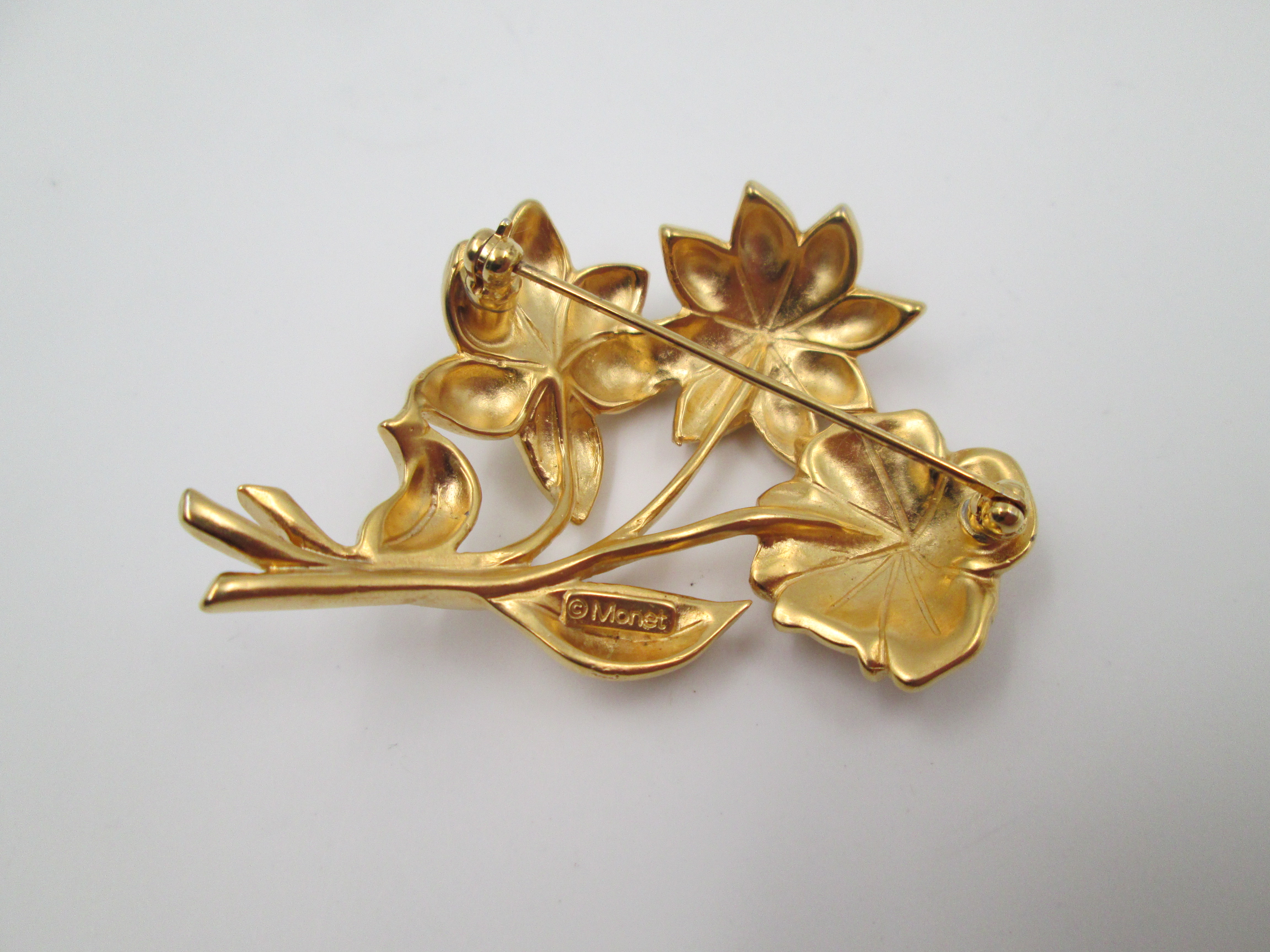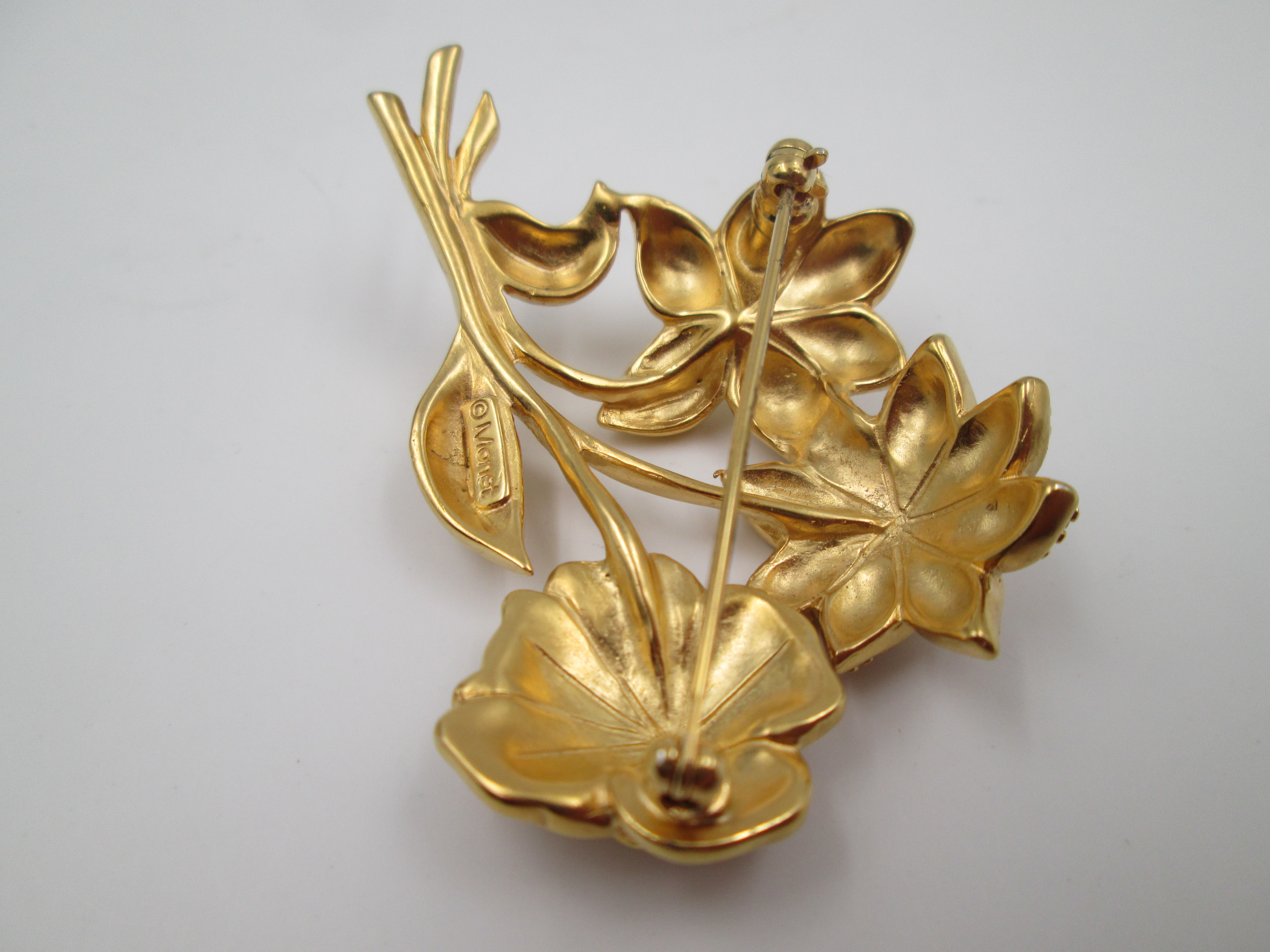 Broche para mujer Monet. Metal chapado en oro. Diseño floral. Estados Unidos. 1960