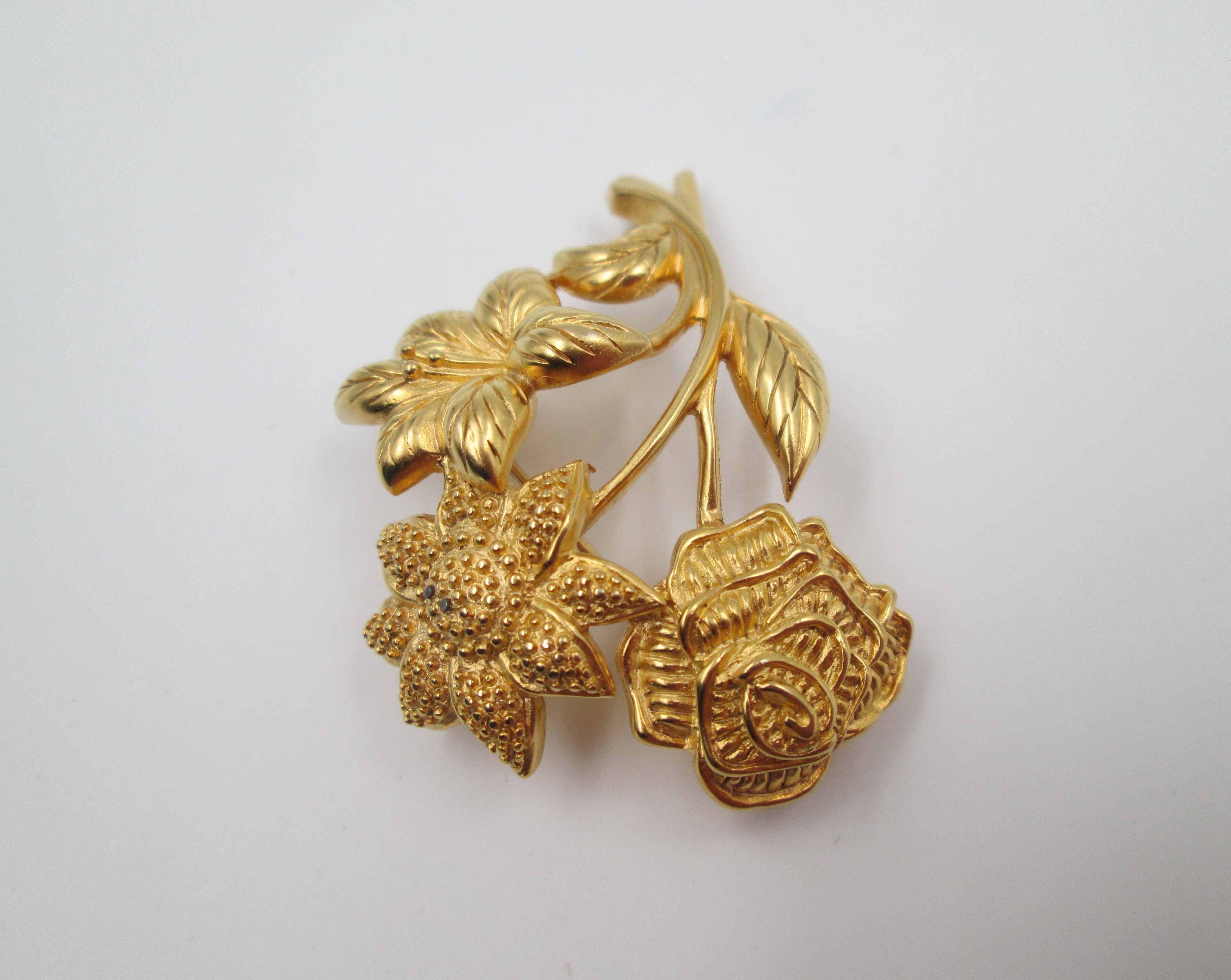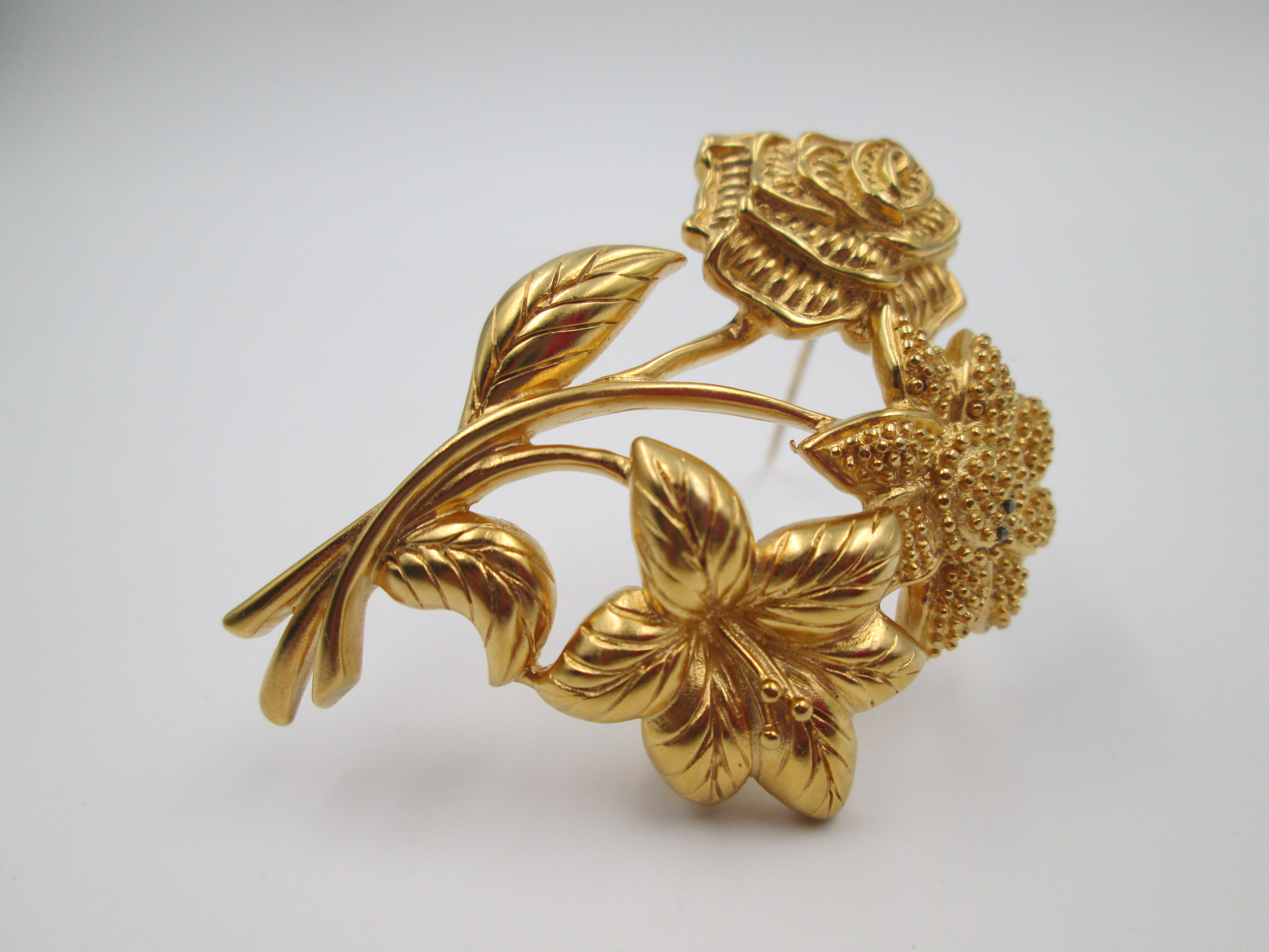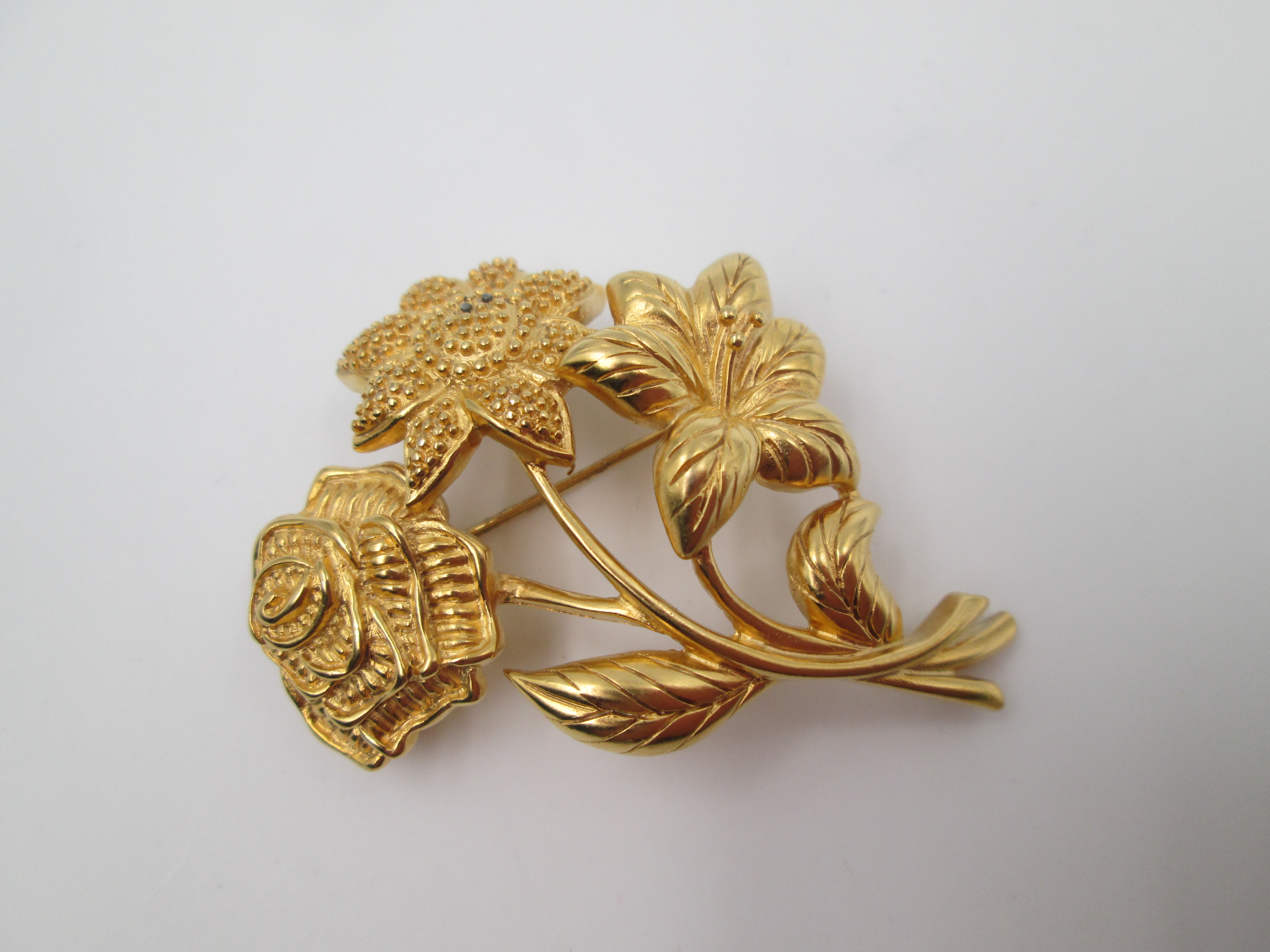 Broche para mujer Monet. Metal chapado en oro. Diseño floral. Estados Unidos. 1960
