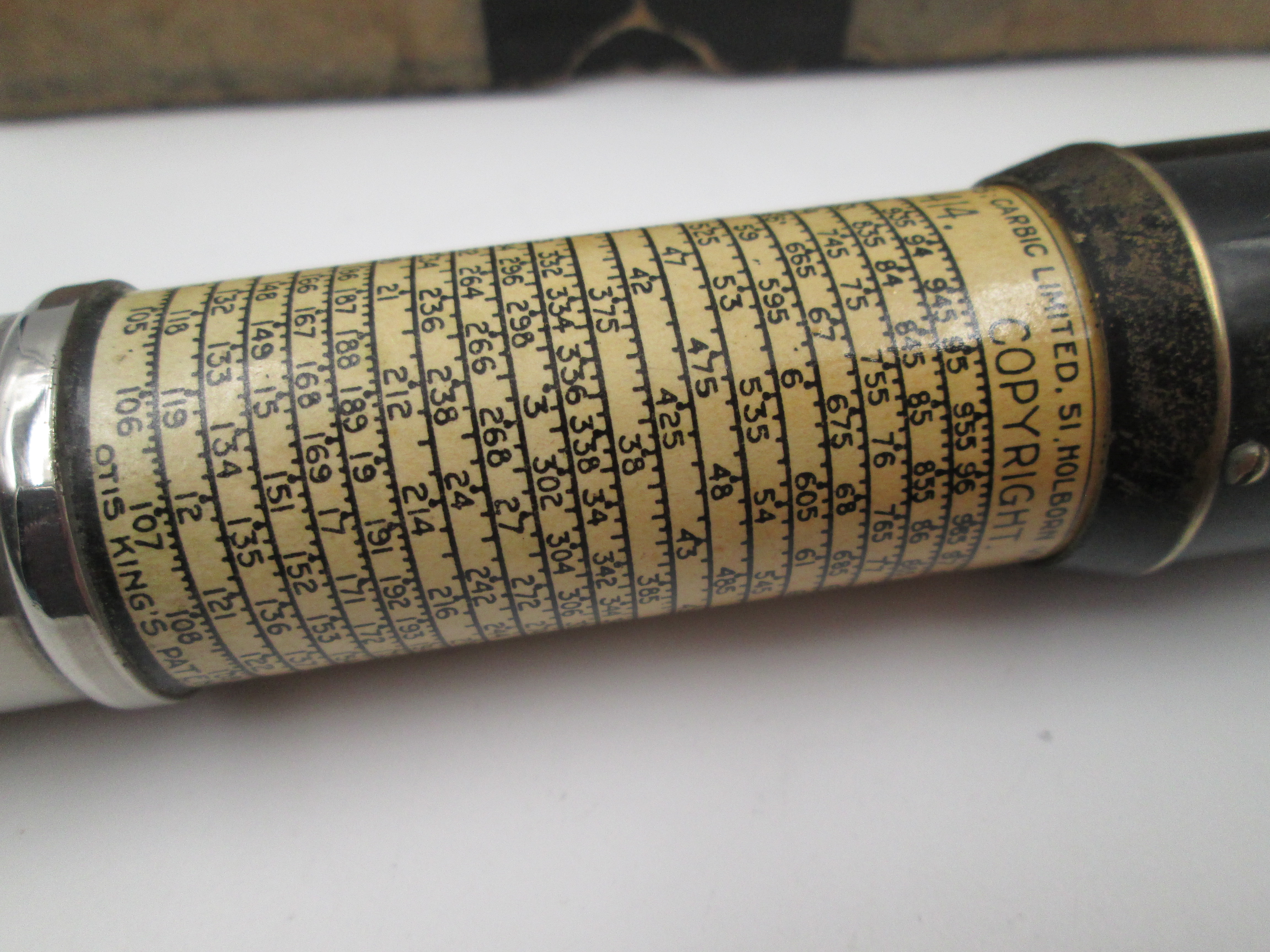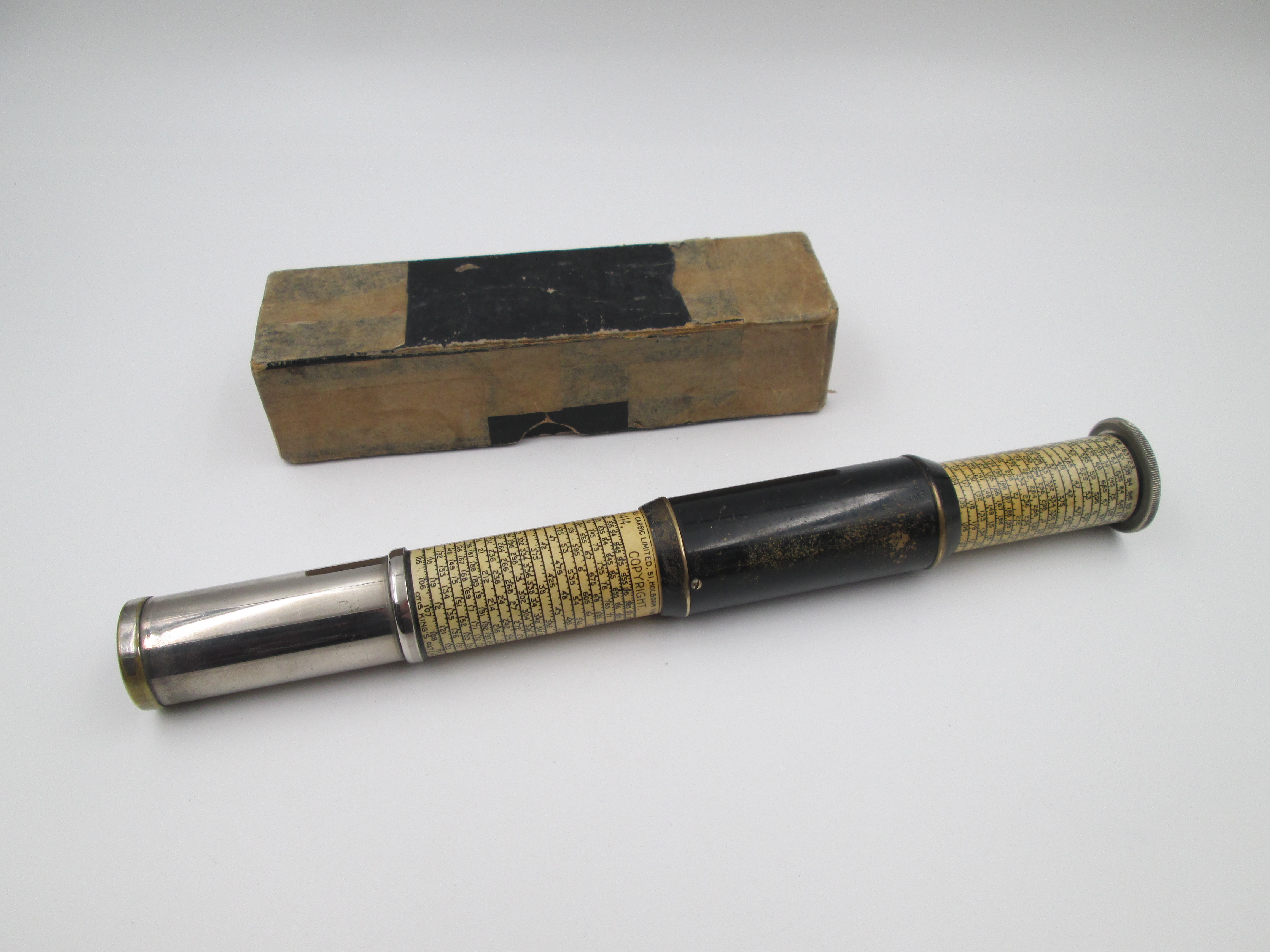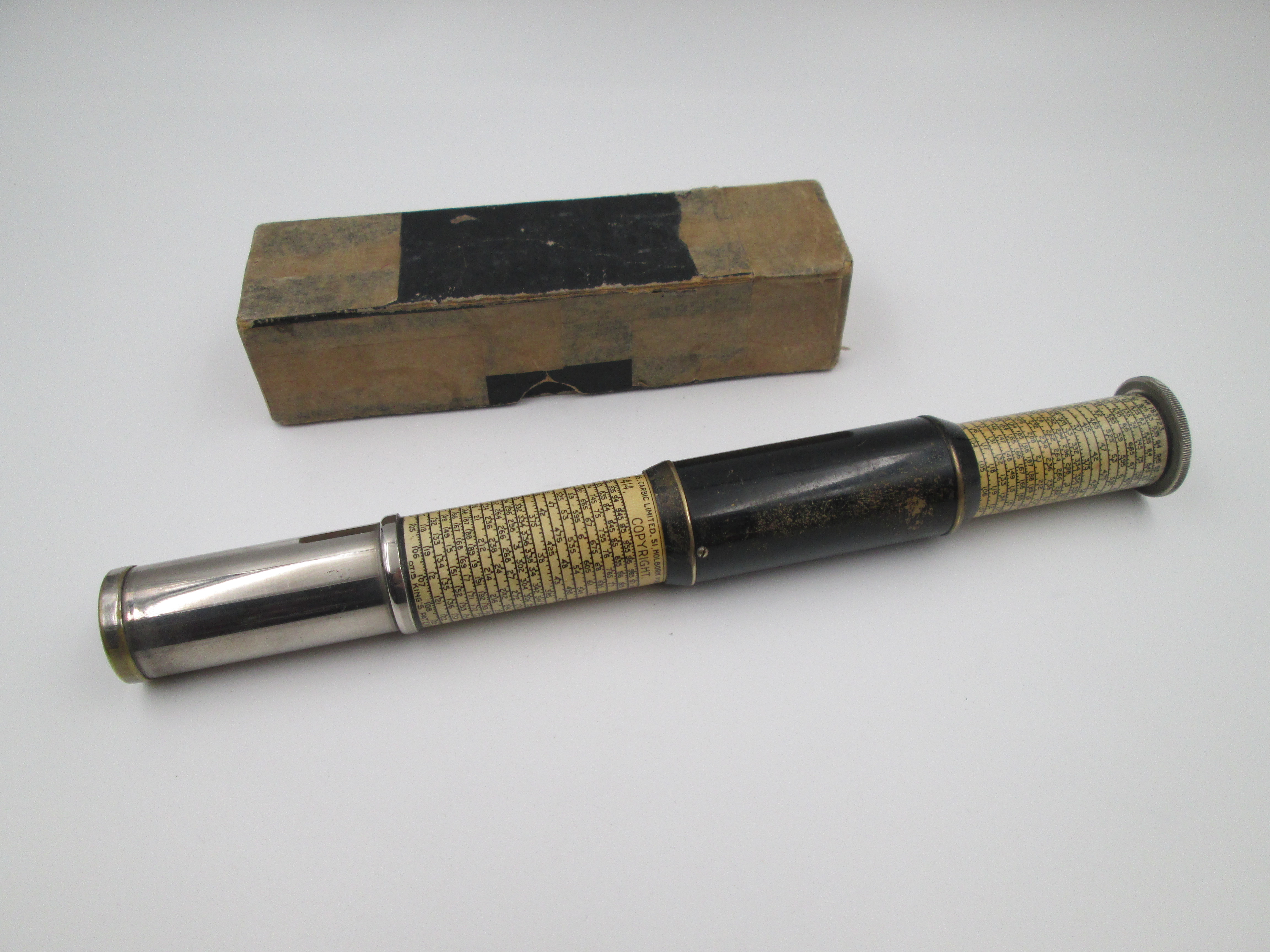 Curiosa calculadora de bolsillo fabricada en Inglaterra alrededor de los años cuarenta.