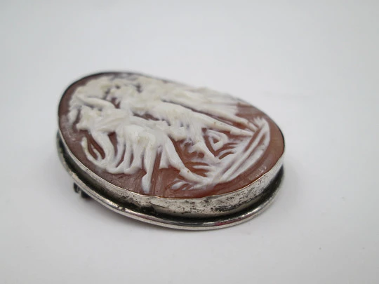 Camafeo escena alto relieve ninfas danzantes. Broche colgante con cerco de plata ley. 1940