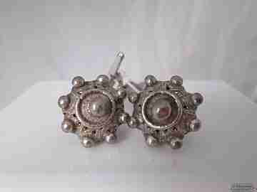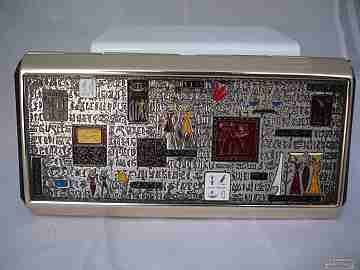 Un rincón para encontrar accesorios de moda retro de alta calidad de bisutería y joyería. Objetos en oro, plata, piedras y materiales preciosos pero también artículos casuales en metal blanco, alpaca y compuestos más plebeyos. Polveras art decó esmaltadas y adornadas con diseños geométricos, unidades cinceladas, dúos, piezas dotadas de cadenas u otras acabadas en carey, referencias embellecidas con brillantes y zafiros, modelos novedosos y polveras con mecanismos musicales... referencias vintage que aparecen junto a otros estilosos adornos de época. Pintalabios de bolsillo en diversos materiales, formas y acabados, con trabajos de orfebrería, espejos incorporados, piedras finas, guilloché o calados, y también soportes de mesa para almacenar varias barras y piezas para juegos de tocador. Igualmente, ofrecemos pitilleras, perfumadores, alfileres de pelo, sets de manicura, cuadernitos de notas, portafotos, espejitos, alfileteros, cerilleros e infinidad de complementos de época para hacerte sentir como una reina o un rey.