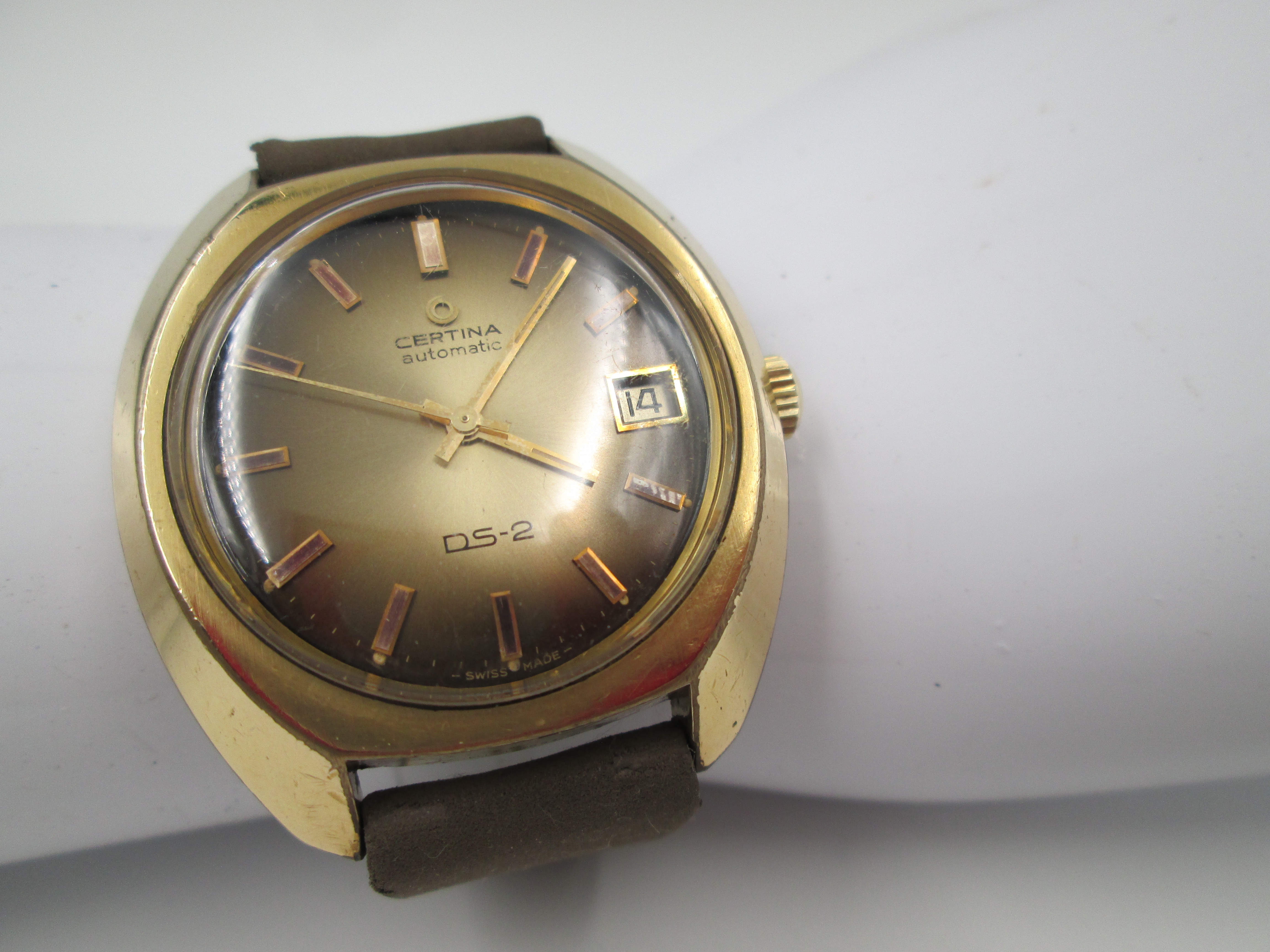 Certina DS-2. Acero y chapado oro. Dial tornasolado. Automático. Calendario. 1970