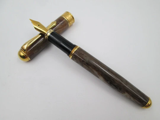 Cesare Emiliano. Resina marmolizada jaspeada y metal chapado oro. Estuche
