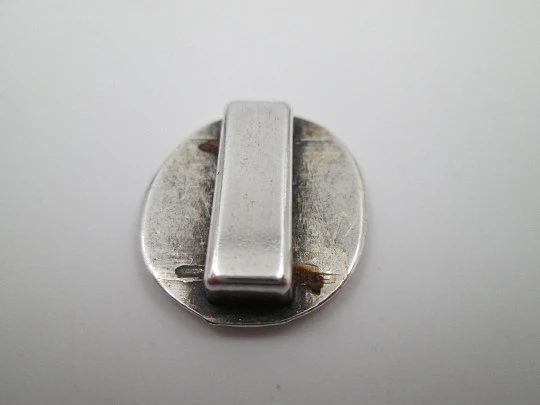 Colgante aplique circular para cinta. Plata de ley. Relieve busto griego. Europa. 1930