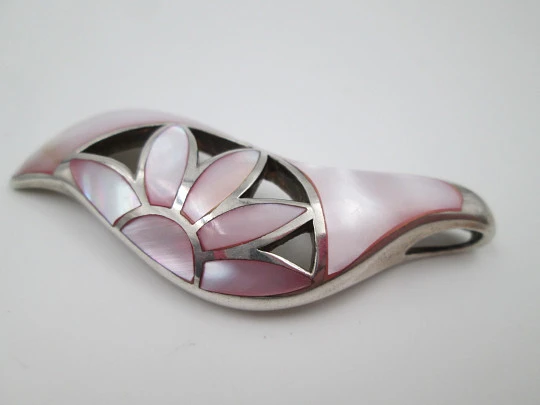 Colgante calado mujer. Plata de ley 925 y madreperla rosa blanca. 1980