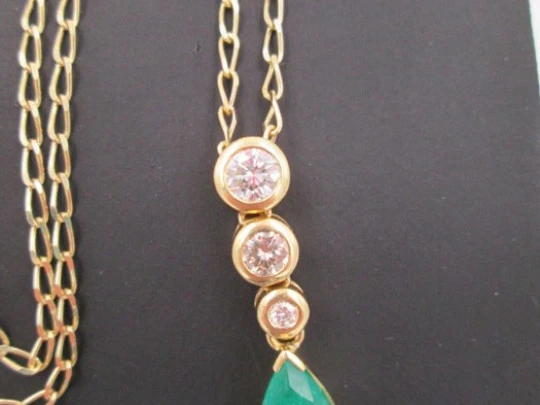 Colgante con cadena. Oro 18K, diamantes y esmeralda. Años 90