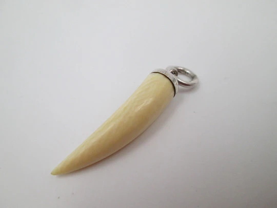 Colgante unisex forma cuerno. Marfil y plata de ley 925. España. 2000