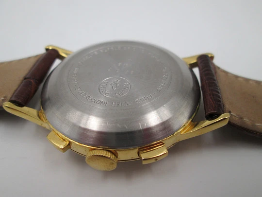 Cronógrafo Cauny Prima. Chapado oro 10 micras. Cuerda. Años 50