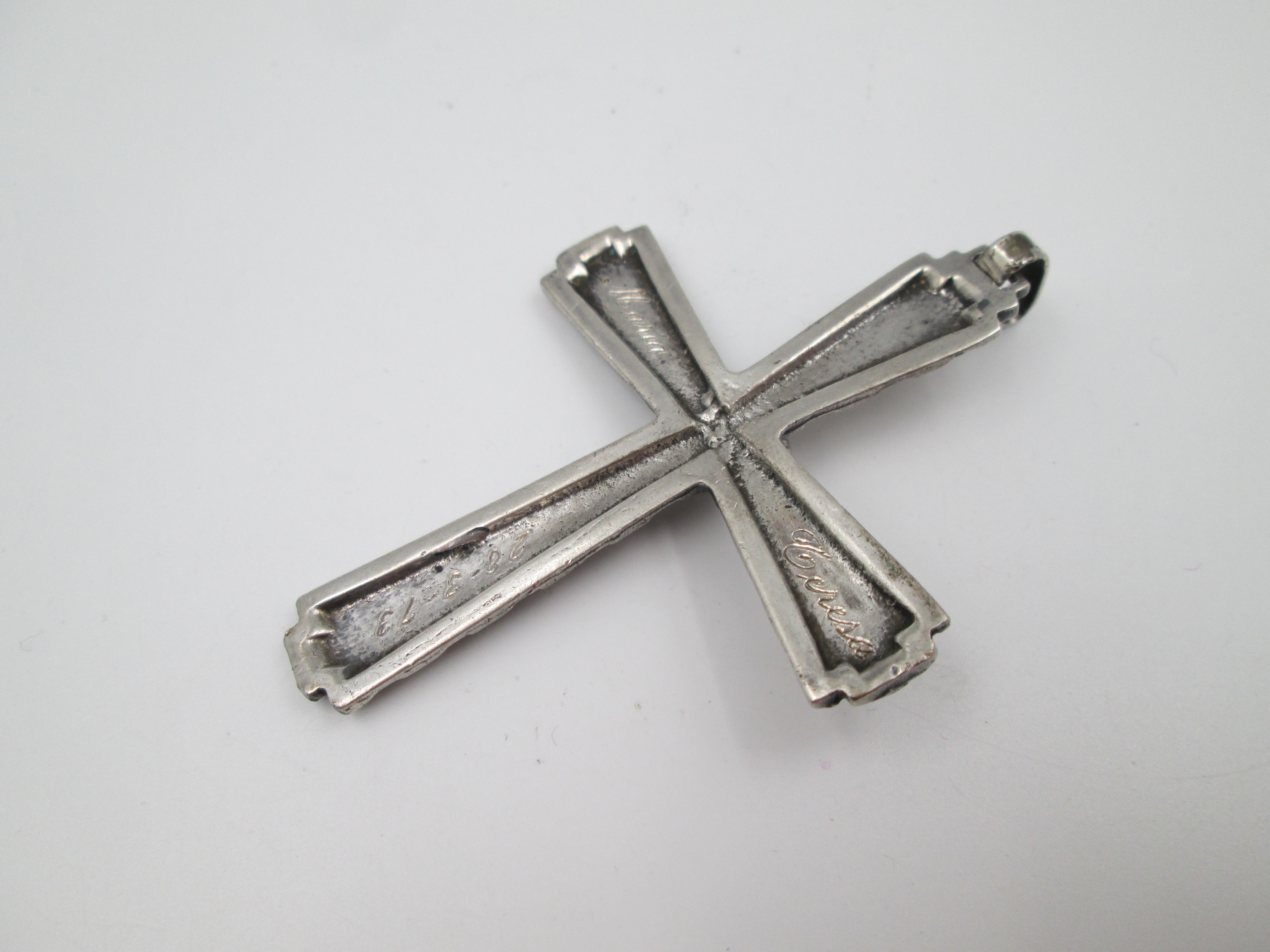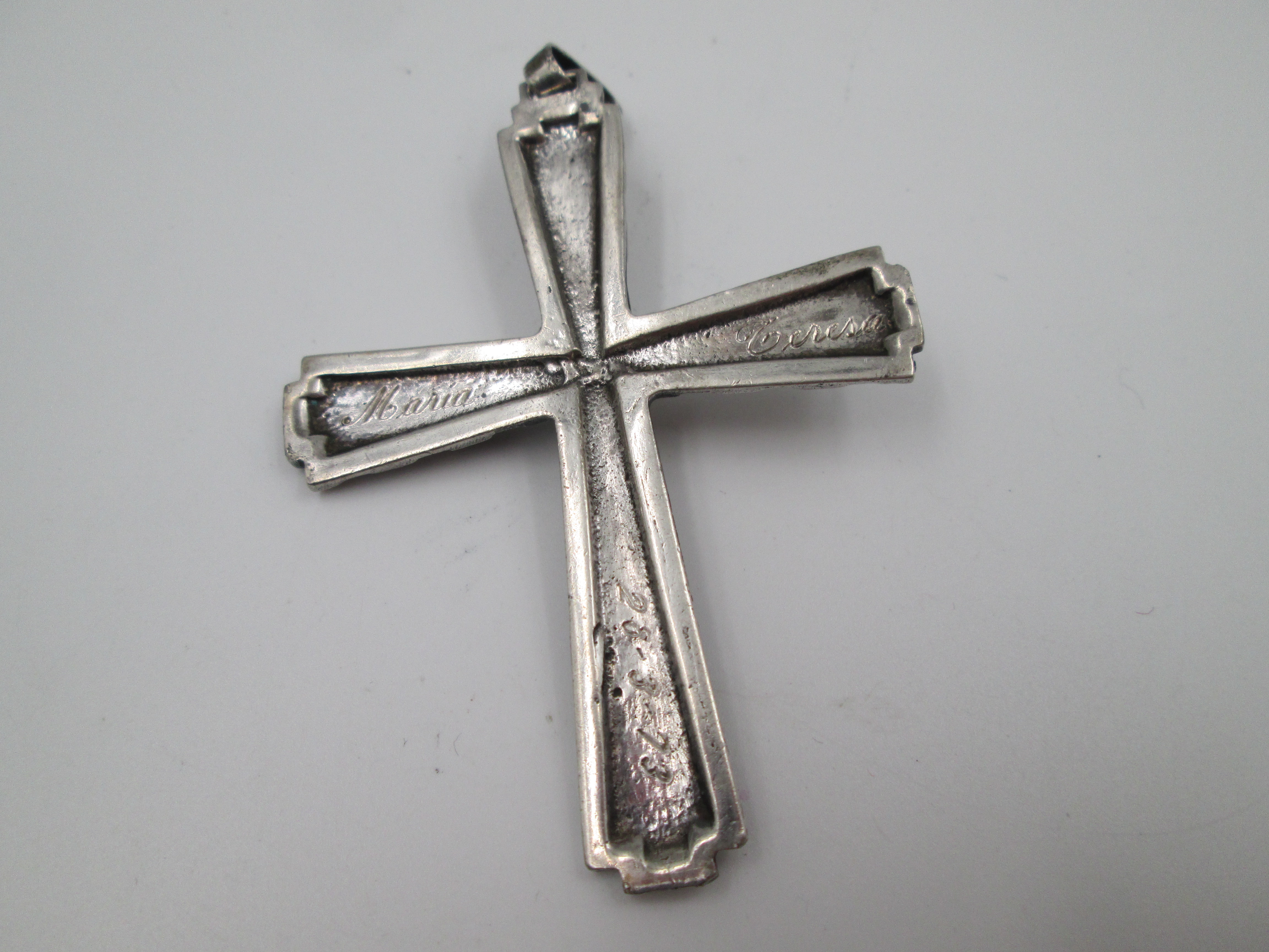 Cruz crucifijo colgante de gran tamaño realizada en España a principios de los años setenta.