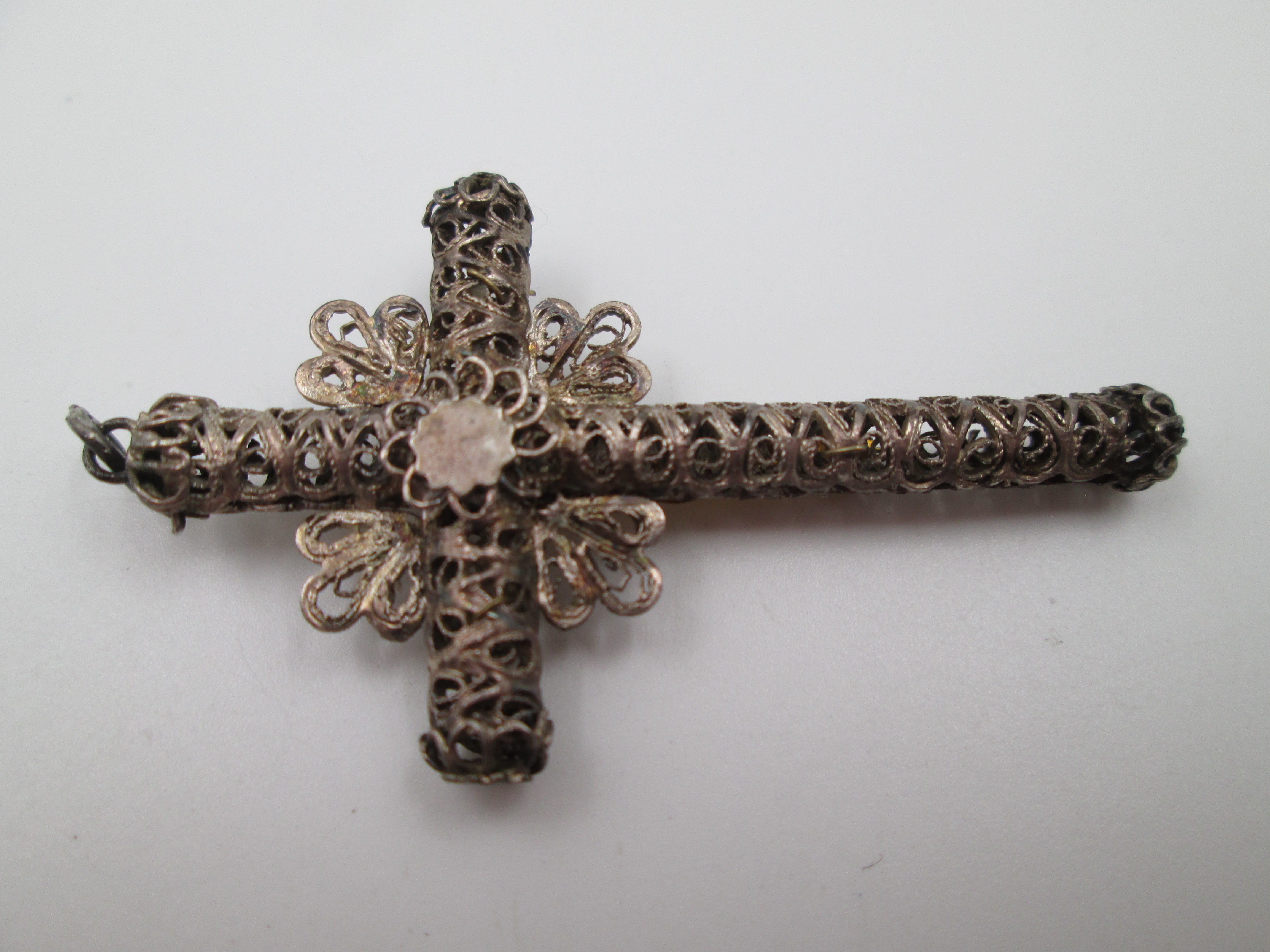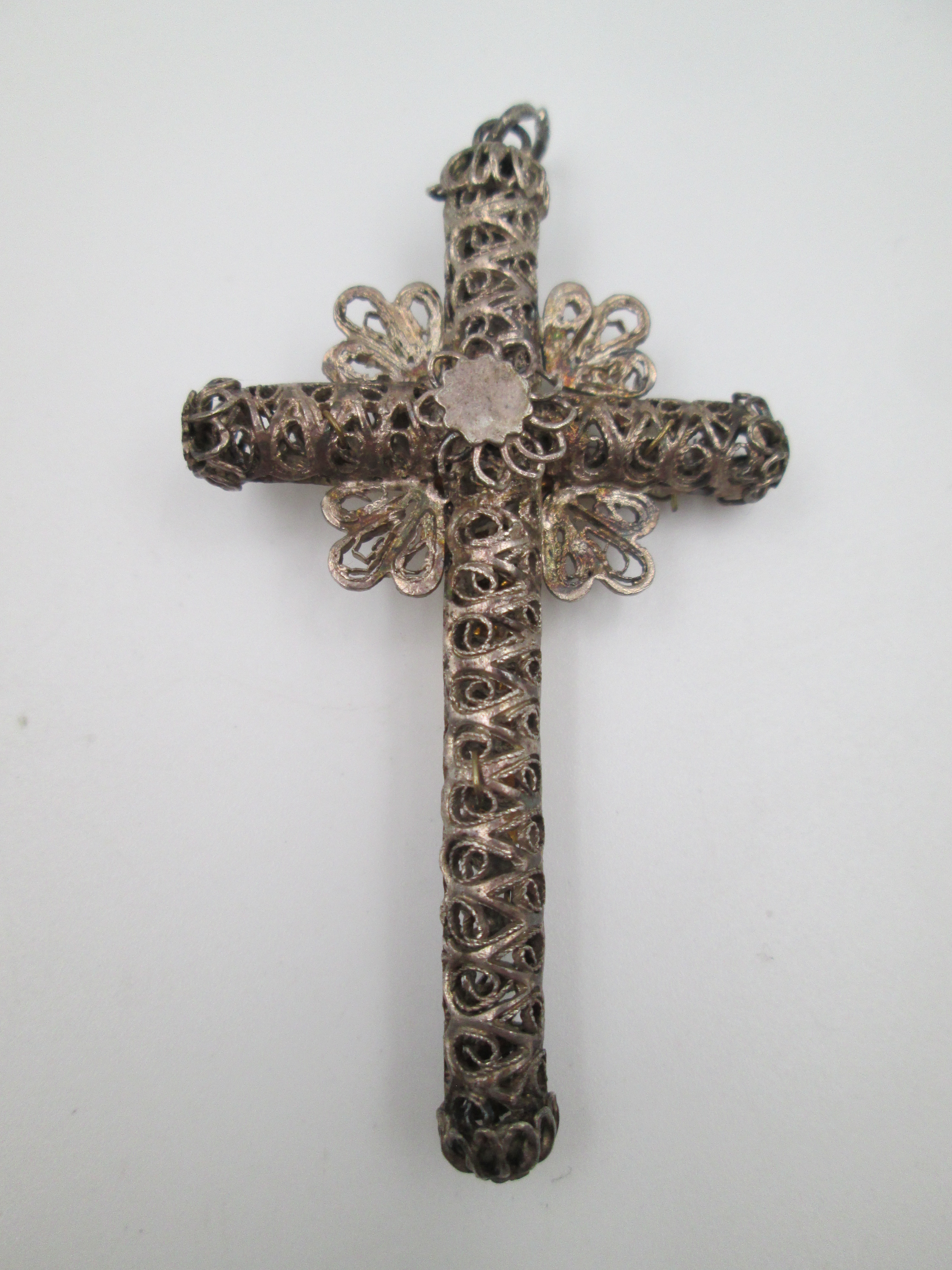Cruz crucifijo colgante de filigrana realizada en España alrededor de los años treinta.