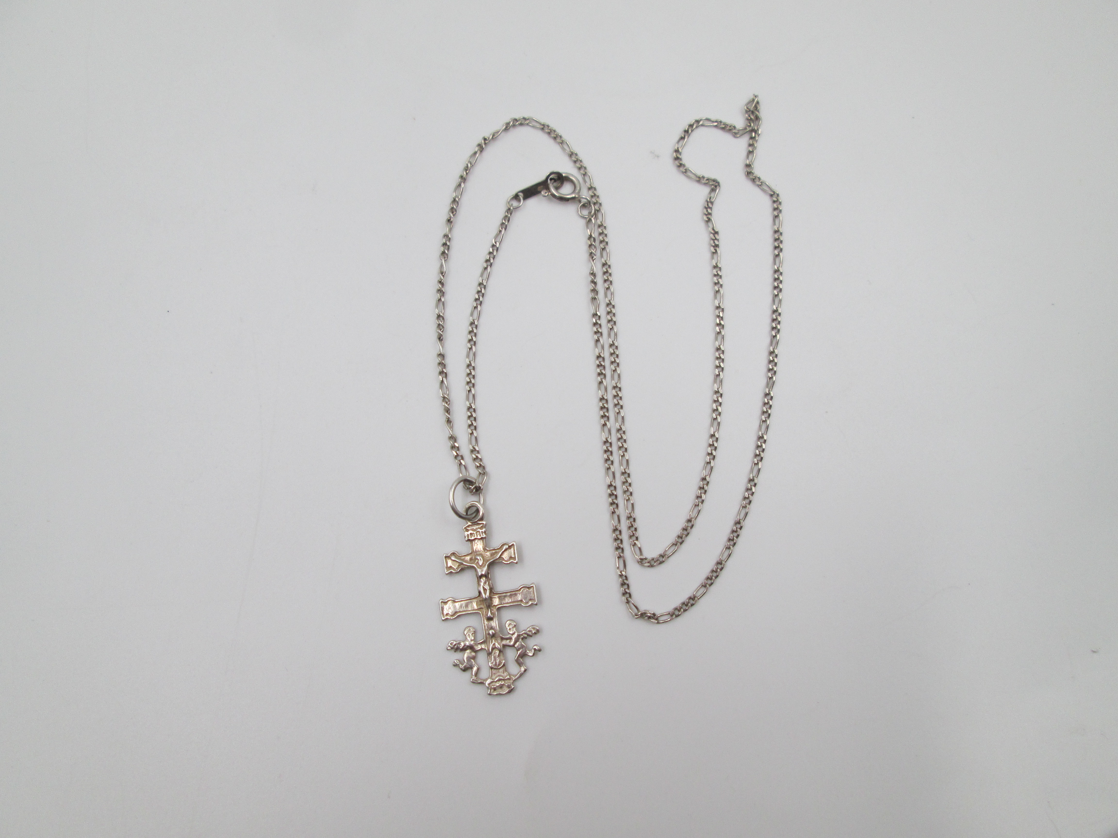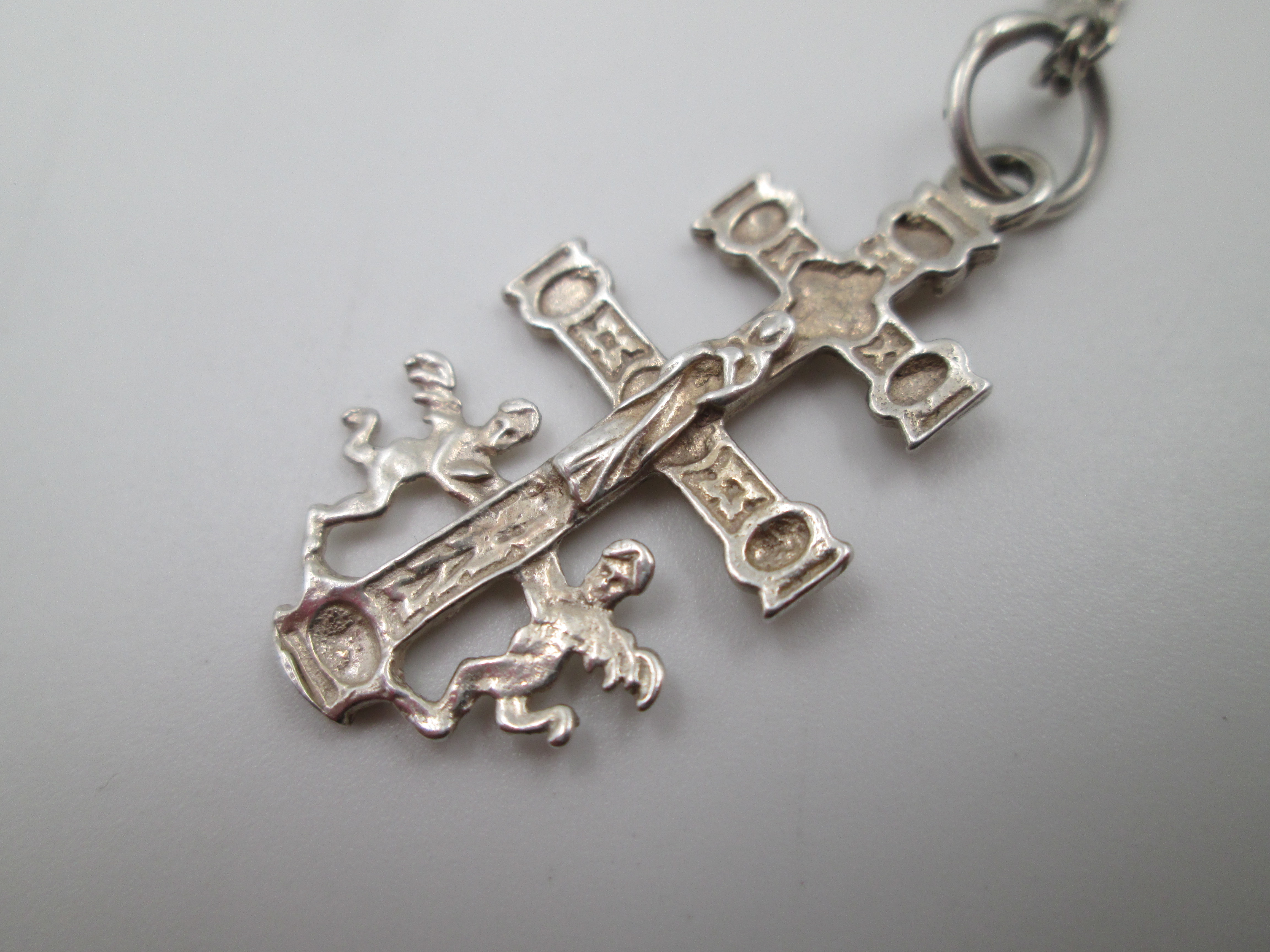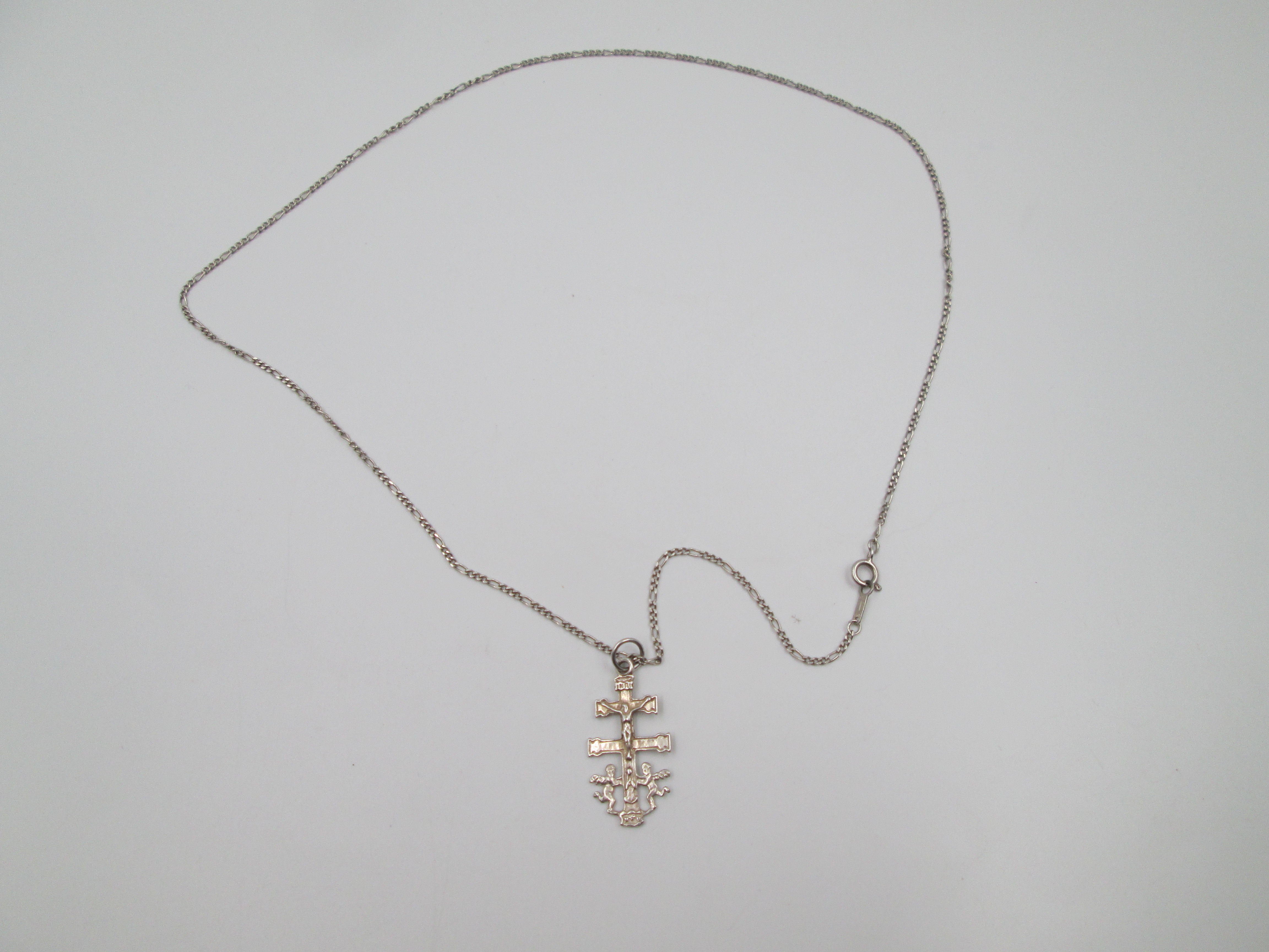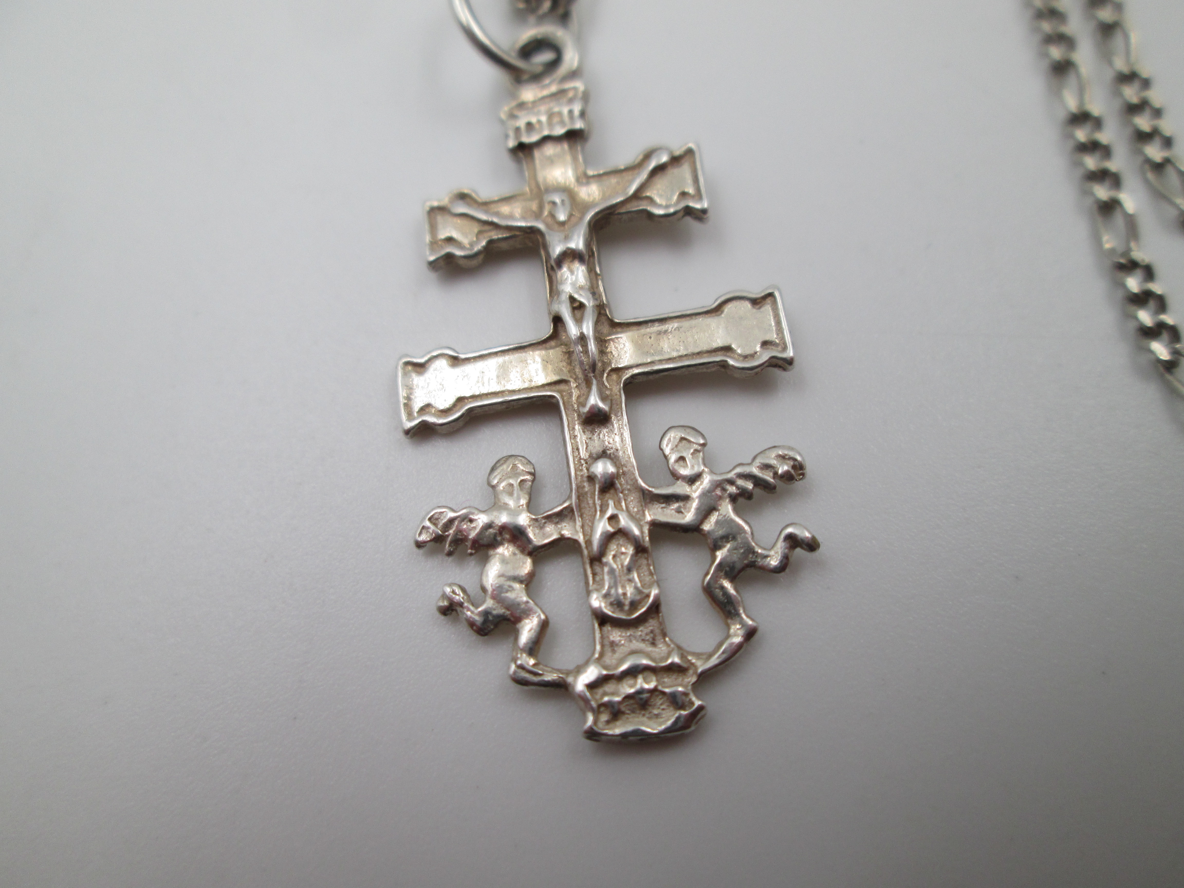 Cruz de Caravaca con cadena de eslabones. Plata de ley 925. Cierre argolla. España. 1990
