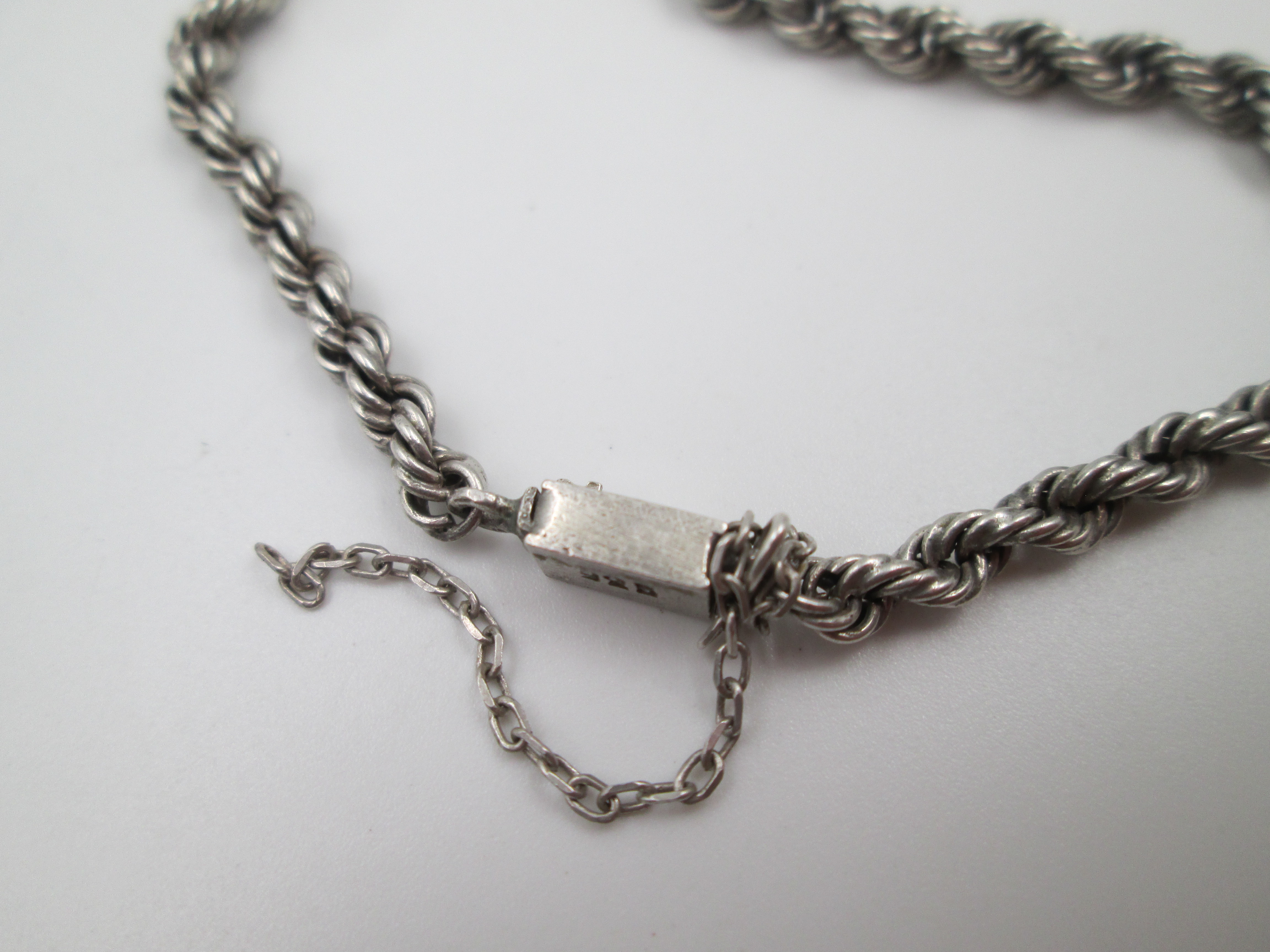 Viene acabada en plata de ley contrastada de 925 milésimas y se acompaña de un cordón trenzado con cierre de pestaña y cadenita de seguridad.