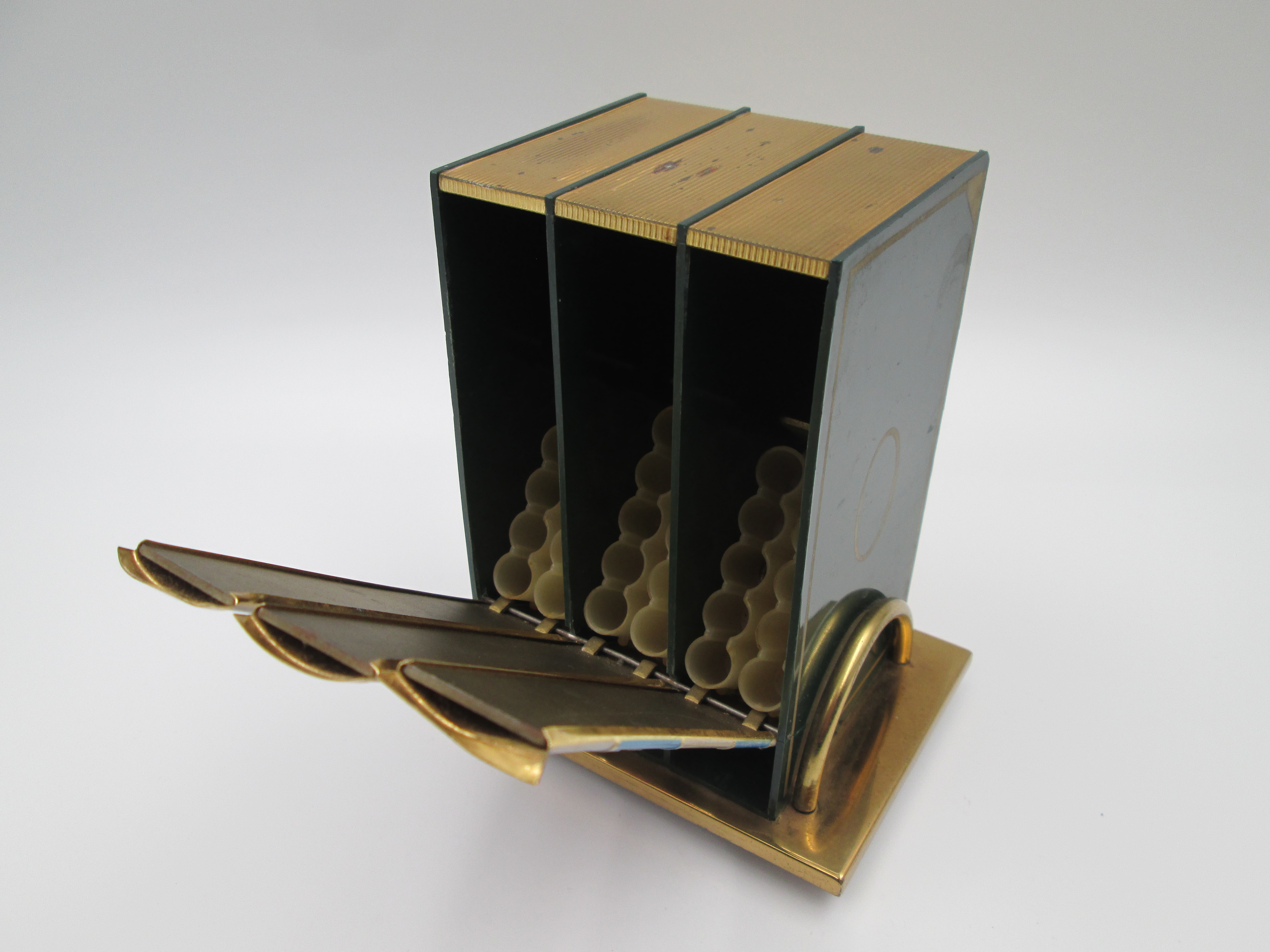 Simpático dispensador de cigarrillos de sobremesa y escritorio realizado en Italia en torno a los años cincuenta.