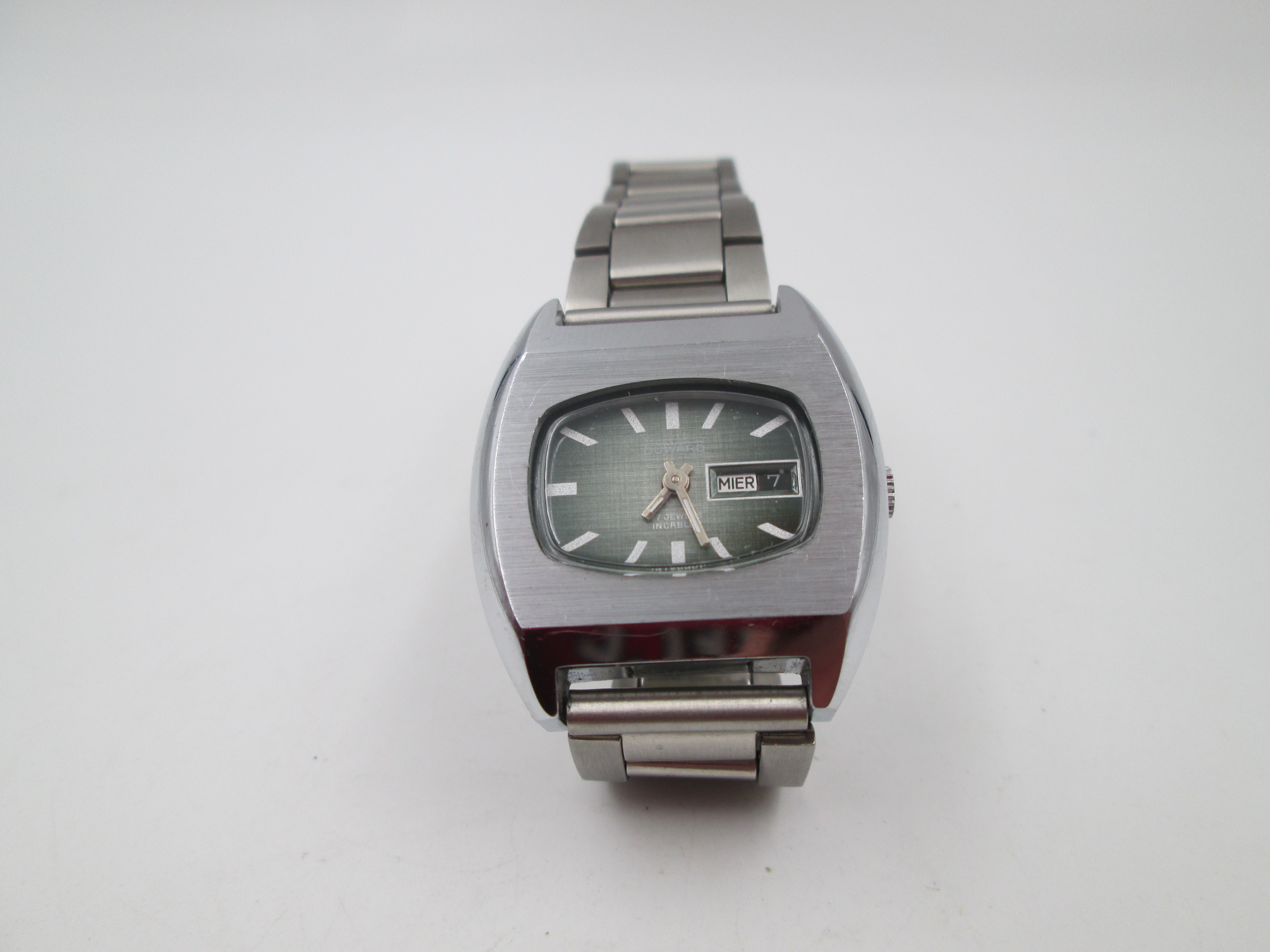 Duward Internat reloj unisex. Acero y metal niquelado. Dial verde. Brazalete. Cuerda
