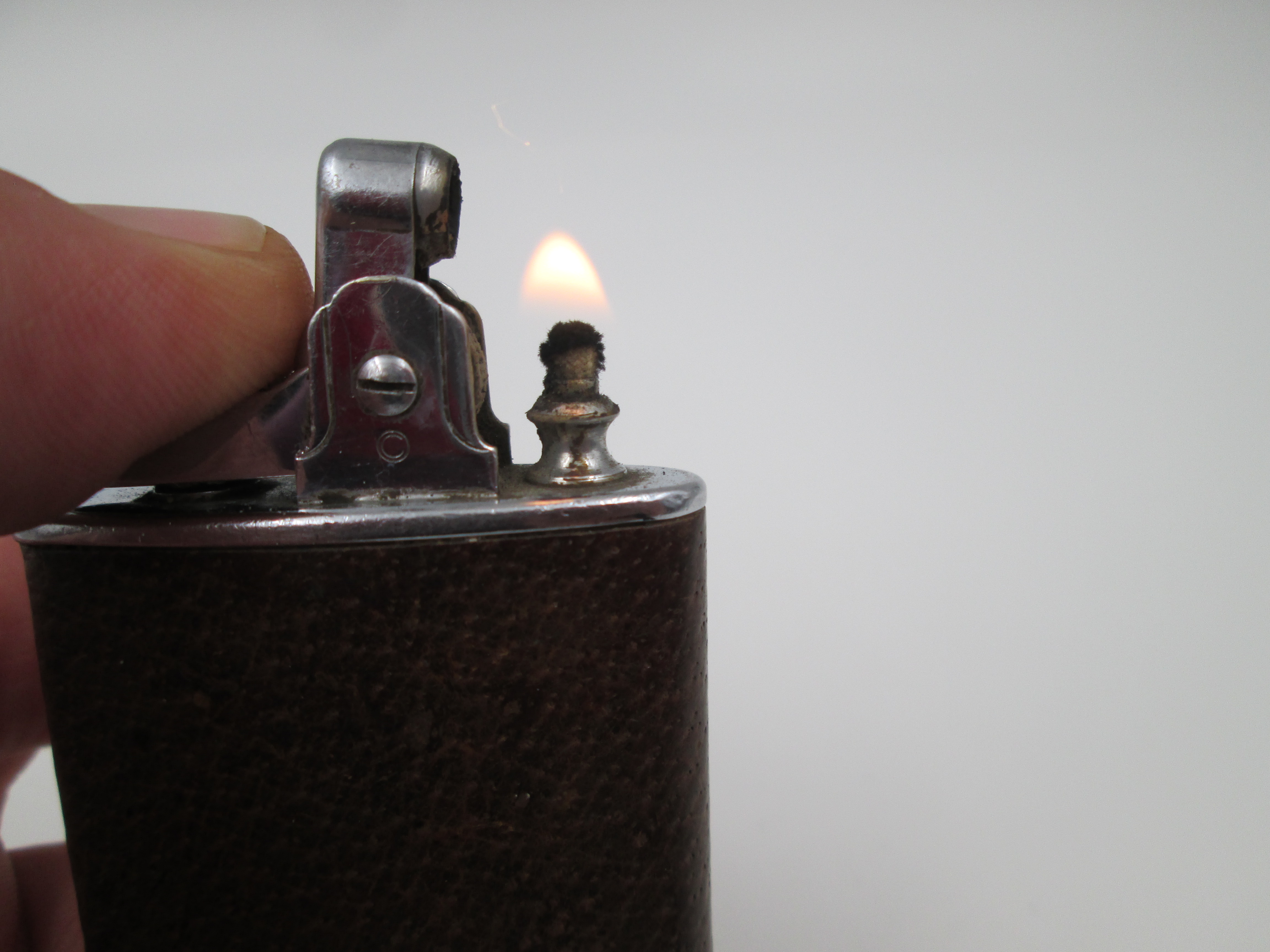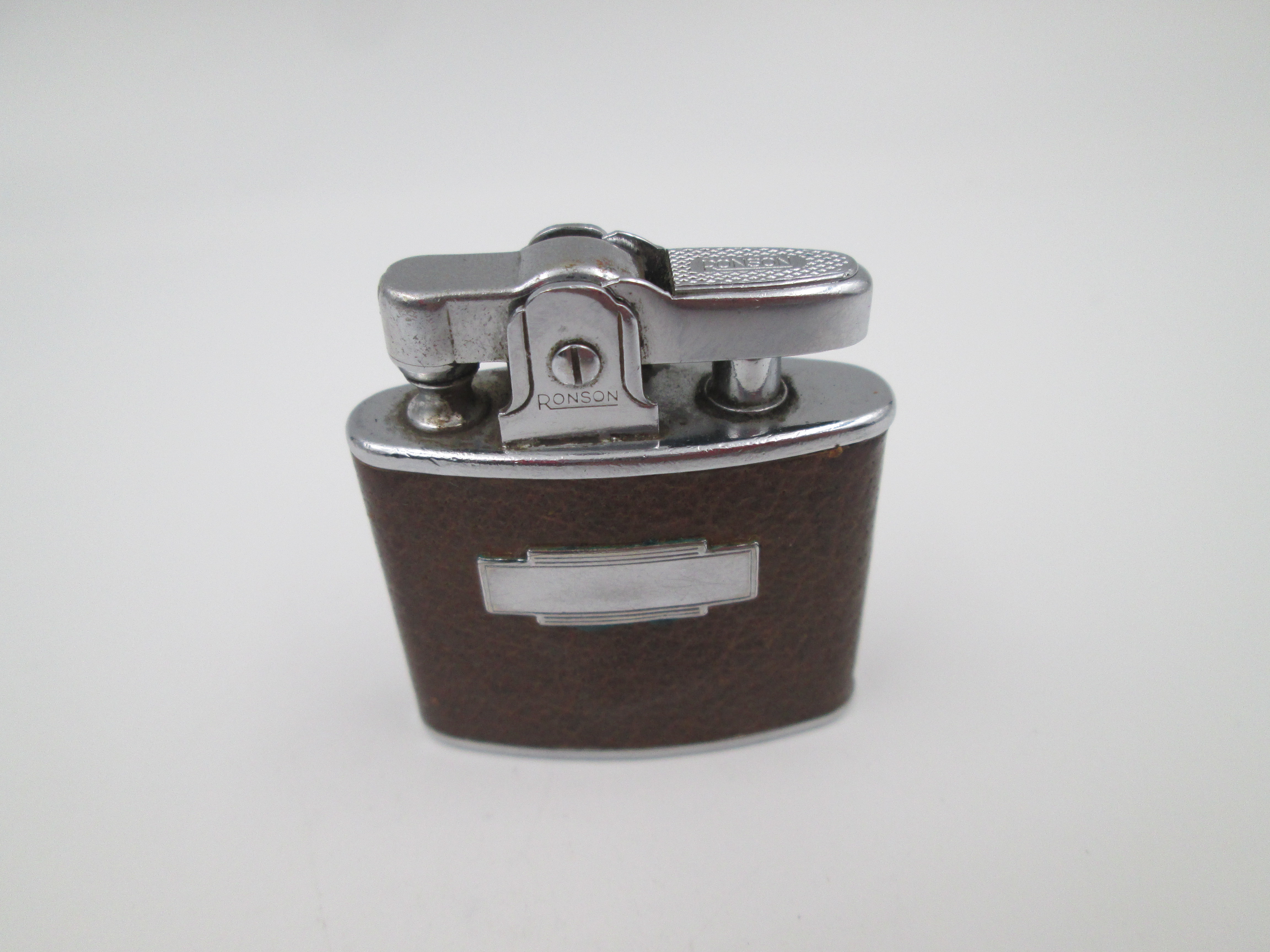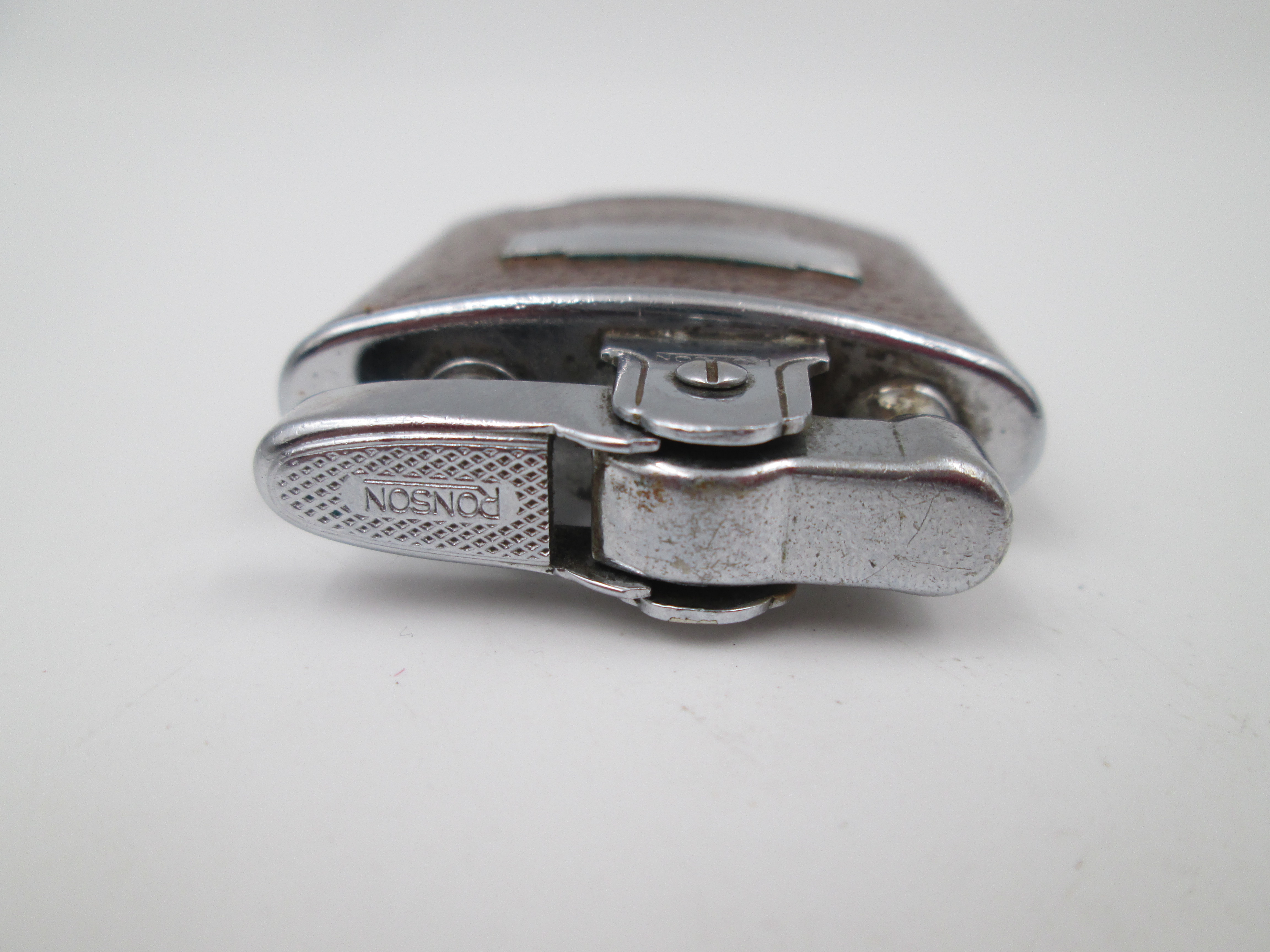 Encendedor de bolsillo fabricado en Inglaterra en torno a los años cuarenta por la conocida marca Ronson.