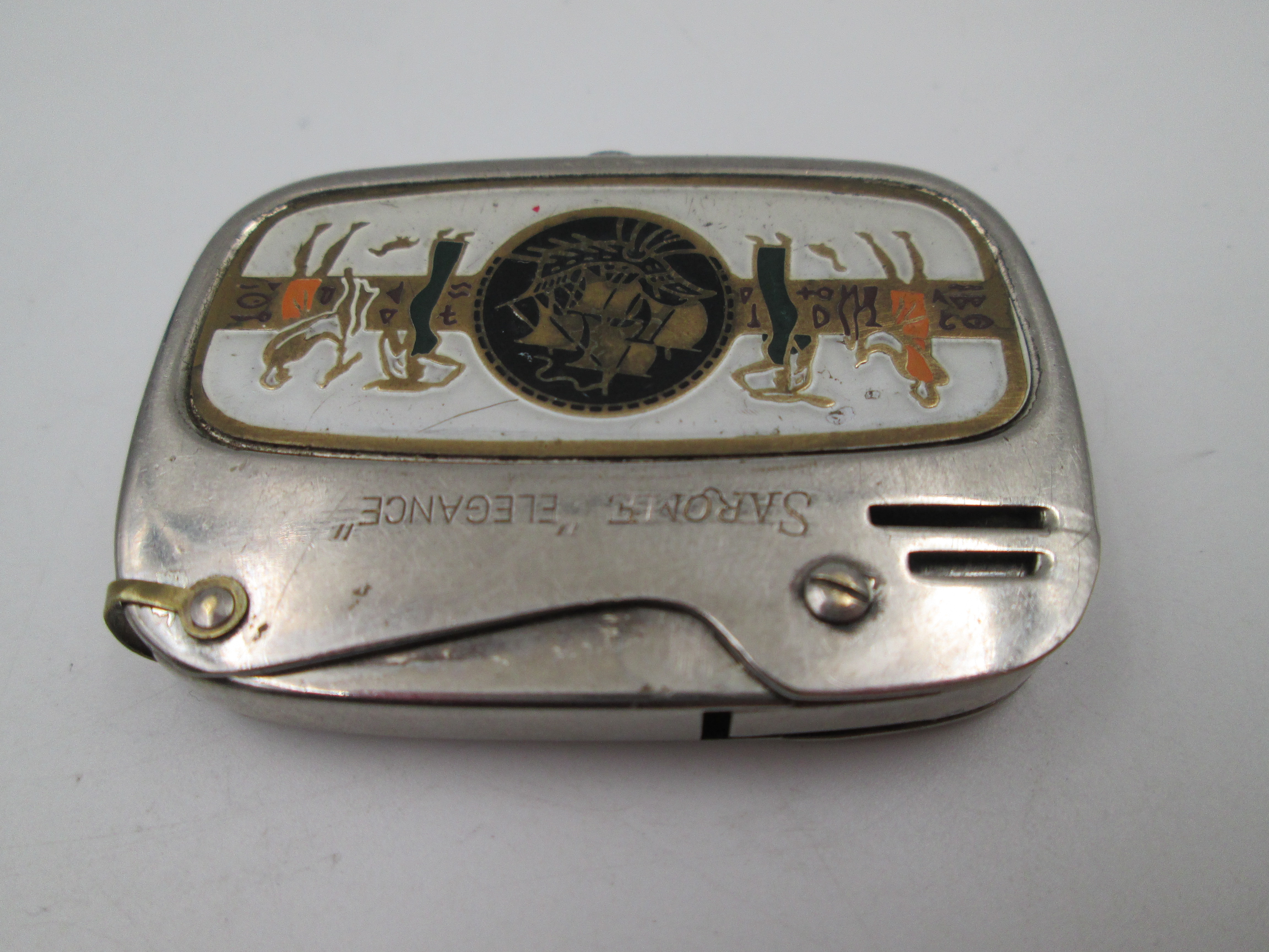 Encendedor de bolsillo a gasolina Sarome Elegance. Latón plateado. 1950. Japón