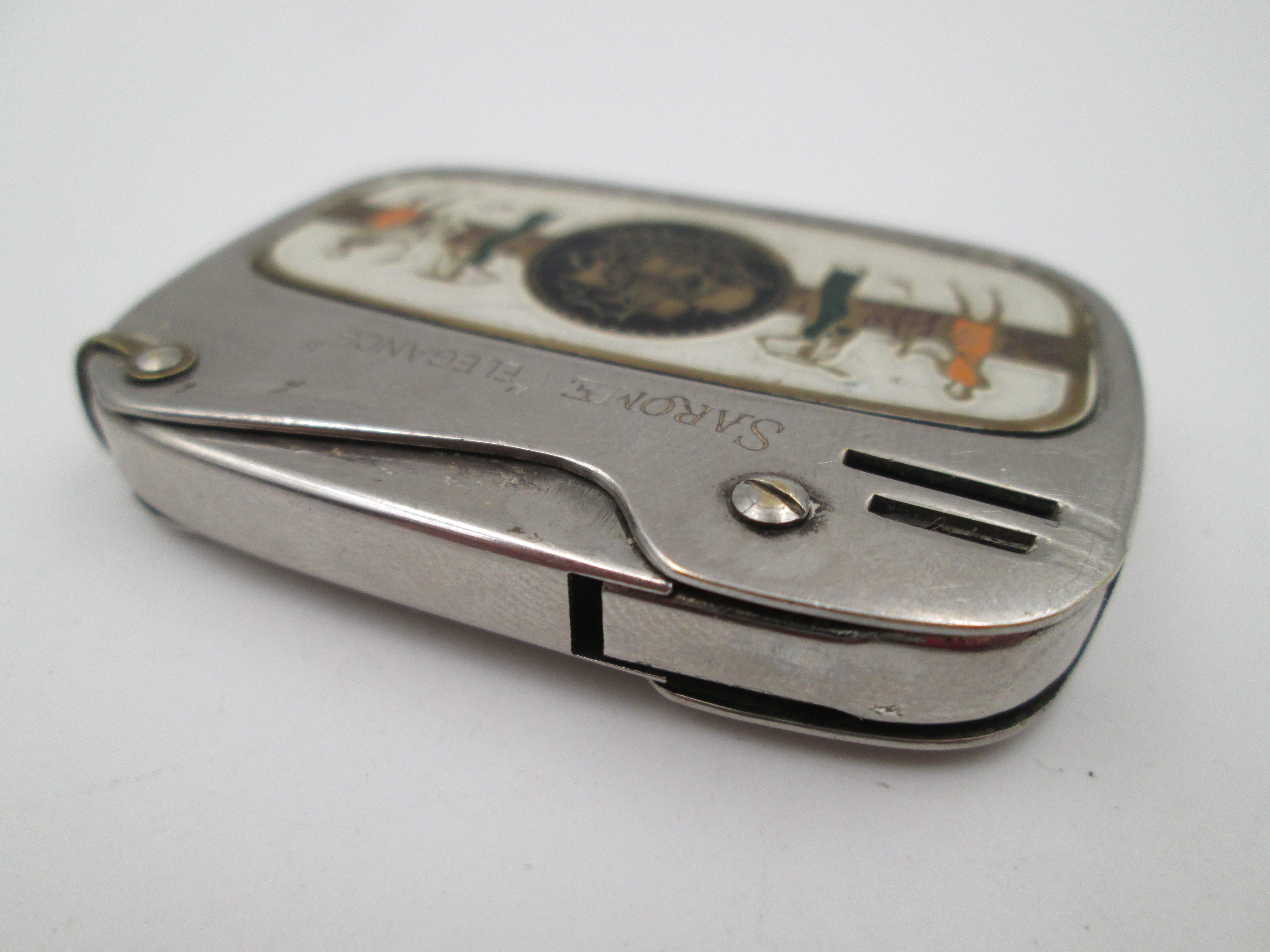 Interesante encendedor de bolsillo fabricado en Japón alrededor de los años cincuenta.