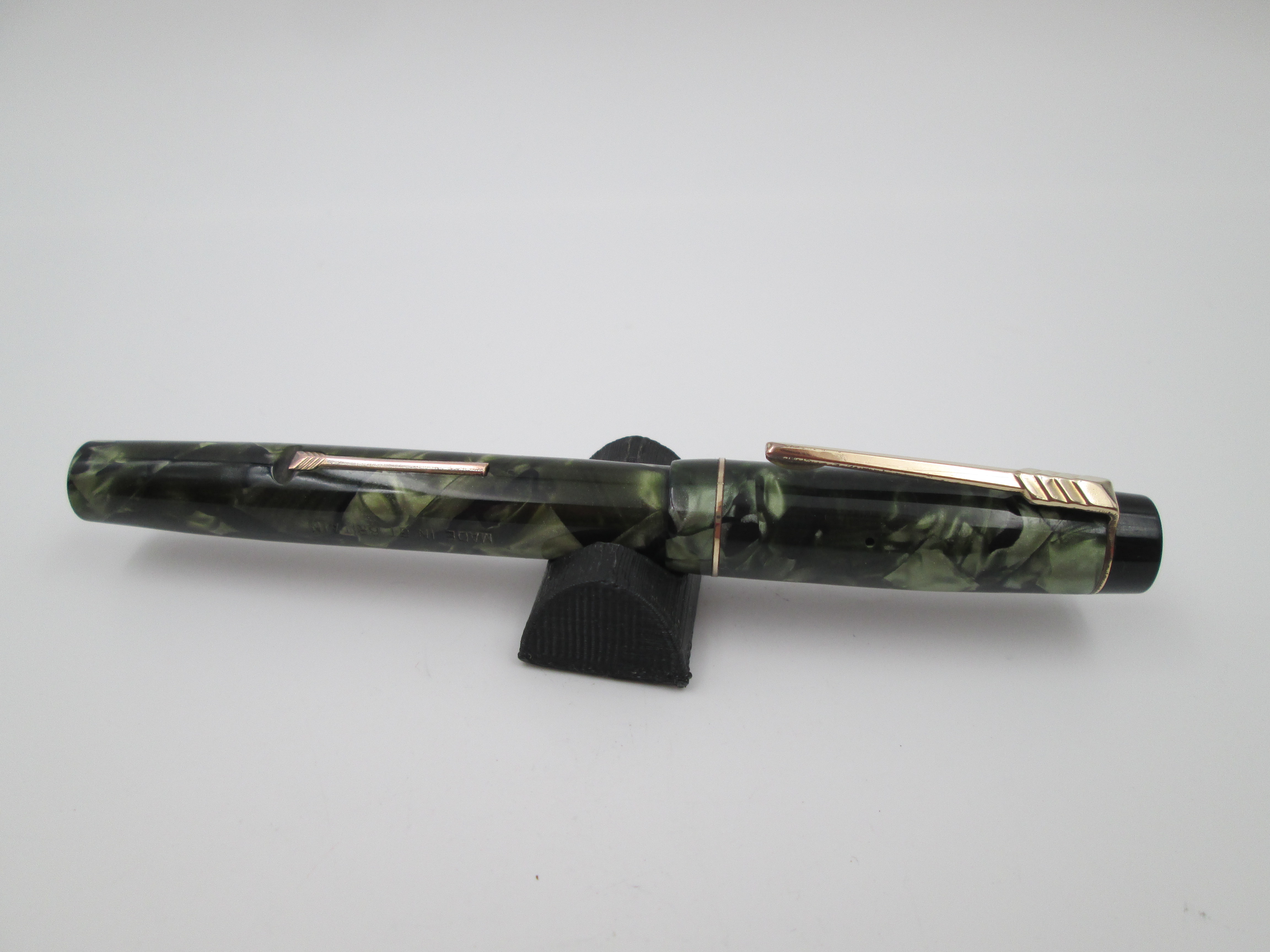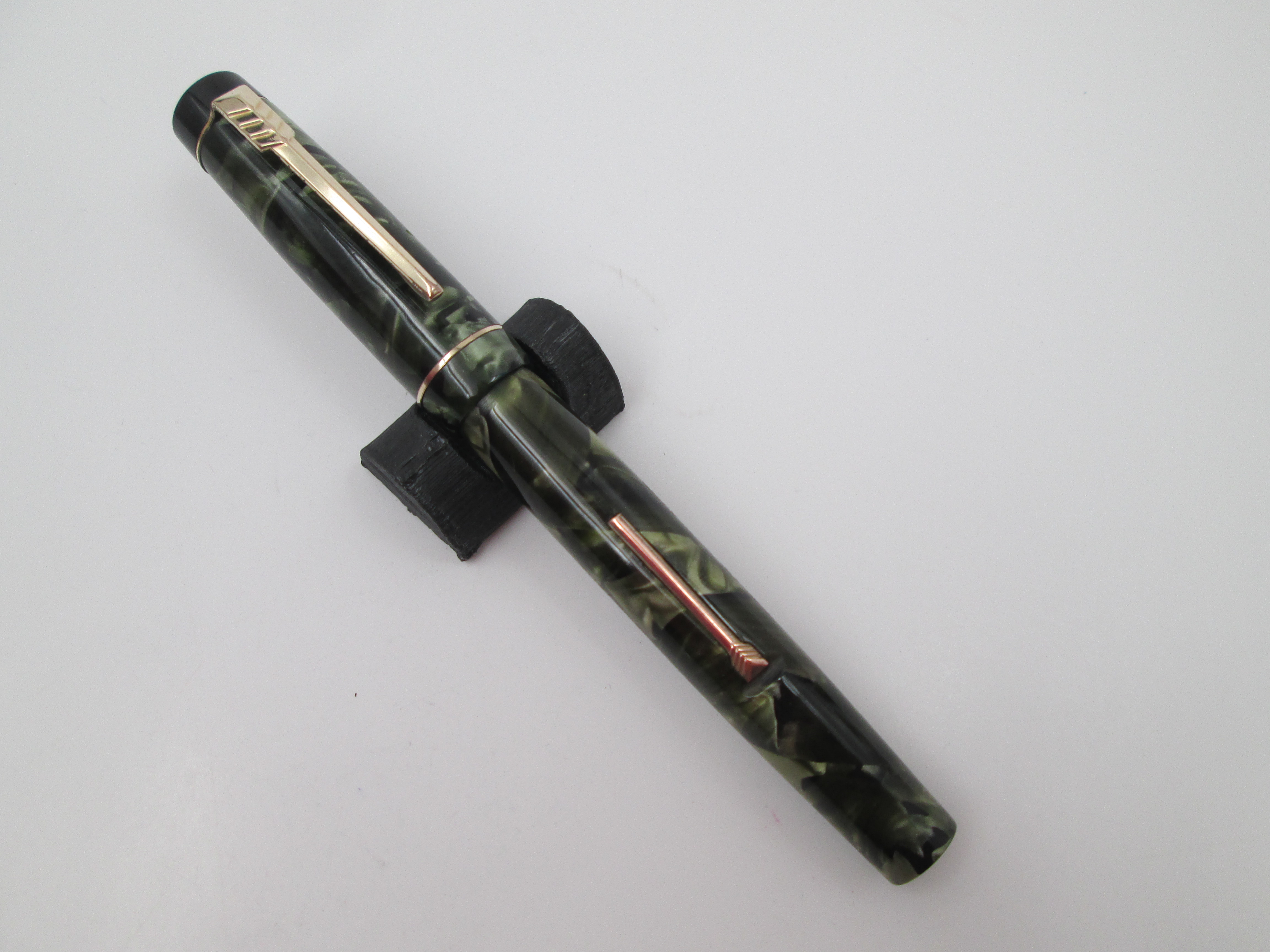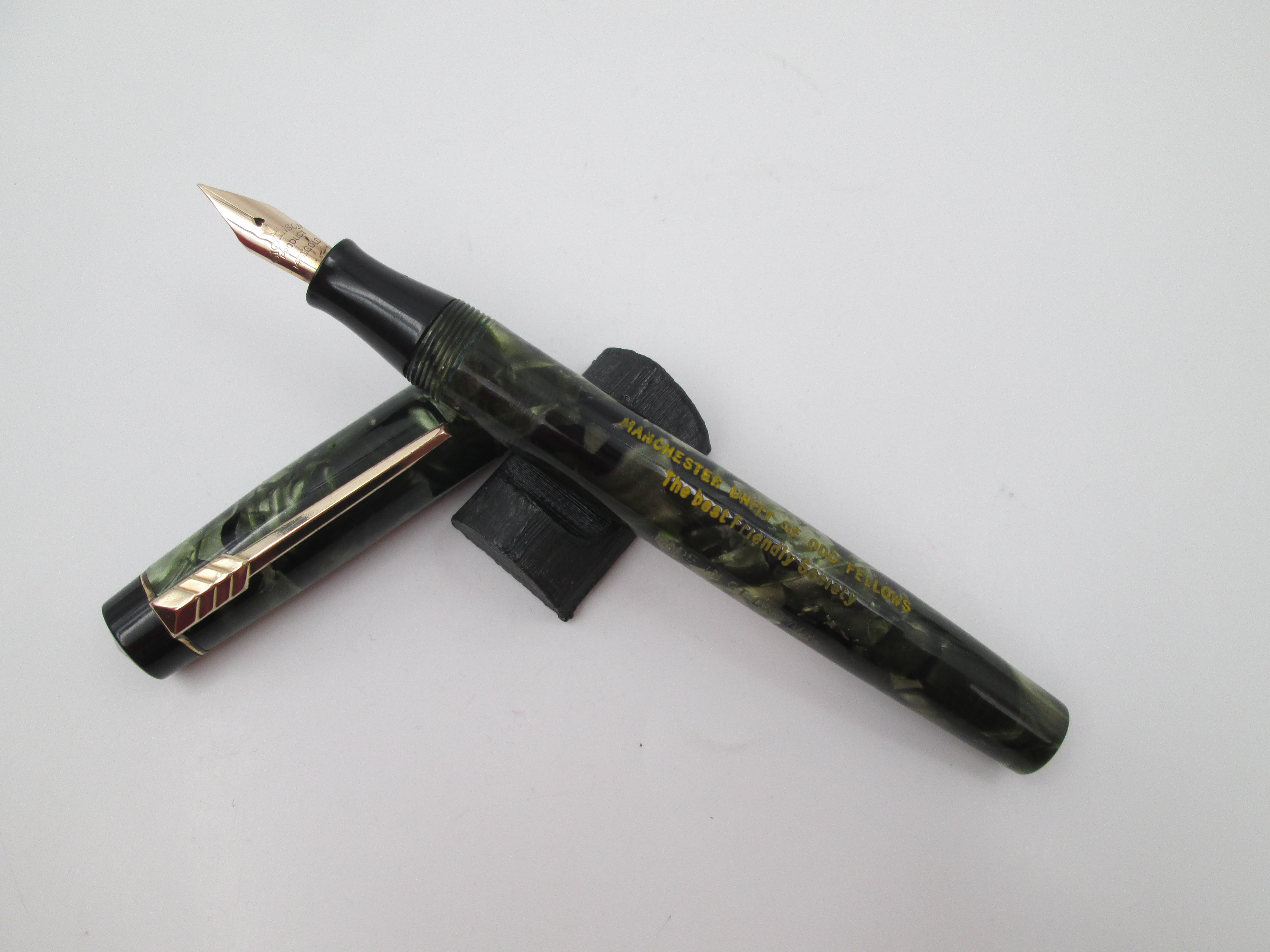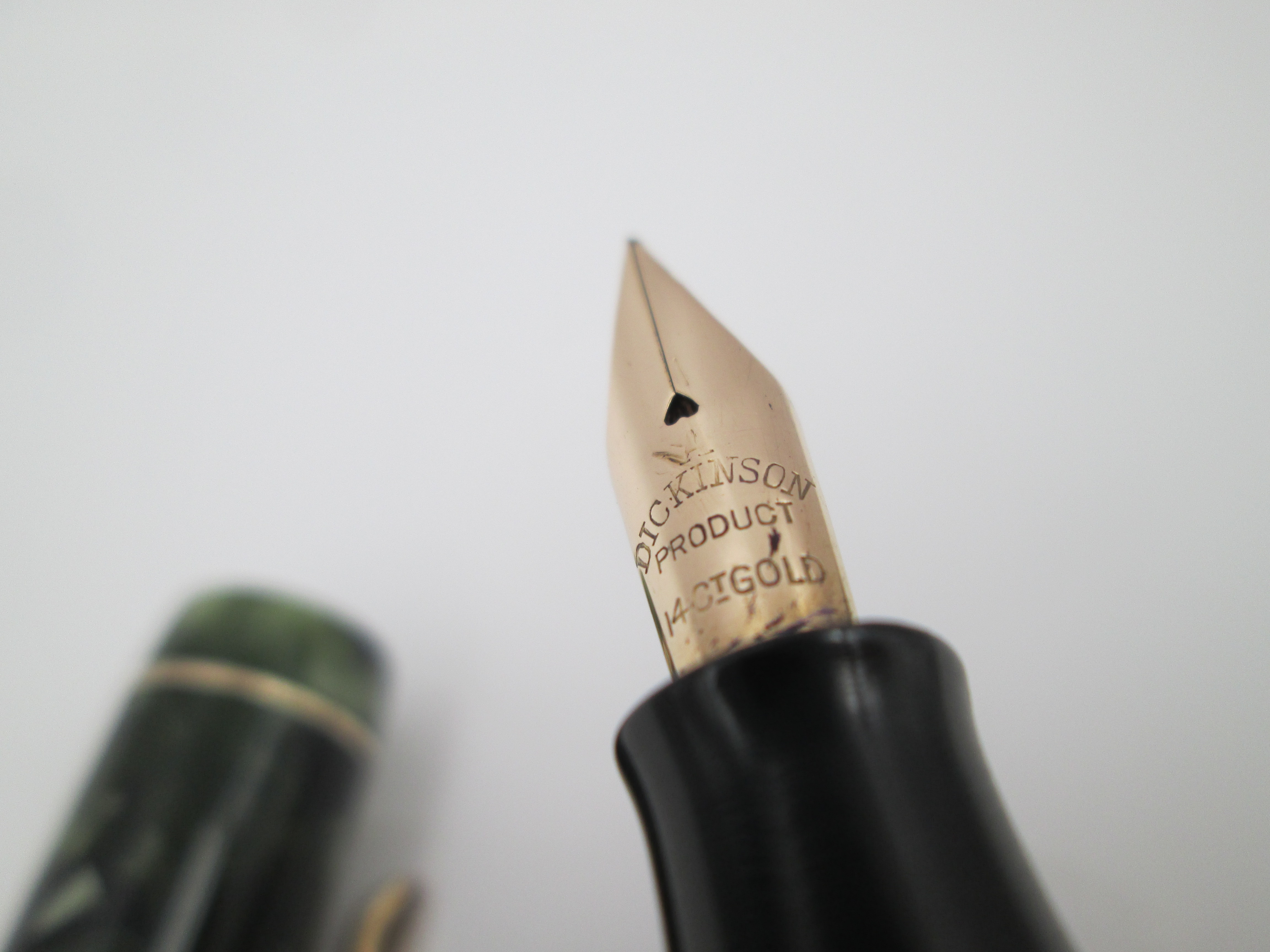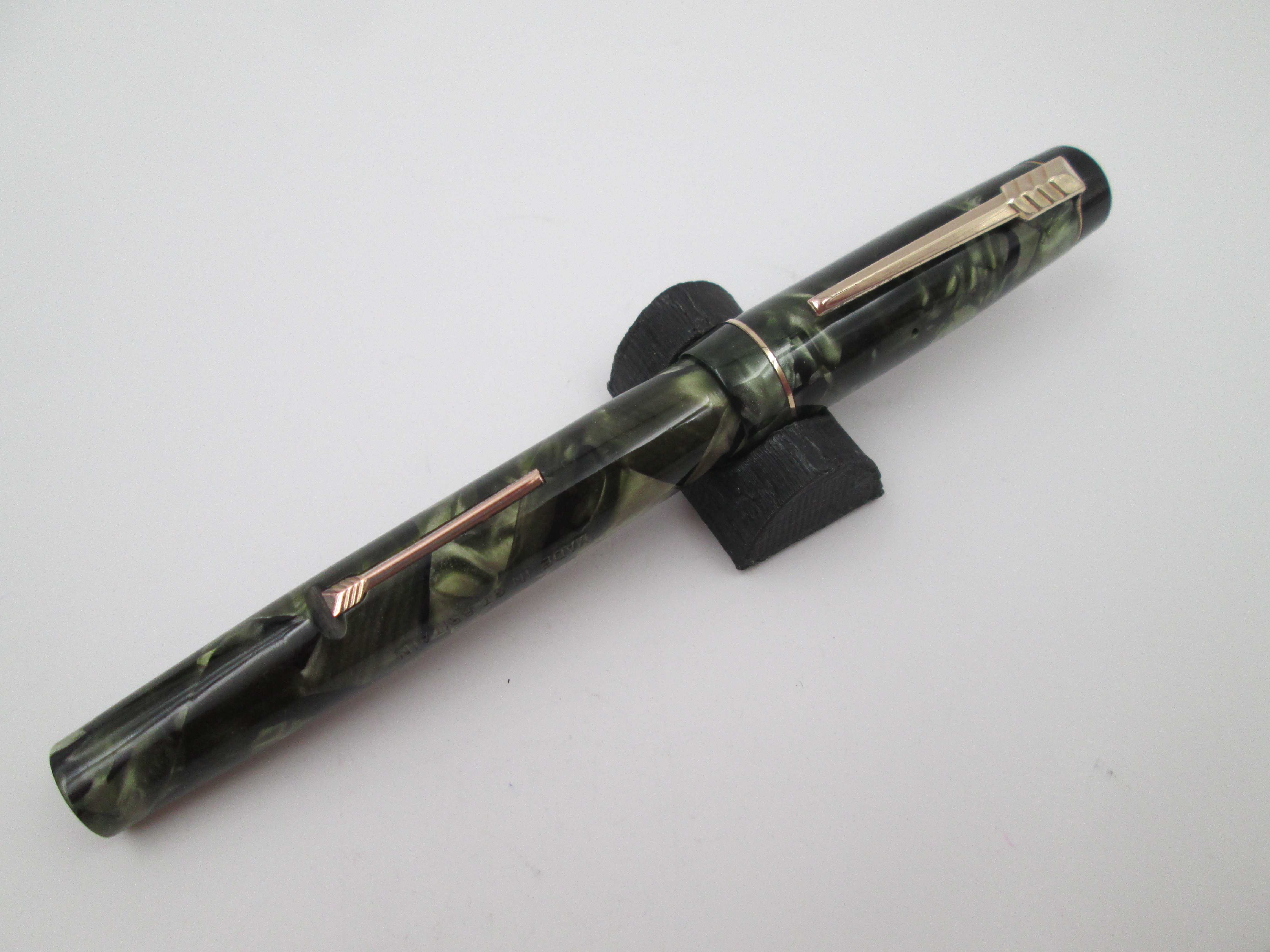 Estilográfica Croxley Dickinson. Celuloide mármol y metal dorado. Palanca. Inglaterra