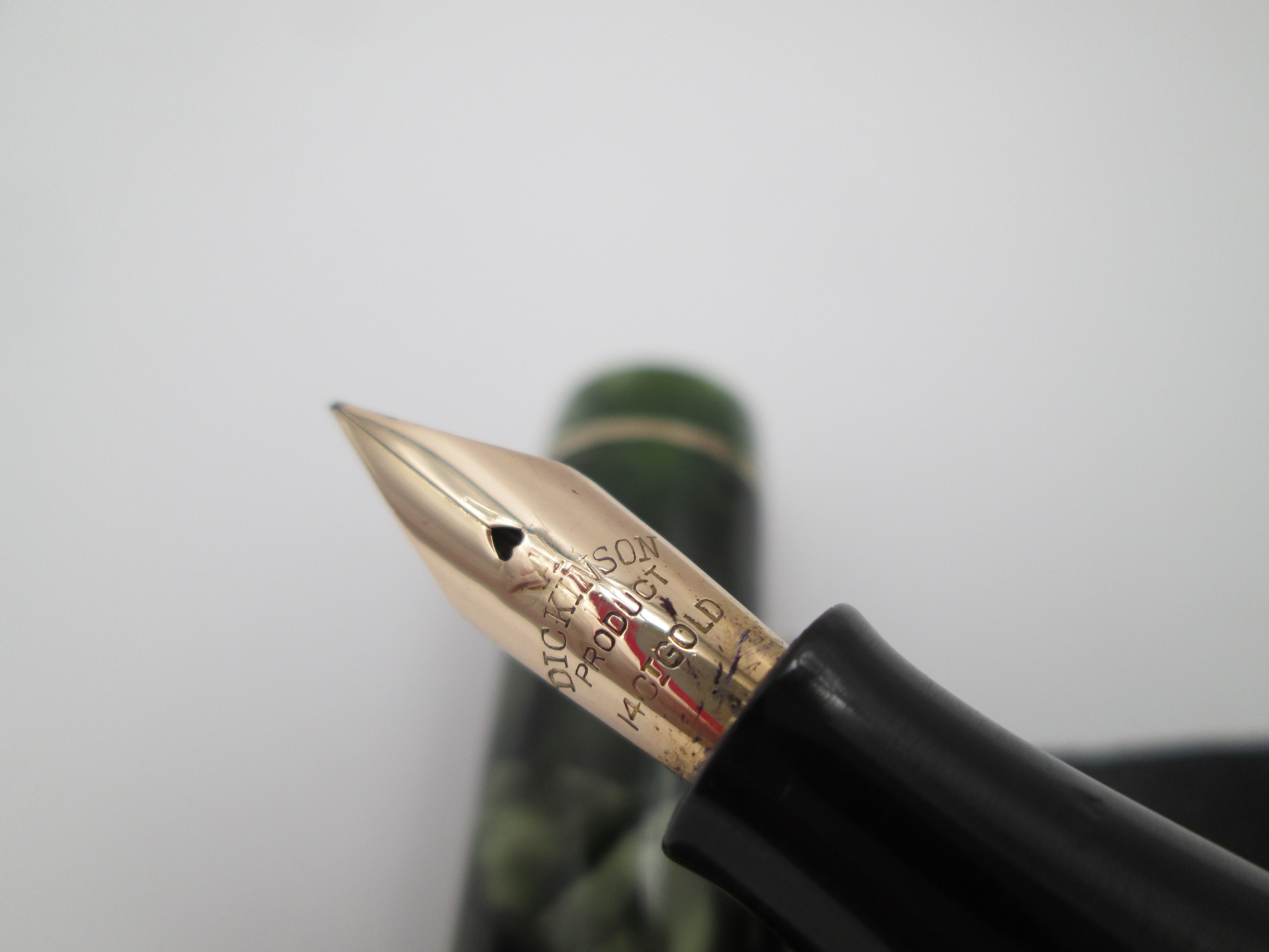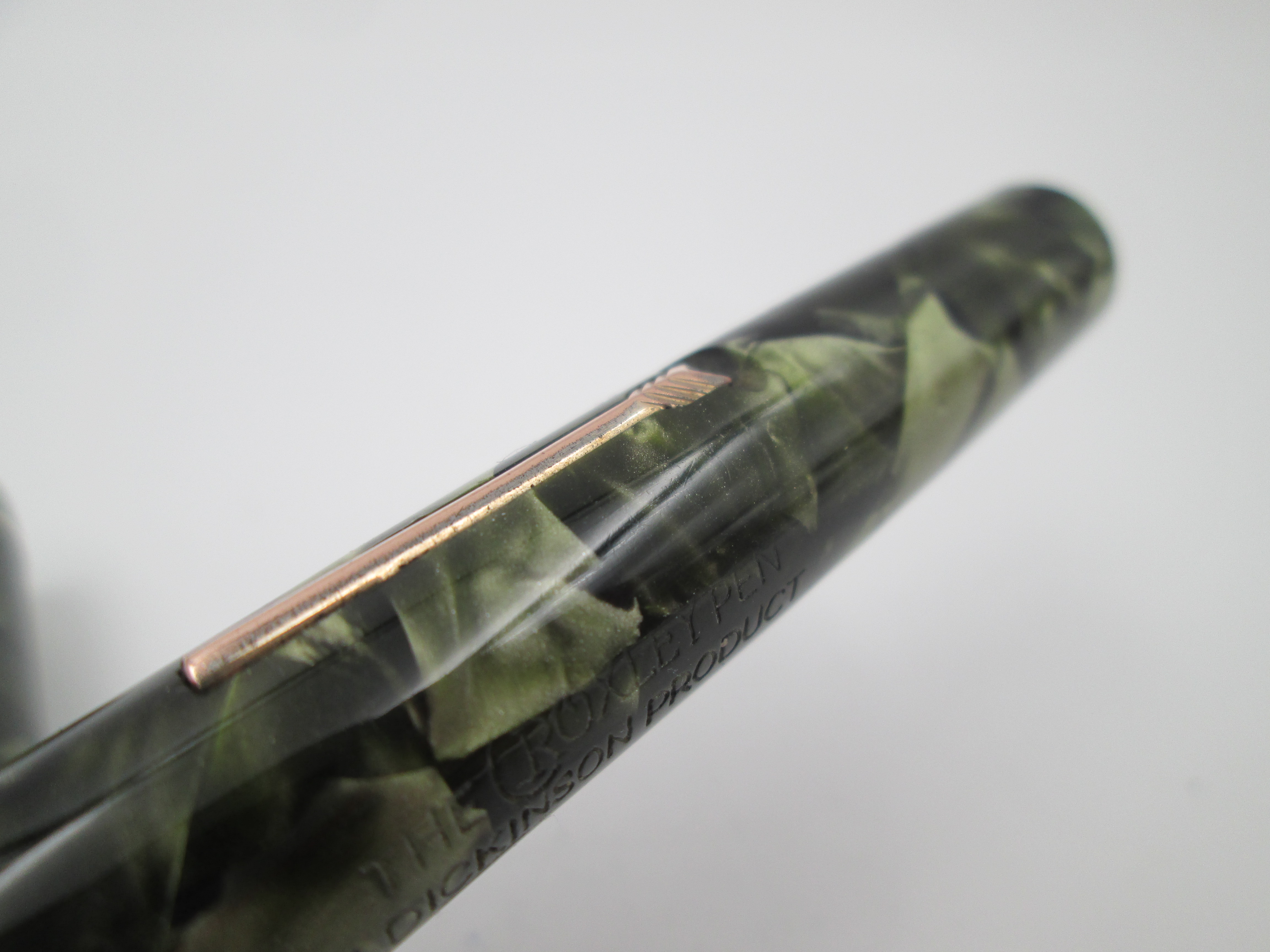 Rara estilográfica fabricada en el Reino Unido en los años cincuenta por la marca Croxley de la compañía inglesa Dickinson, una enseña poco conocida pero autora de plumas de alta calidad equivalentes a las Conway Stewart.