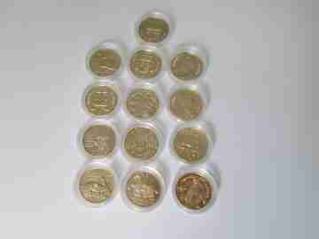 Estuche de trece monedas fabricadas en España alrededor de los años noventa.
