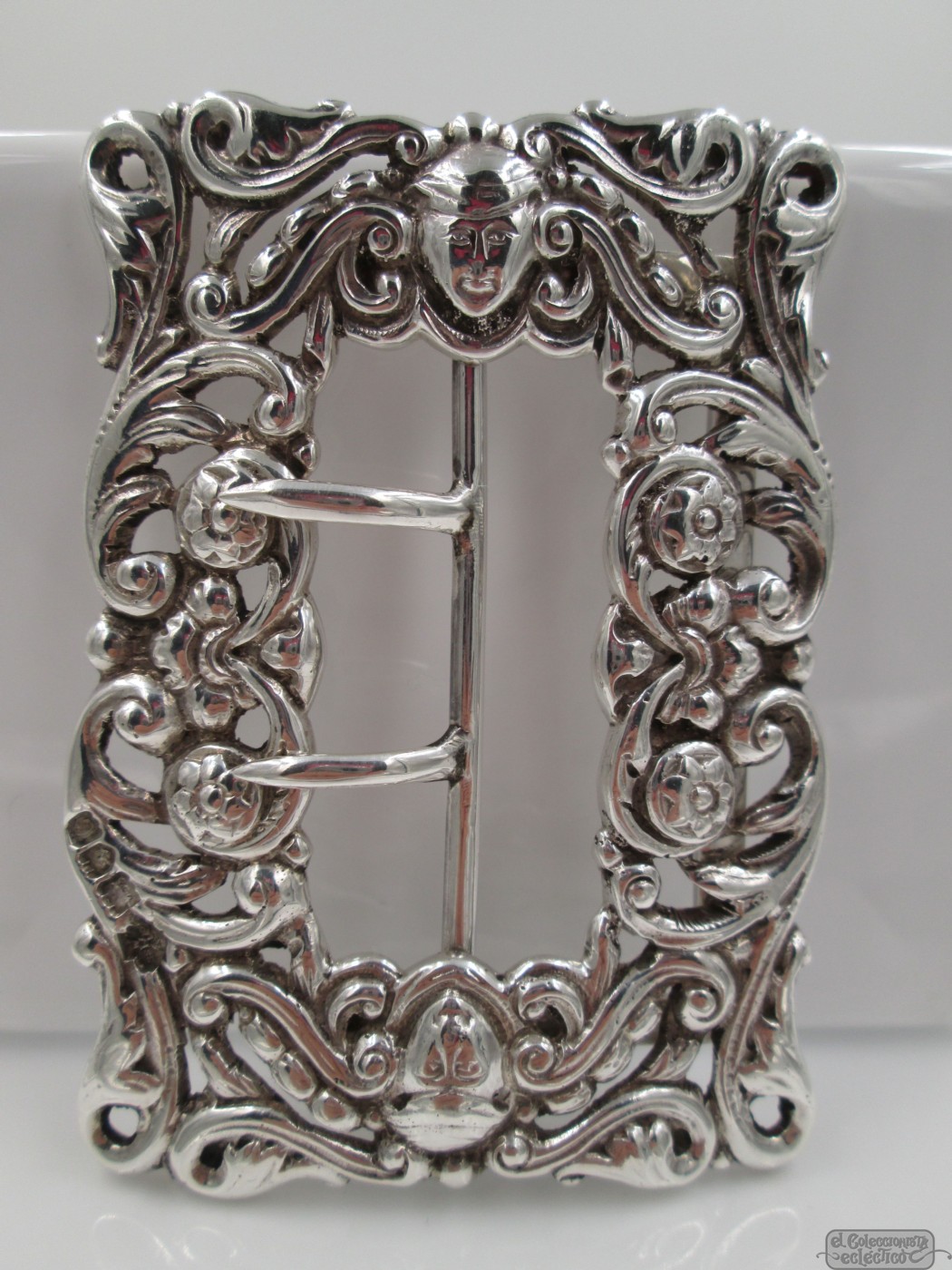 Hebilla ornamentada. Plata de ley. Siglo XIX. 65 gramos